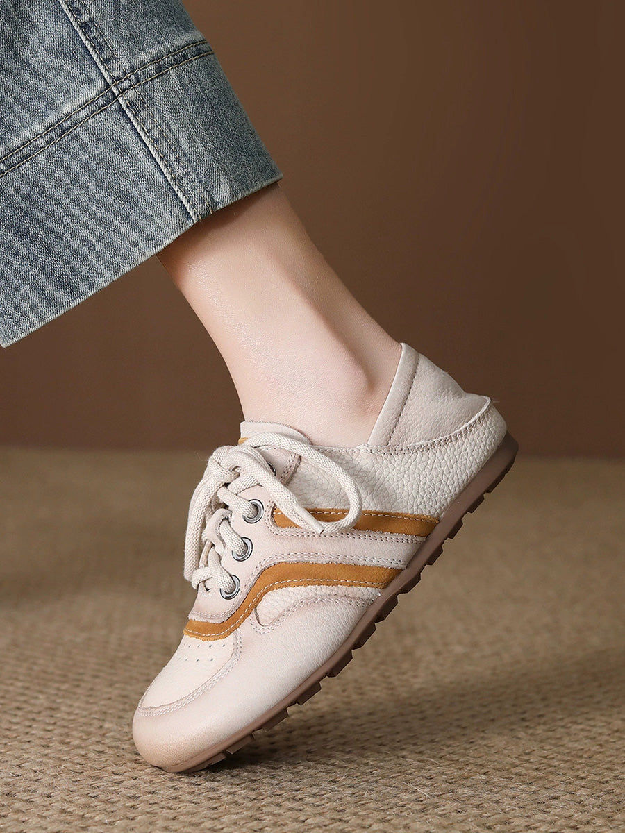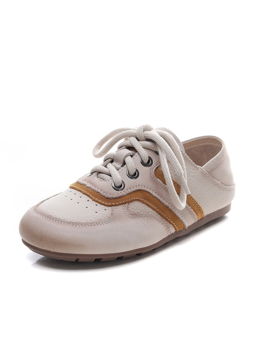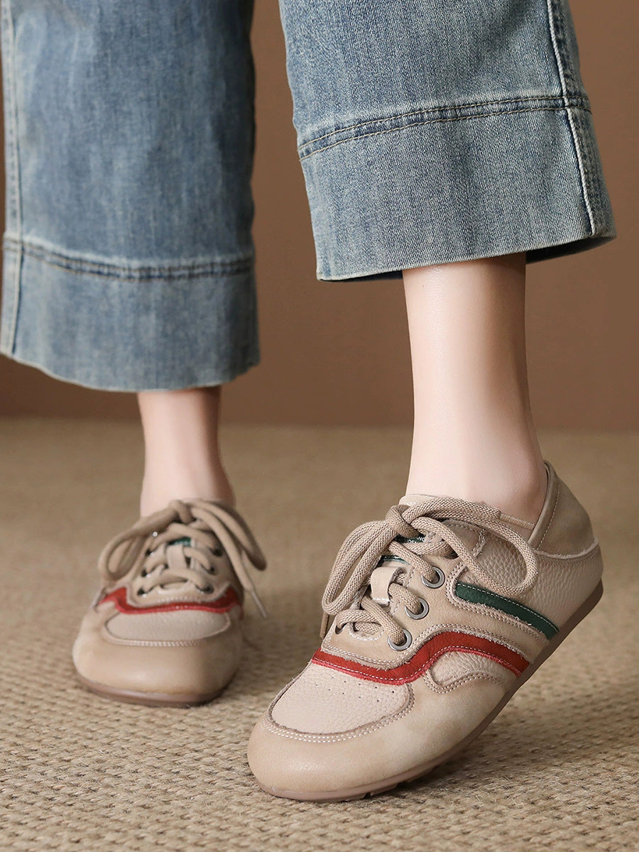 Women Summer Colorblock Genuine Leather Flat Shoes