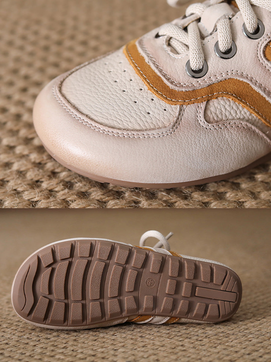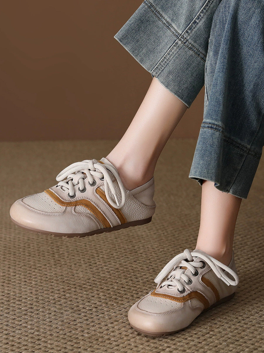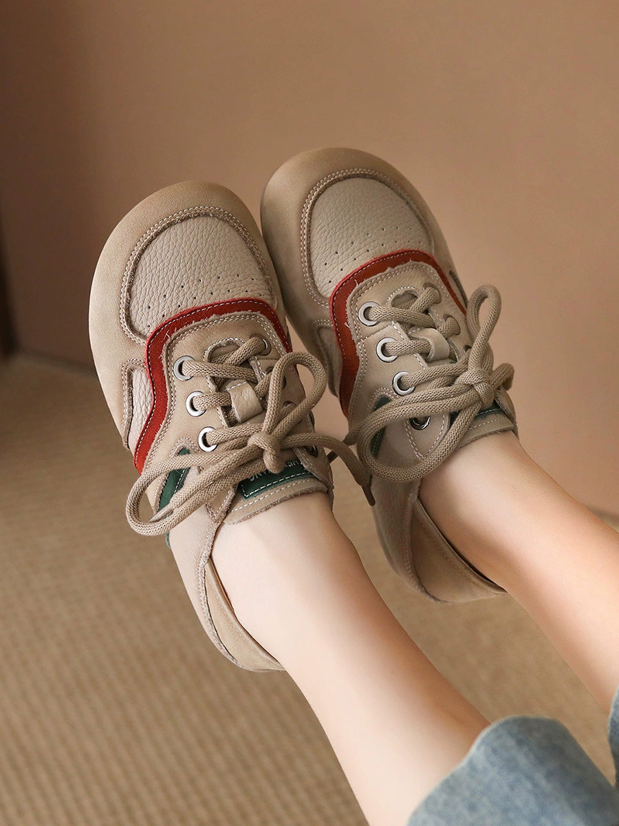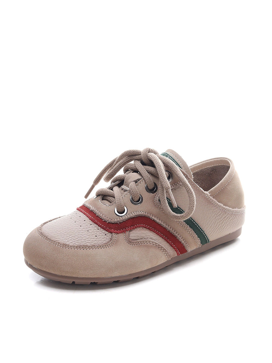 Women Summer Colorblock Genuine Leather Flat Shoes