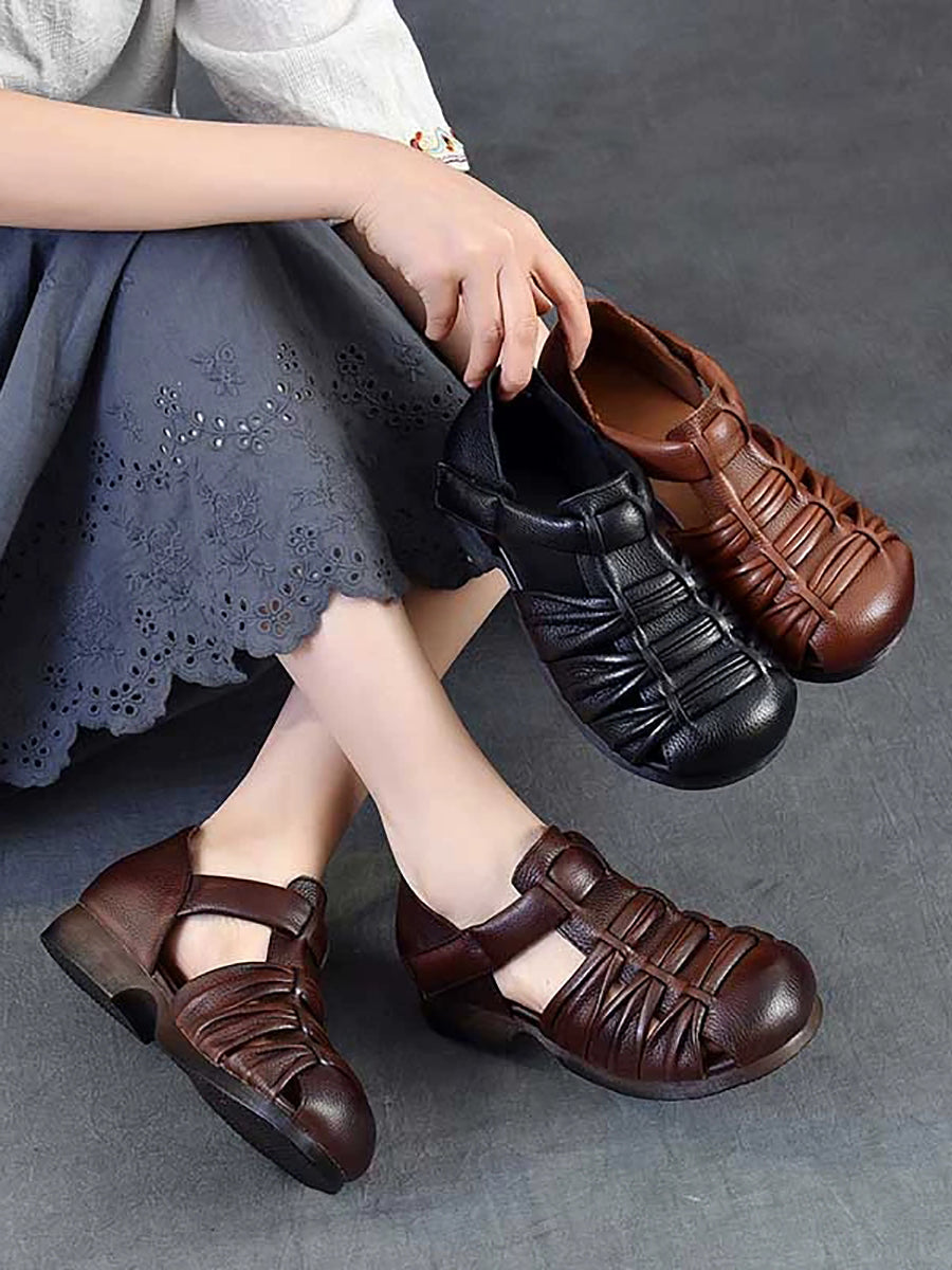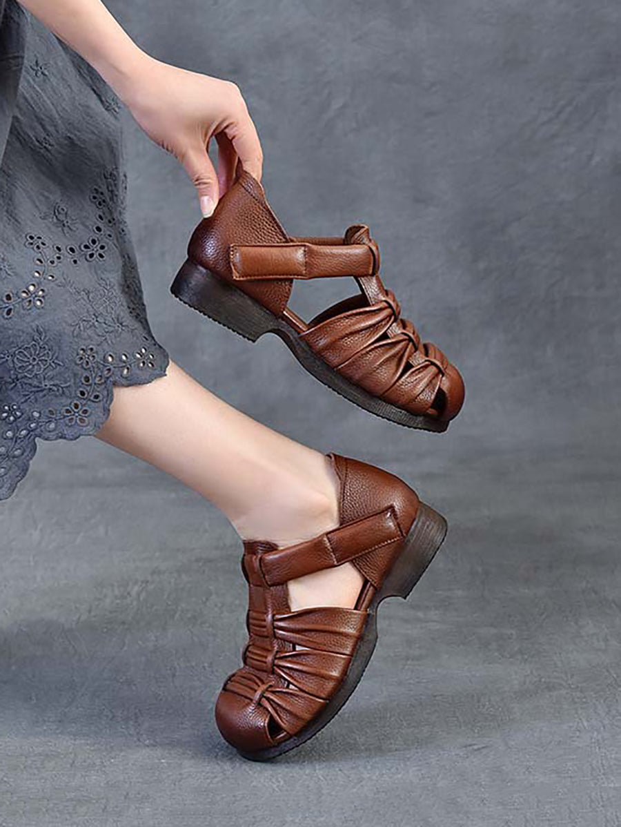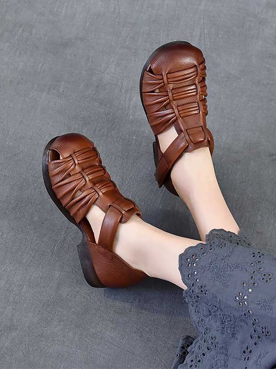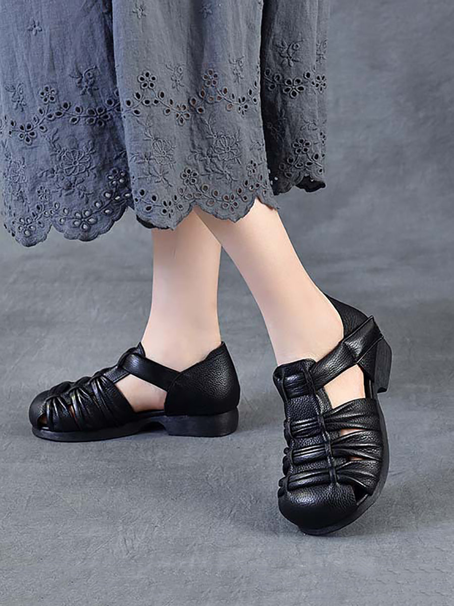 Women Summer Genuine Leather Low Heel Sandals