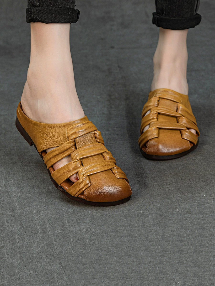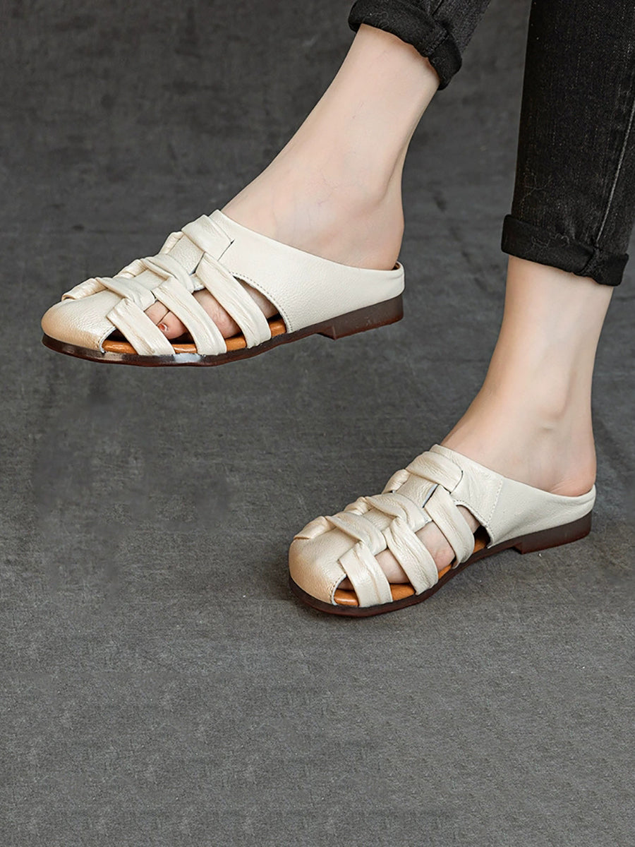 Women Summer Genuine Leather Weave Slippers