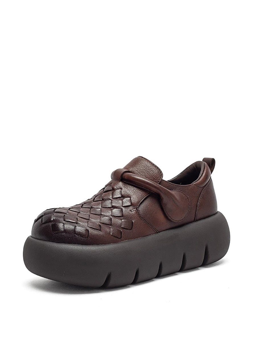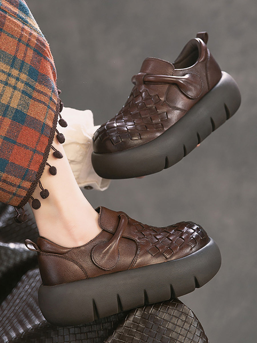 Women Summer Leather Weave Platform Shoes