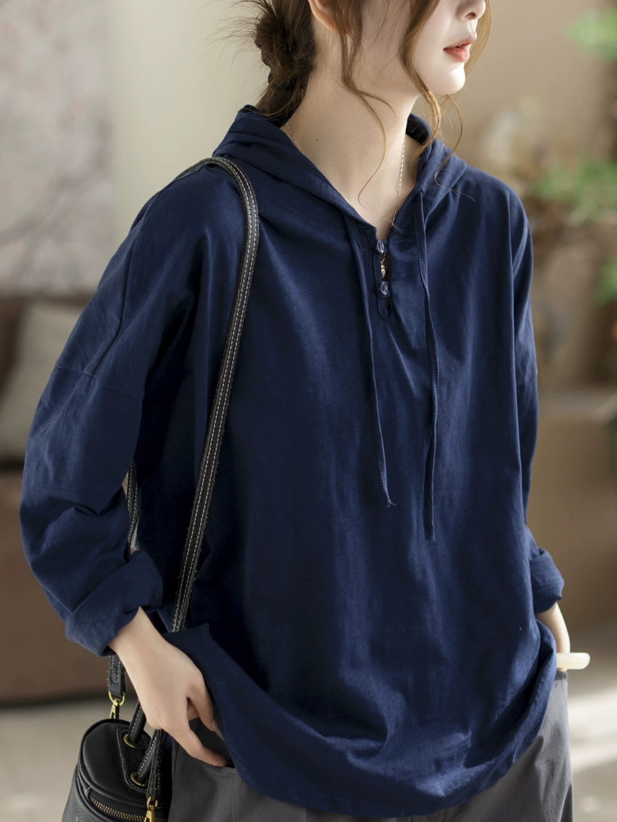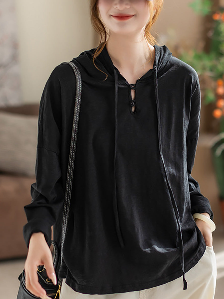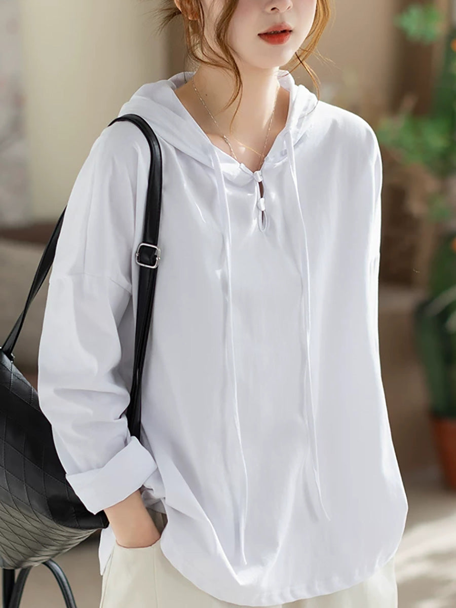 Women Versatile Spring Pure Color Cotton Hoodie