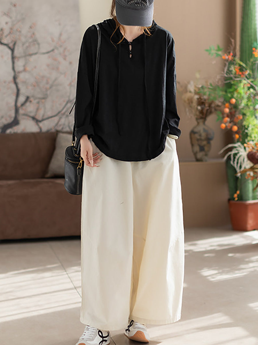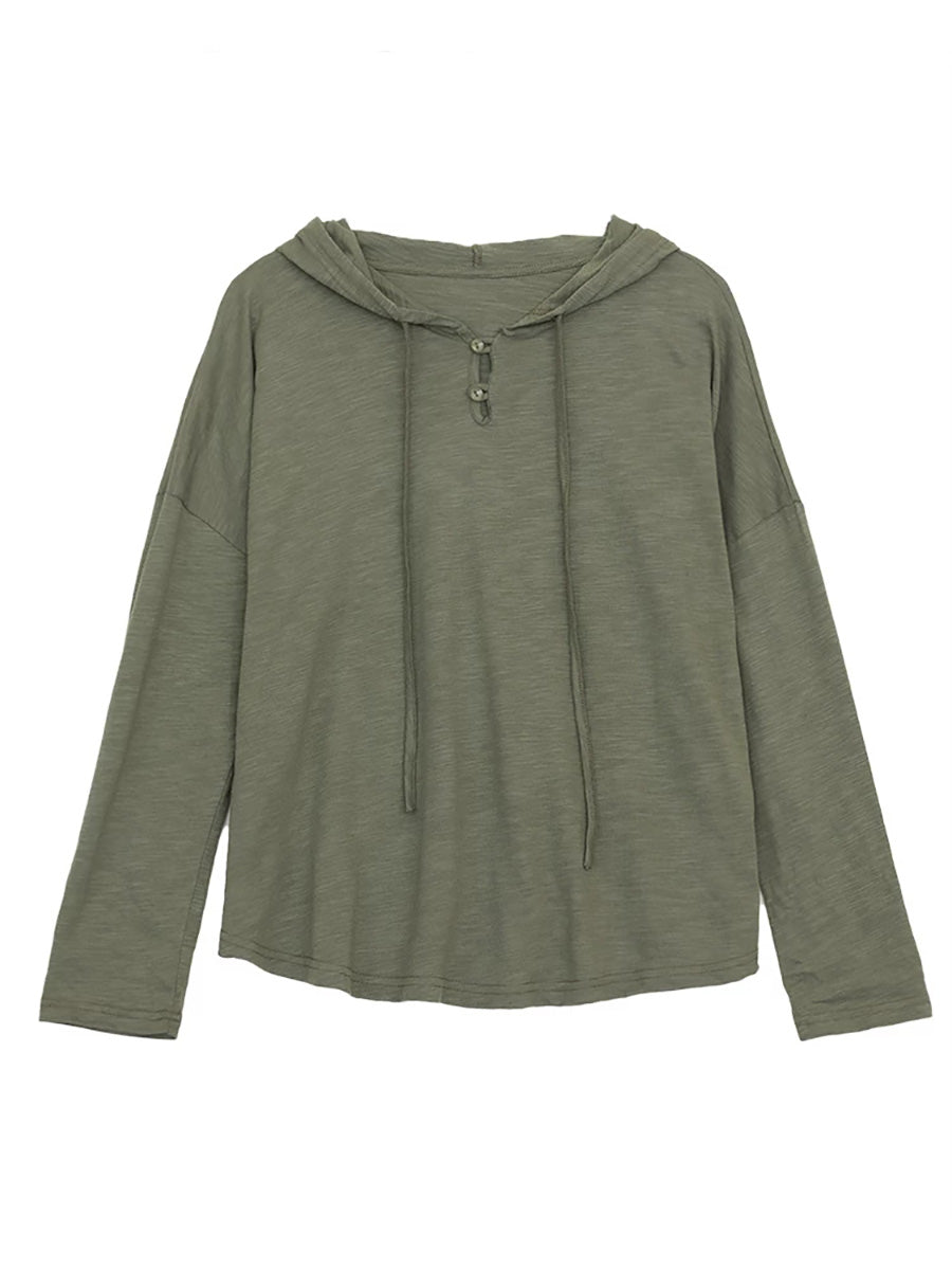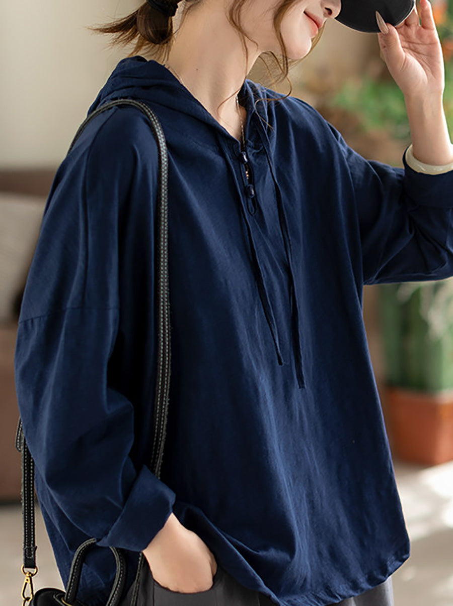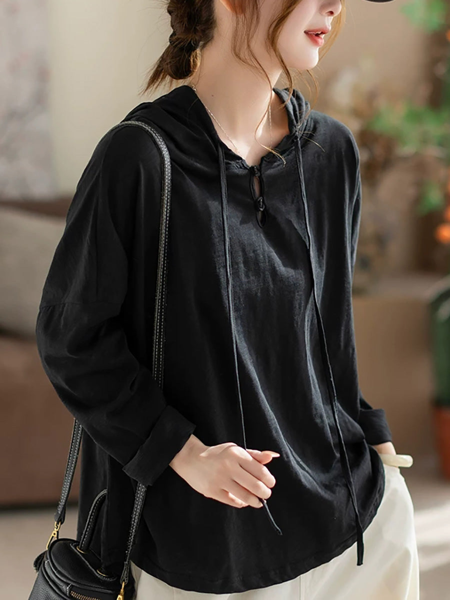 Women Versatile Spring Pure Color Cotton Hoodie