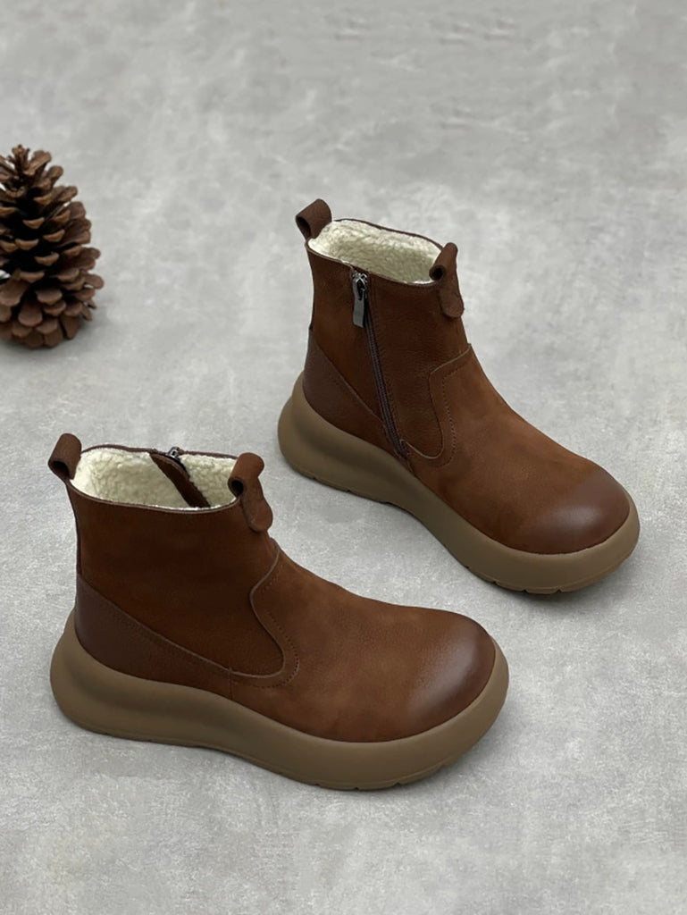 Women Vintage Genuine Leather Fleece-lined Platform Boots