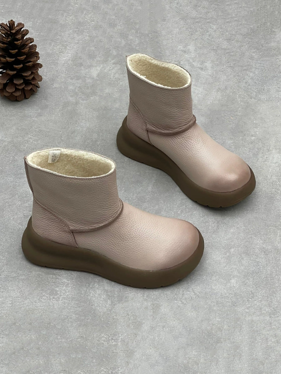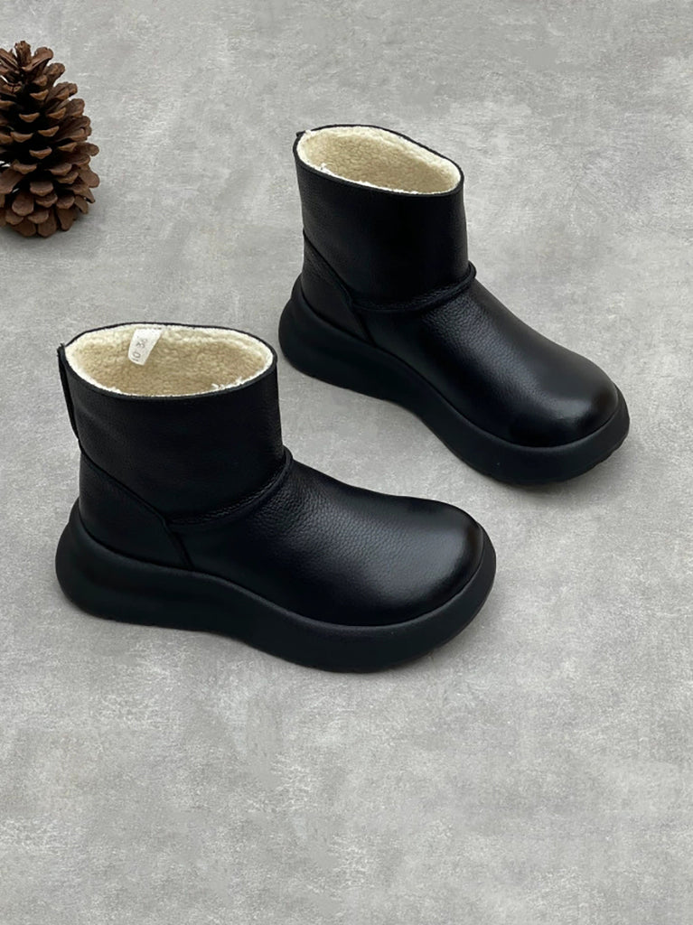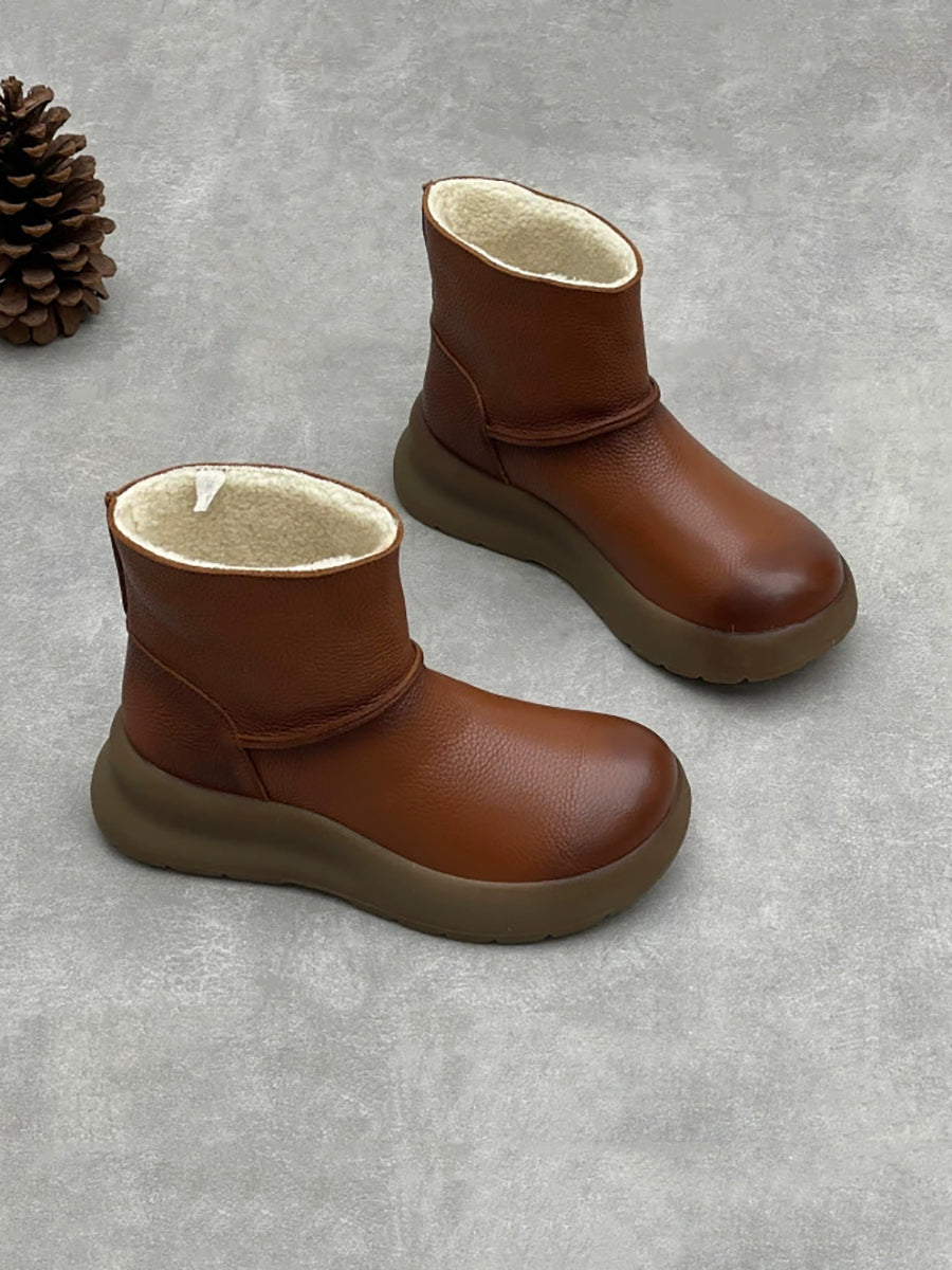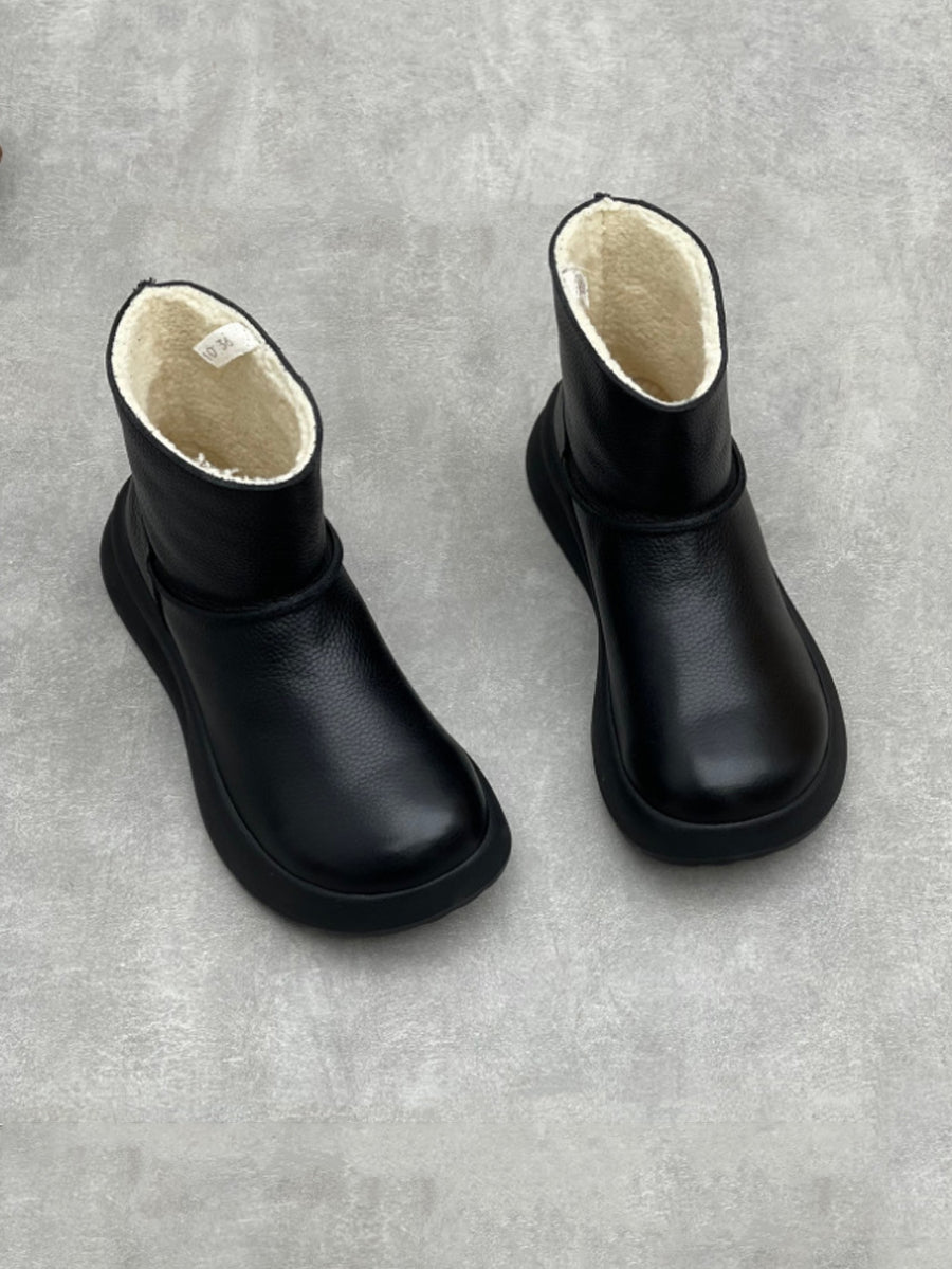 Women Vintage Genuine Leather Fleece-lined Platform Boots