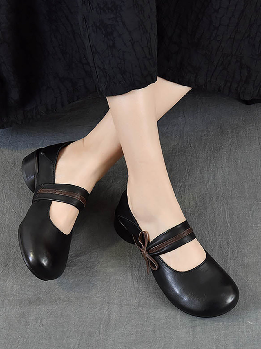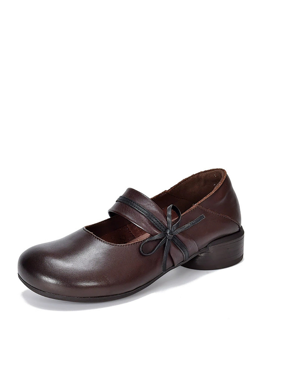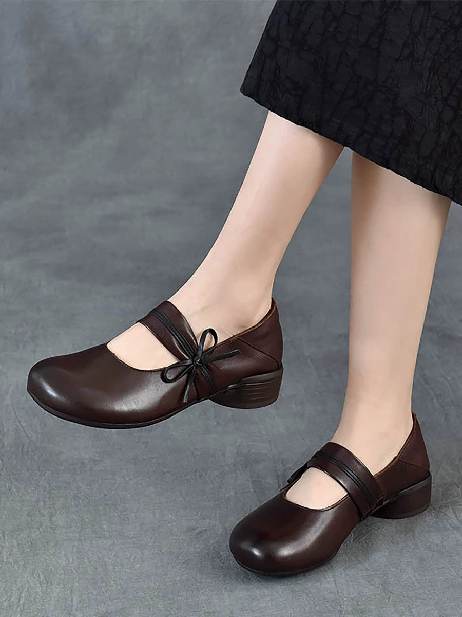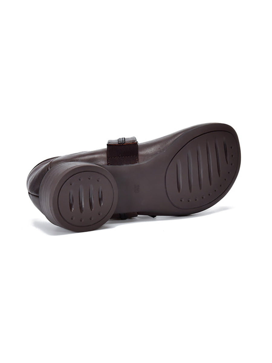 Women Vintage Genuine Leather Mid-Heel Shoes