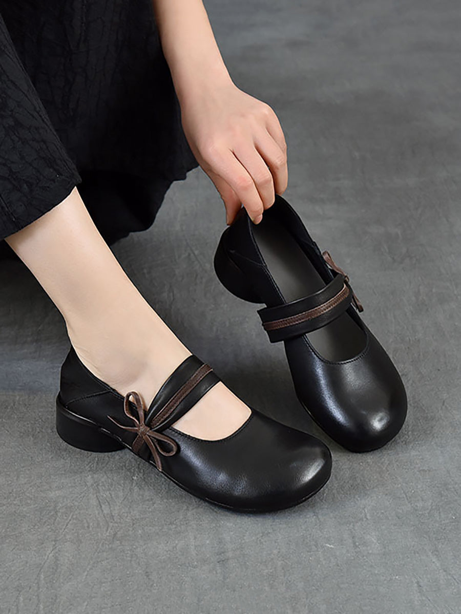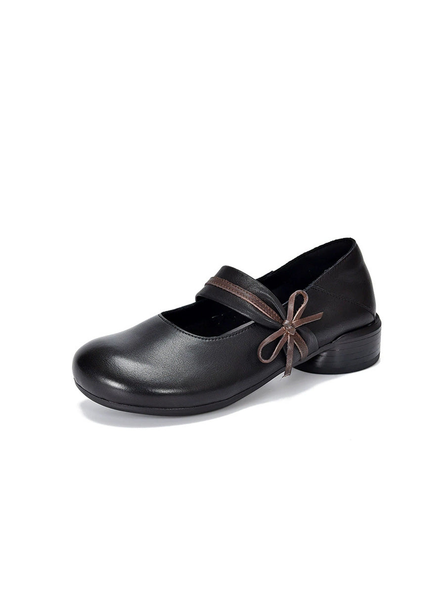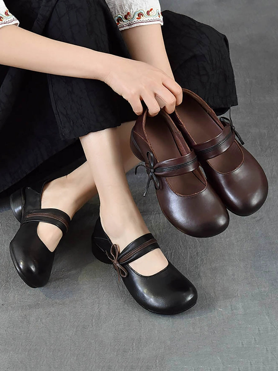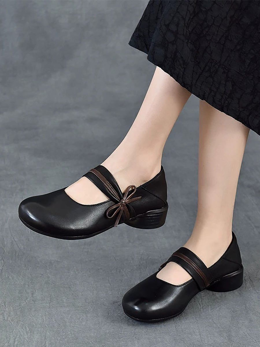 Women Vintage Genuine Leather Mid-Heel Shoes