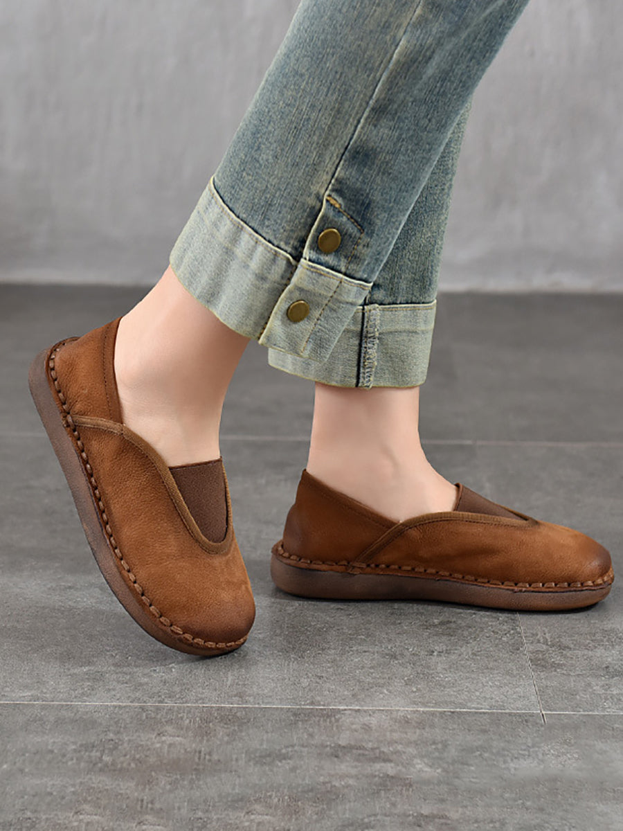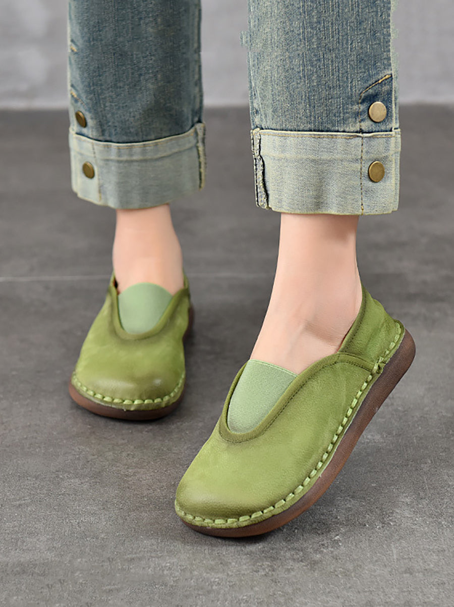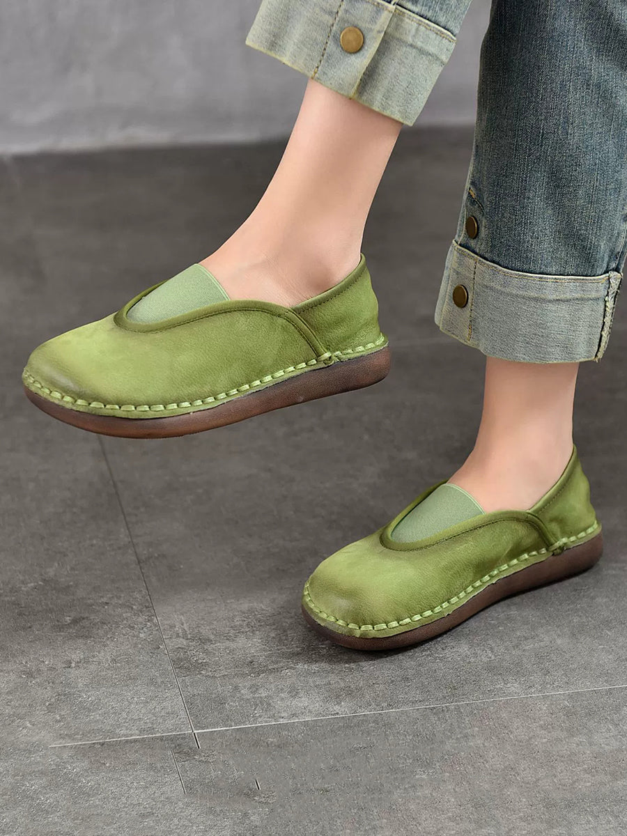 Women Vintage Genuine Leather Spliced Flat Shoes
