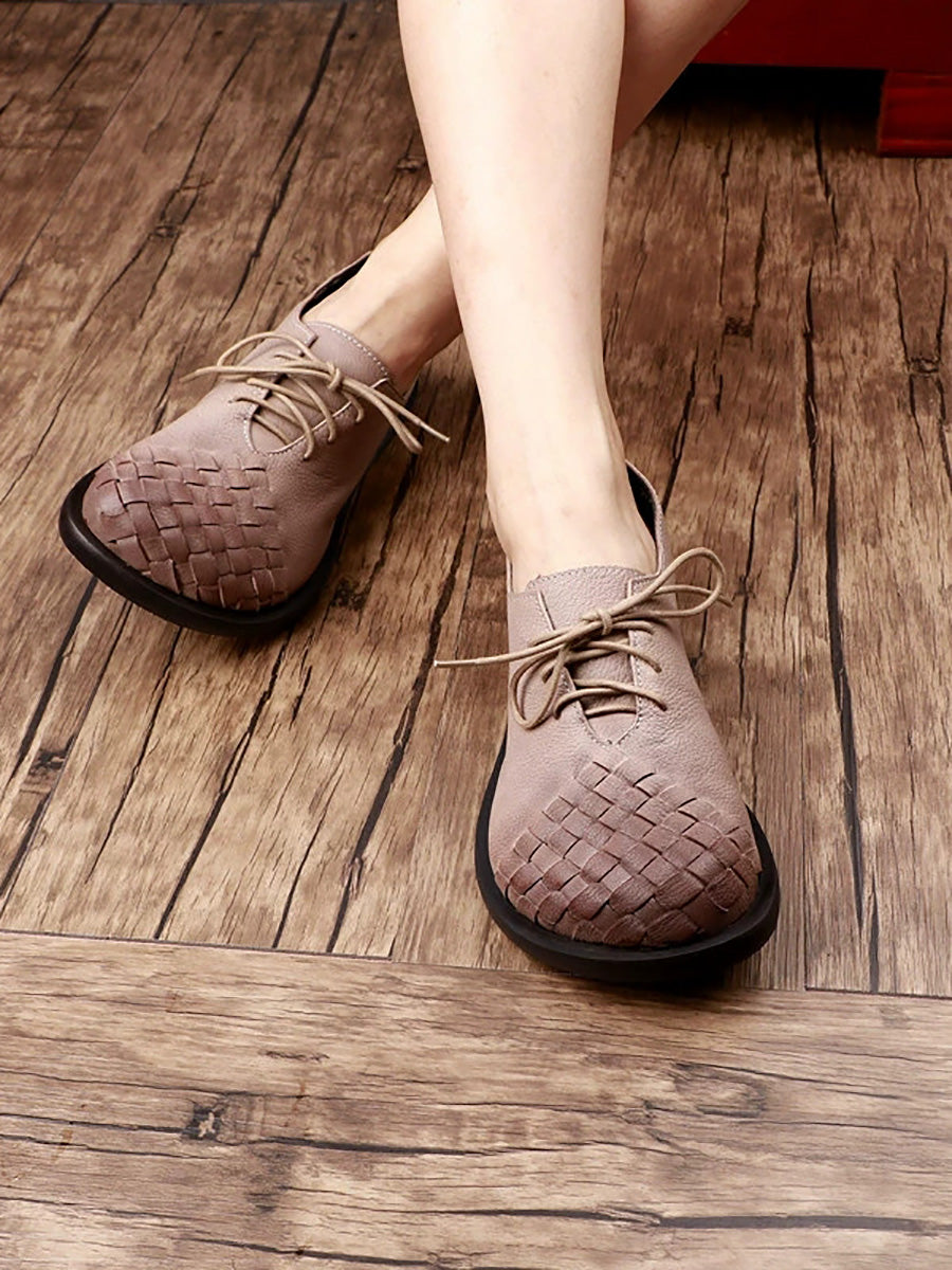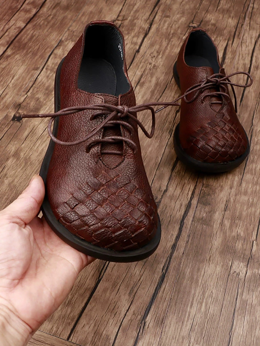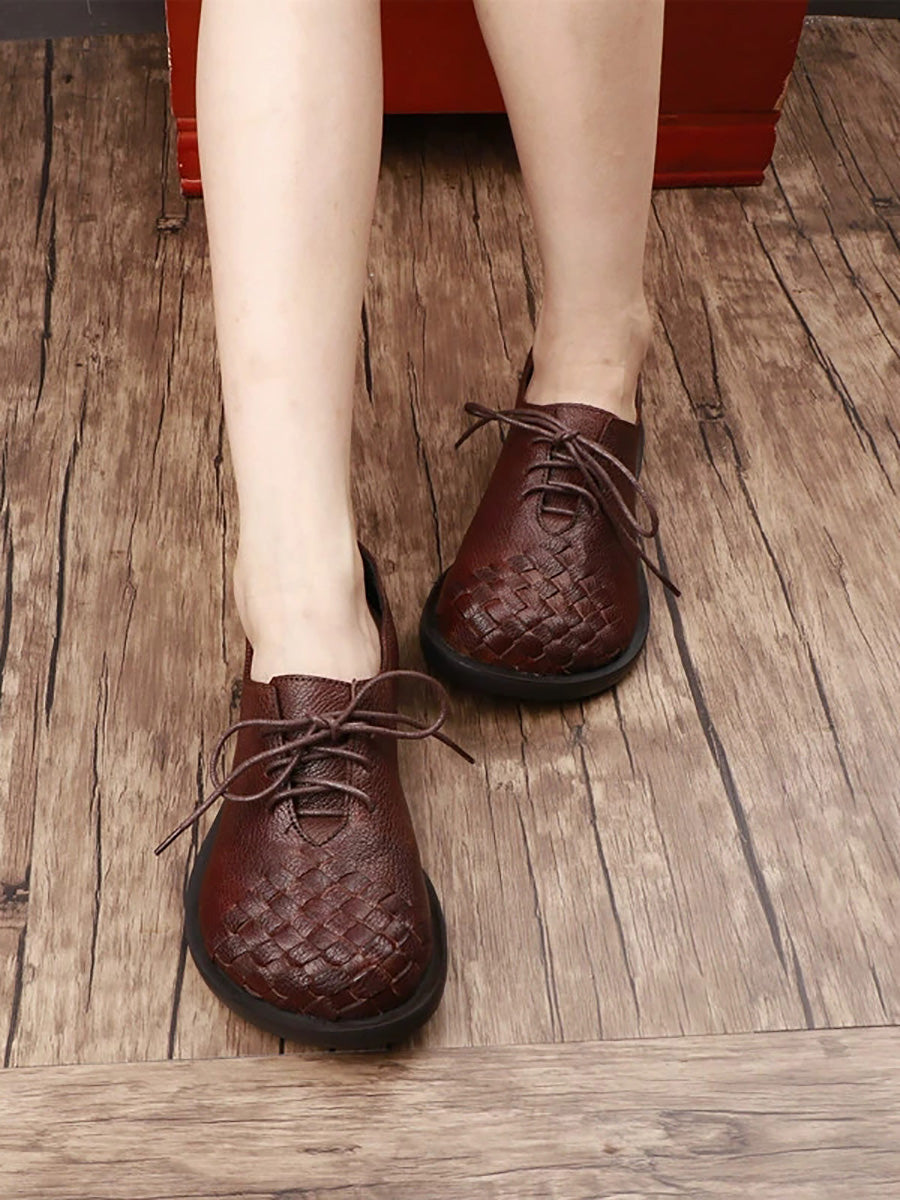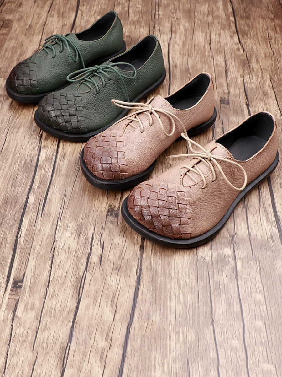 Women Vintage Genuine Leather Weave Flat Shoes