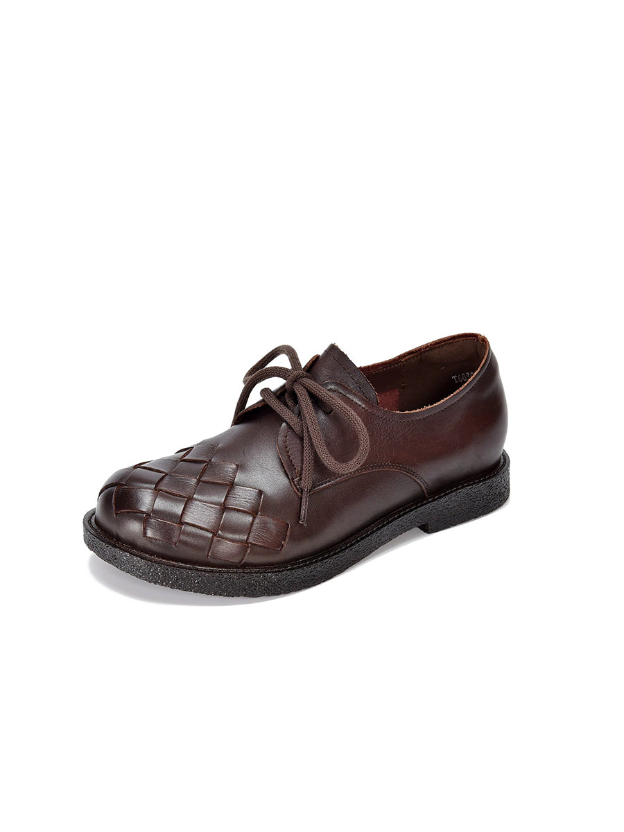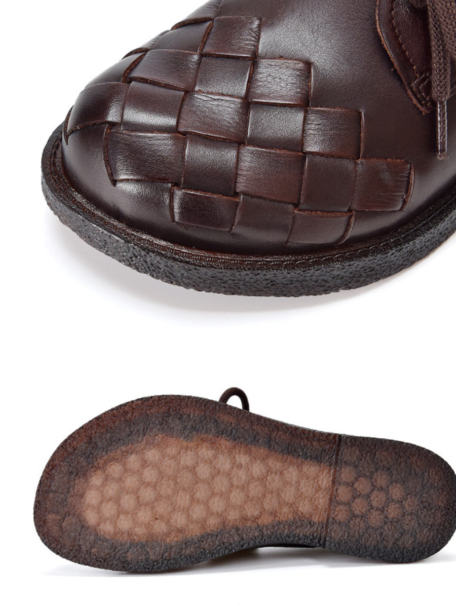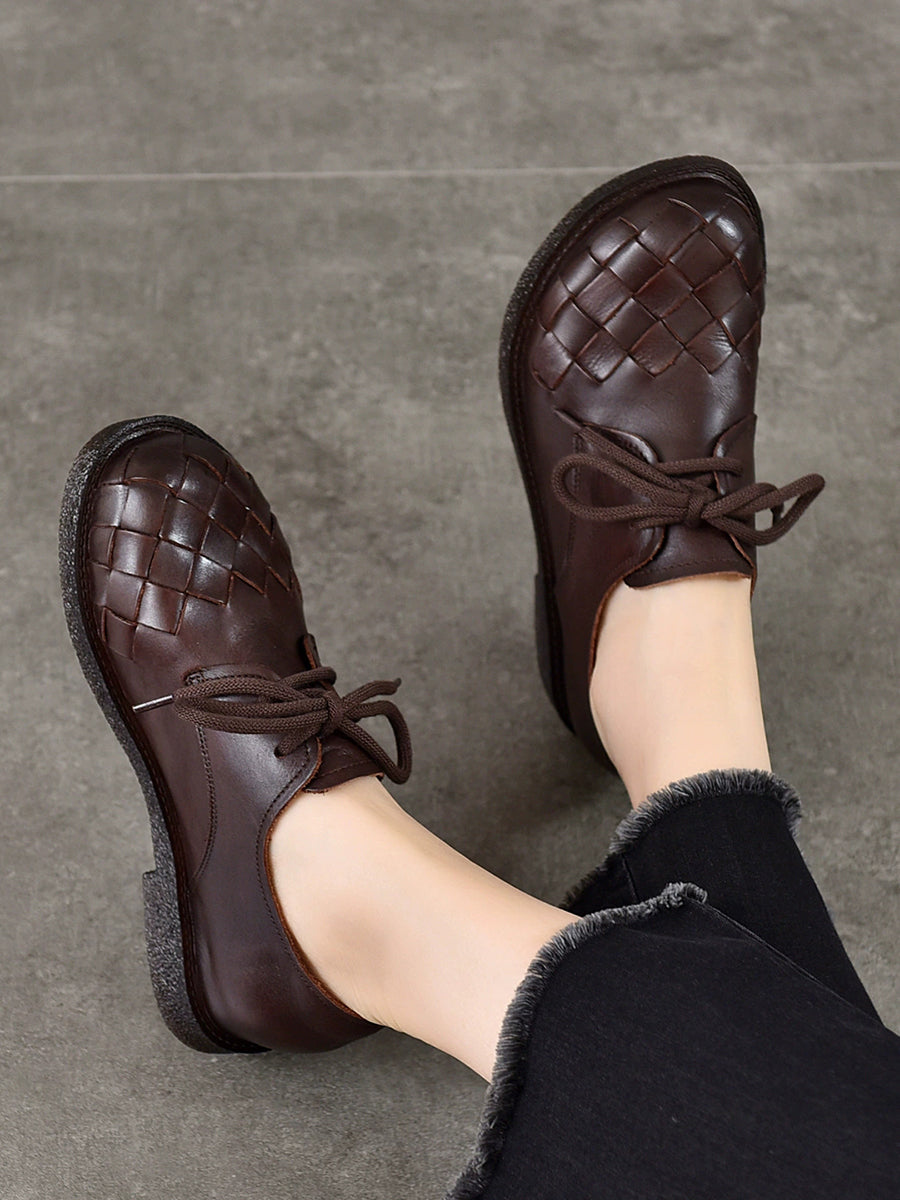 Women Vintage Genuine Leather Weave Shoes