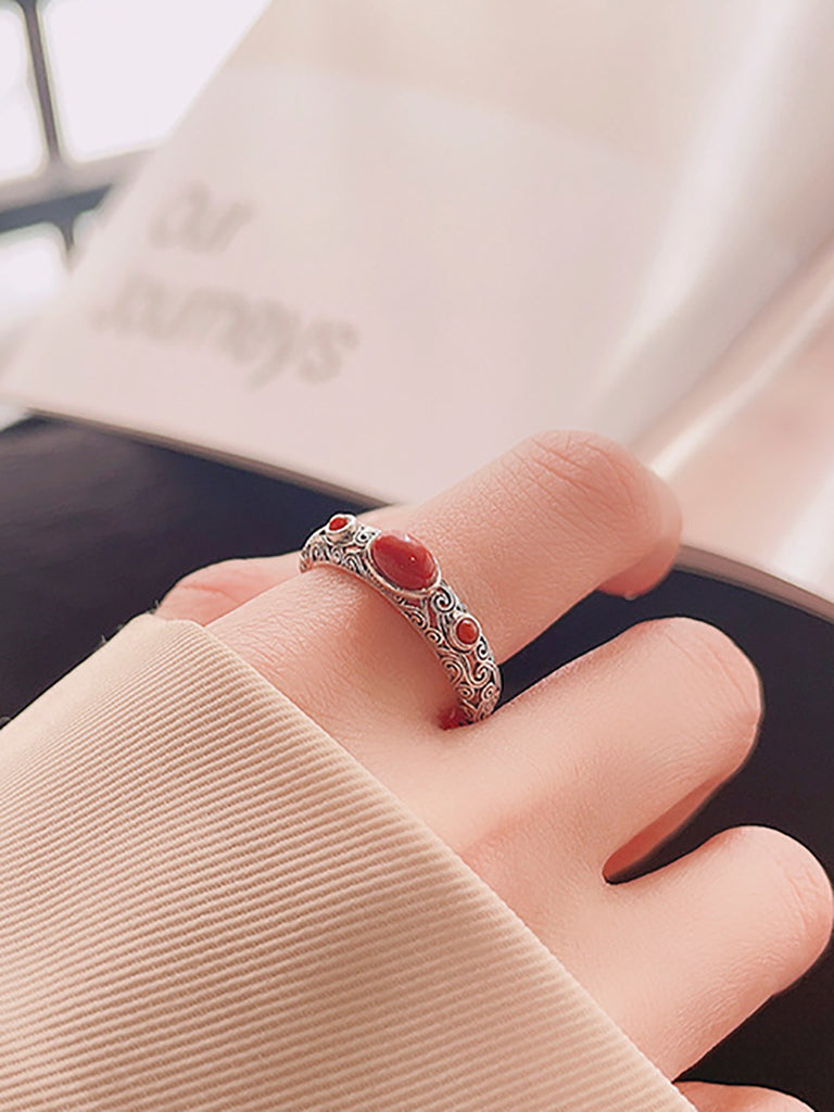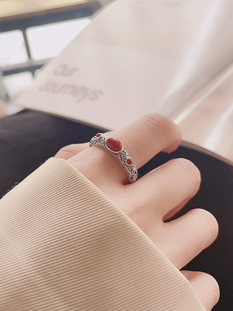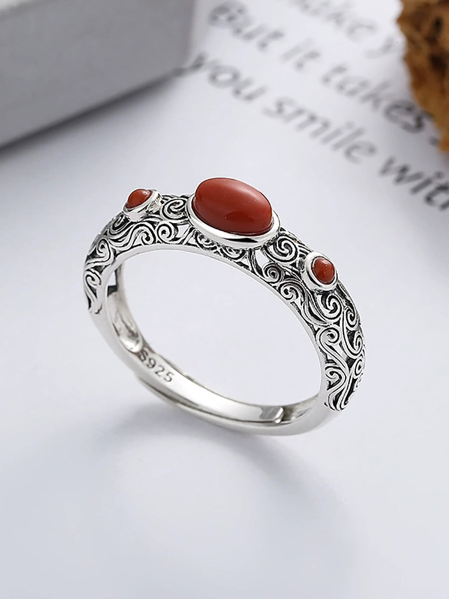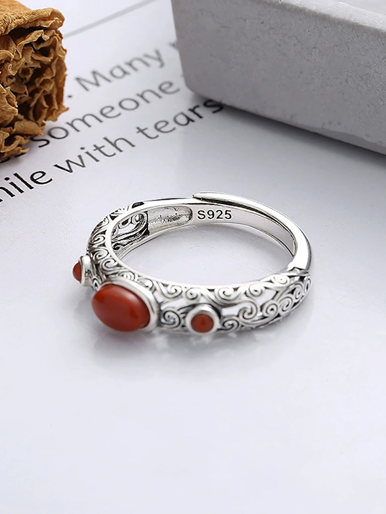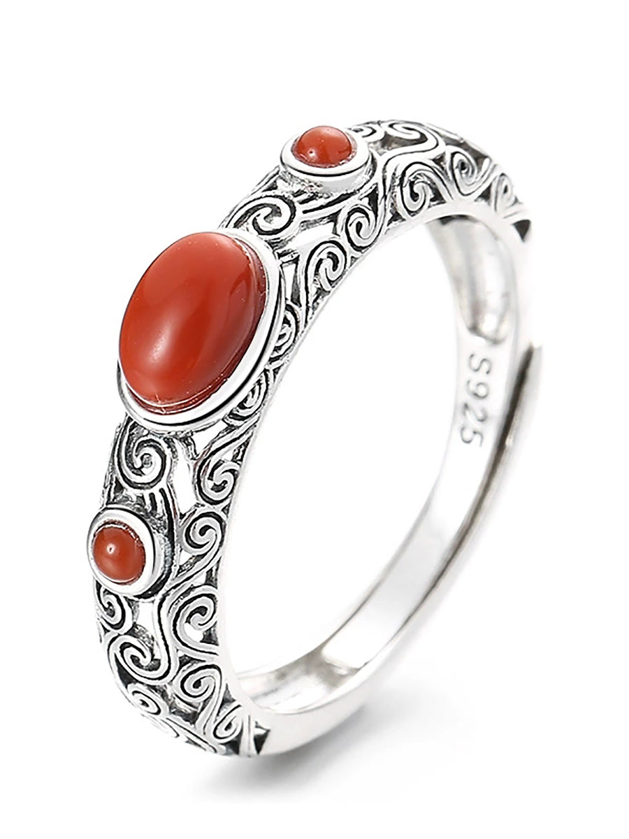 Women Vintage S925Silver Red Agate Adjustable Ring