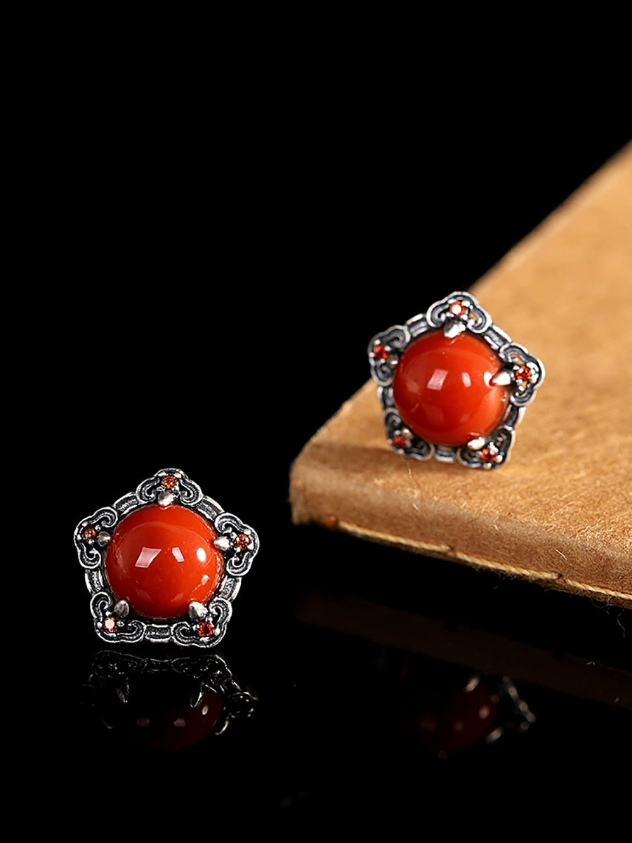 Women Vintage S925Silver Red Agate Earrings