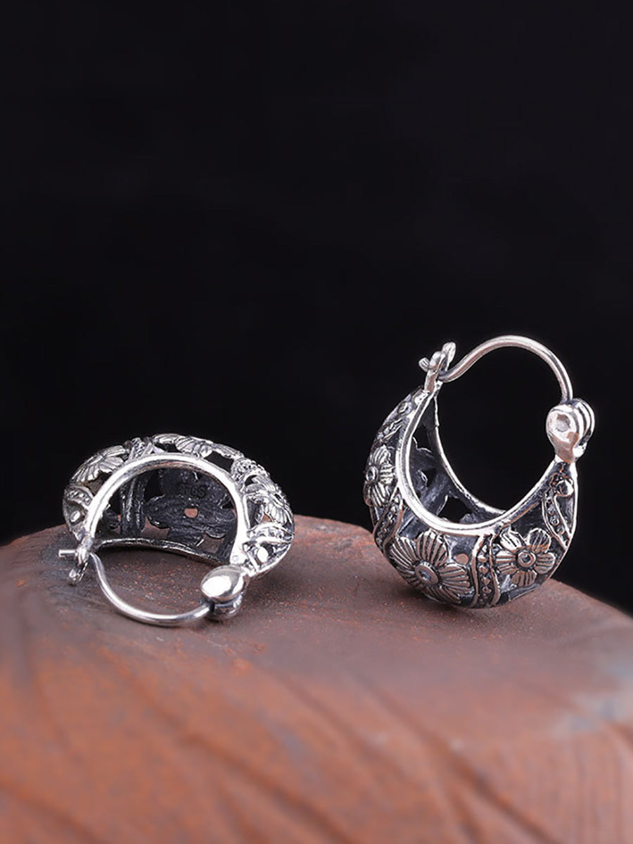 Women Vintage S925Silver Hollow Out Flower Earrings