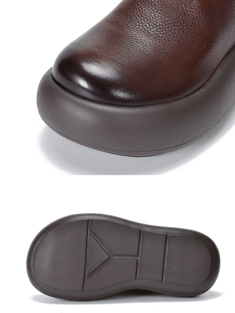 Women Vintage Soft Leather Platform Ankle Boots