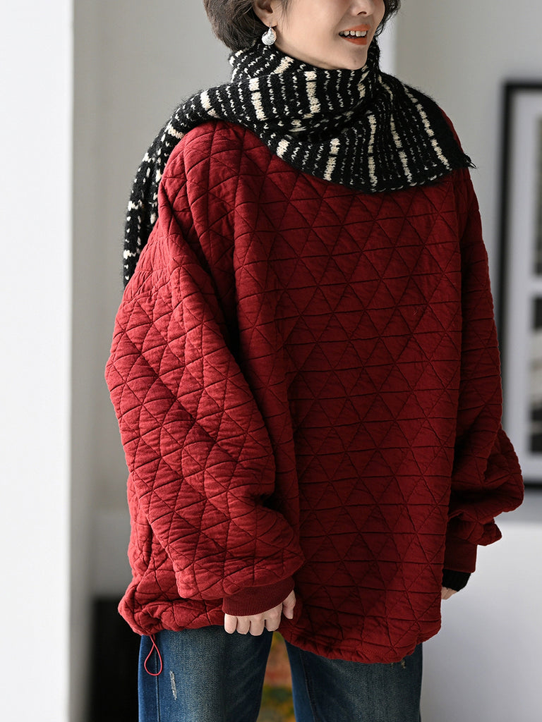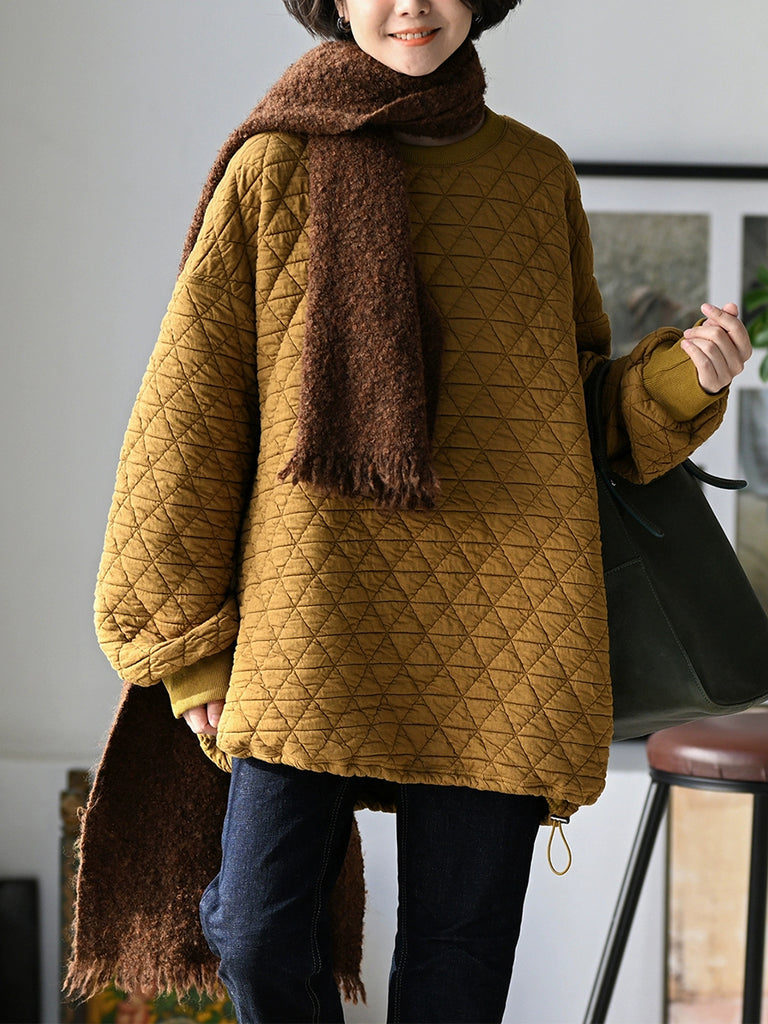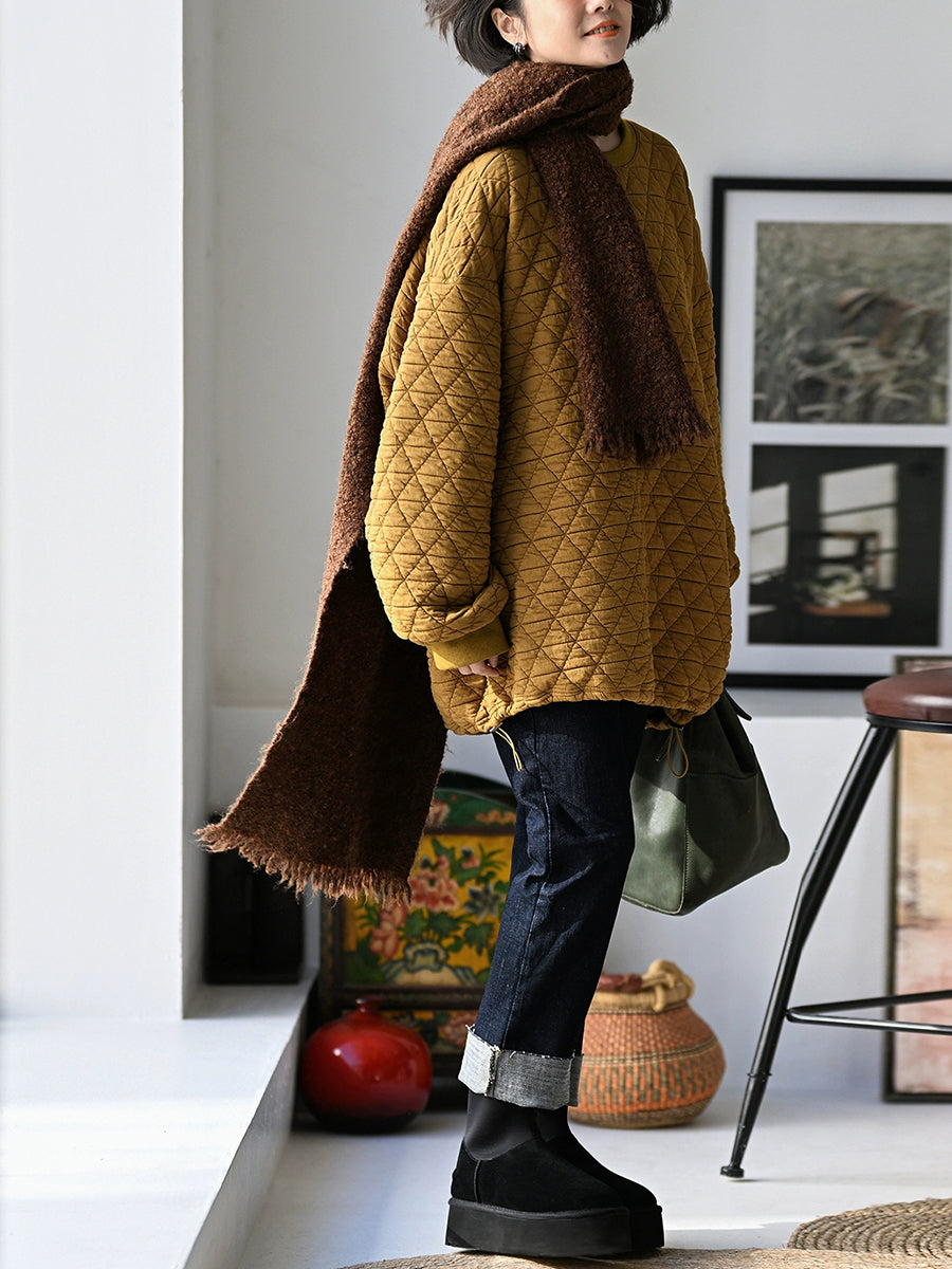Women Winter Artsy Pure Color Padded O-Neck Coat