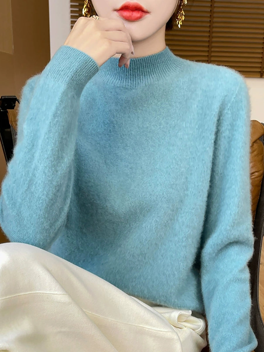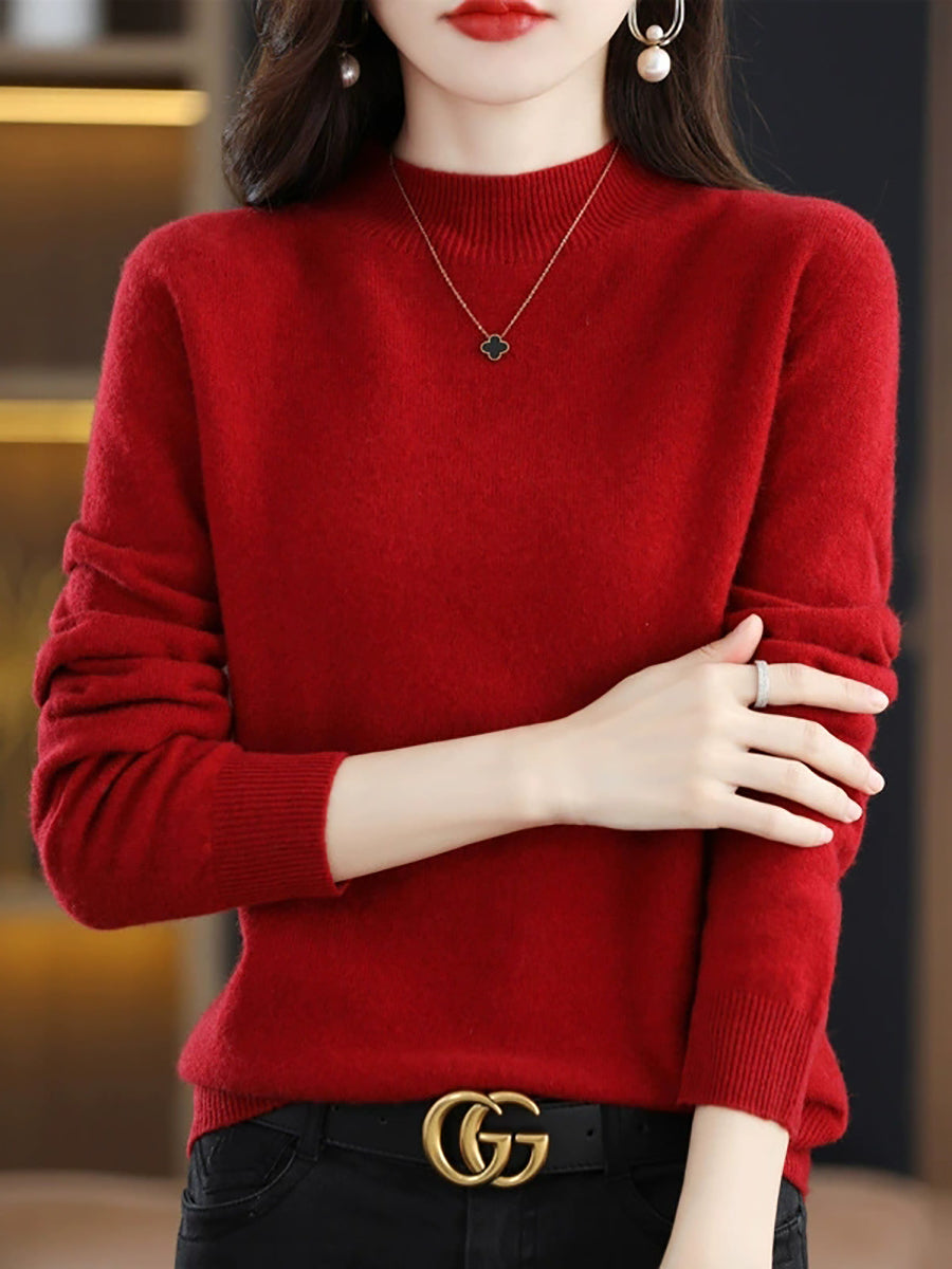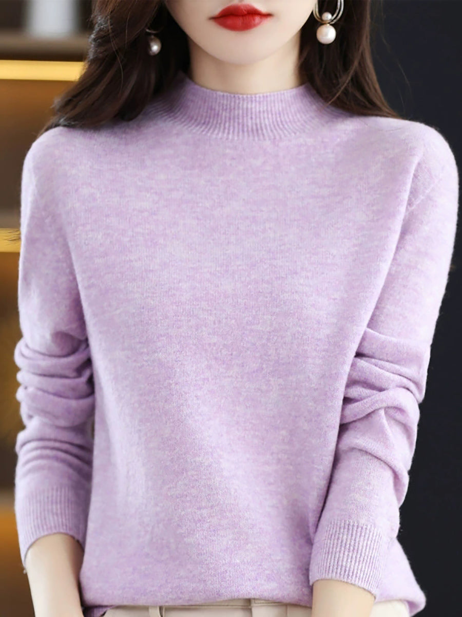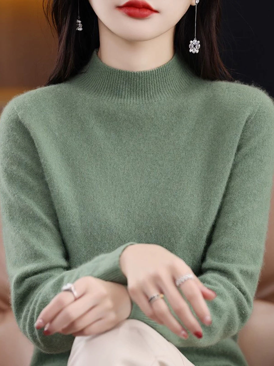 Women Winter Artsy Pure Color Wool Half-Turtleneck Sweater