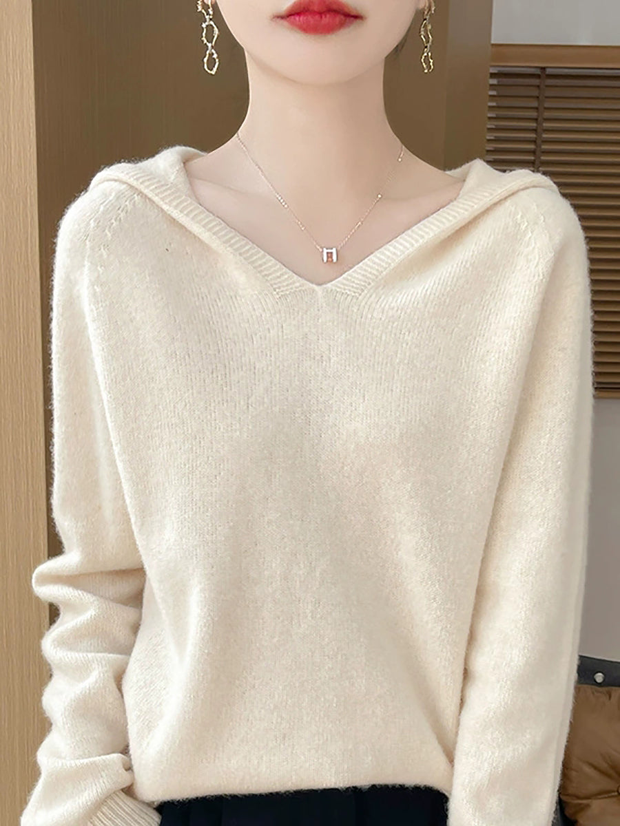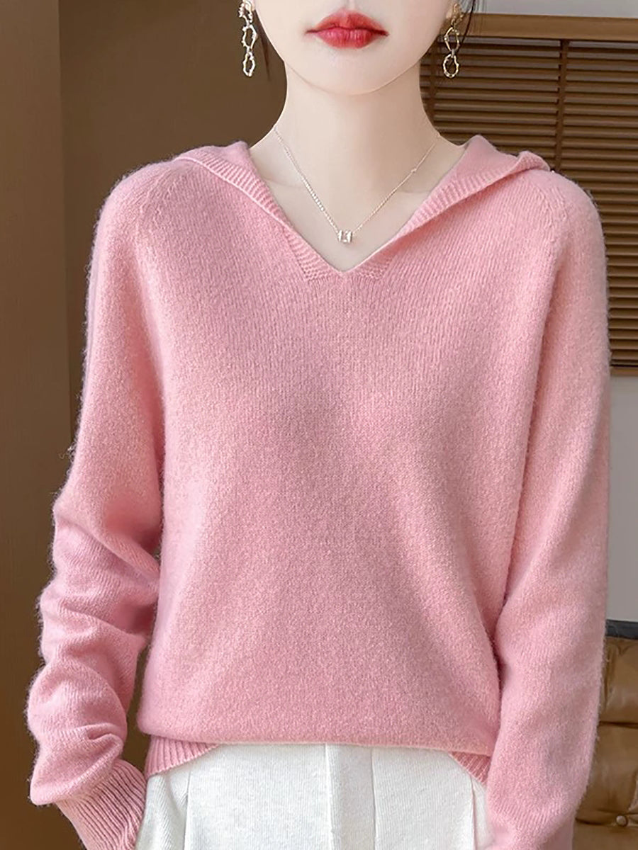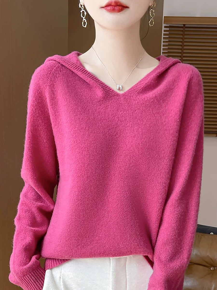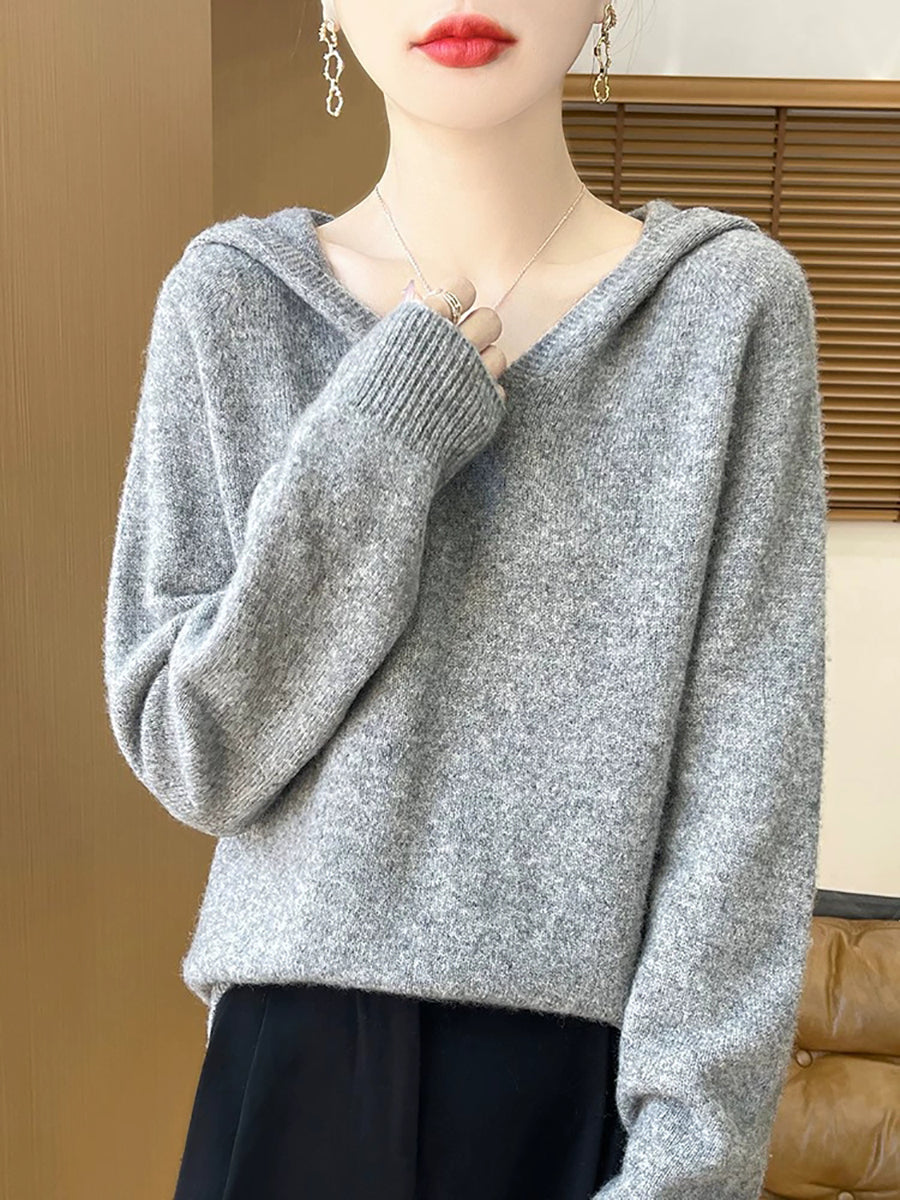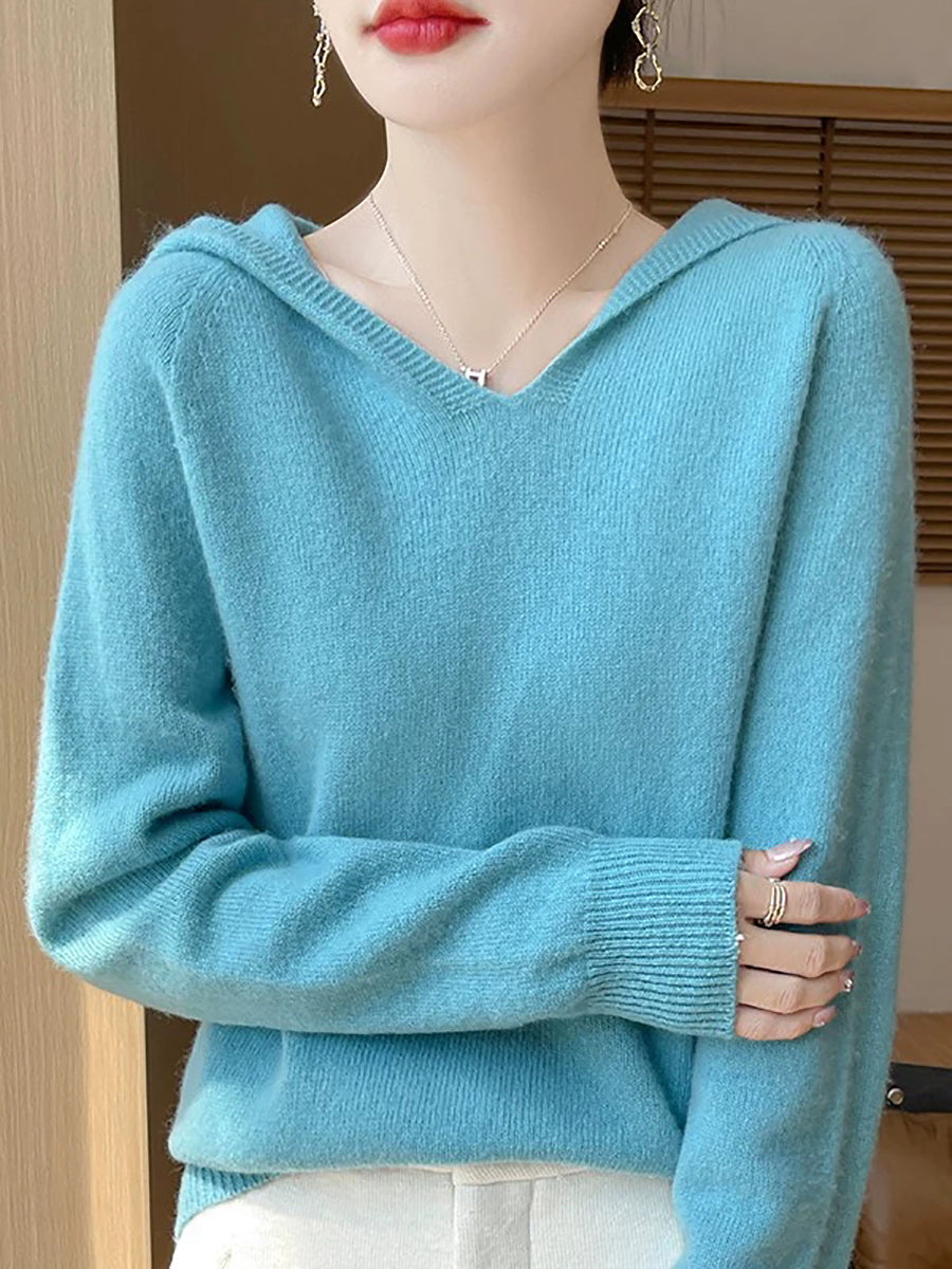 Women Winter Casual Hooded Pure Color Sweater