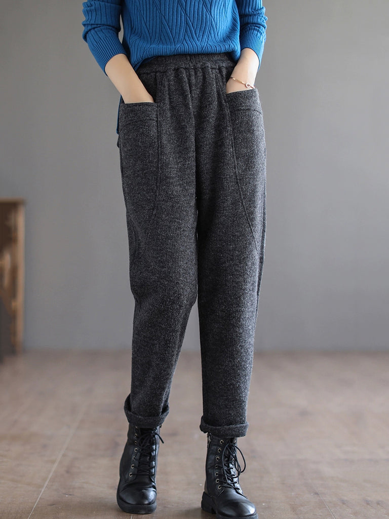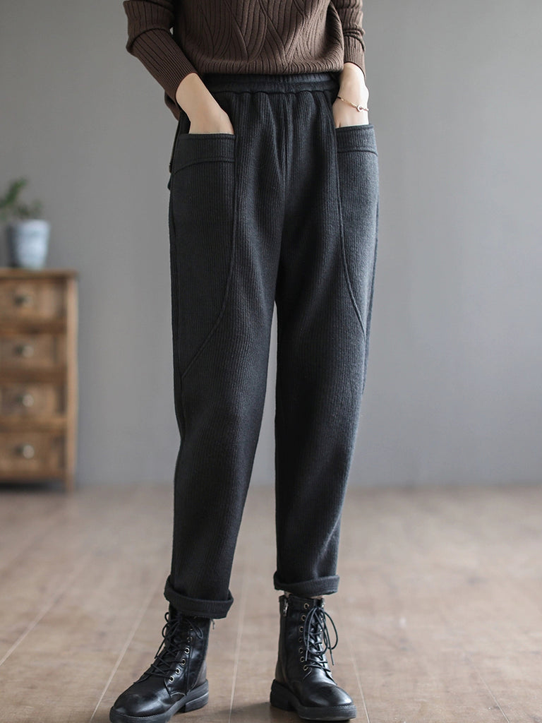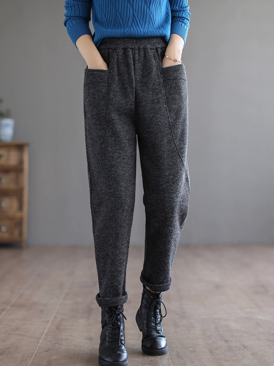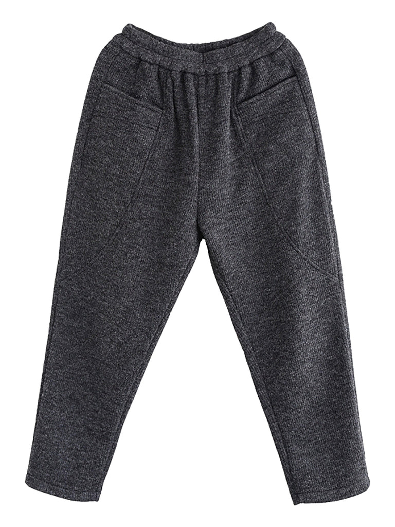 Women Winter Casual Pure Color Fleece-lined Harem Pants
