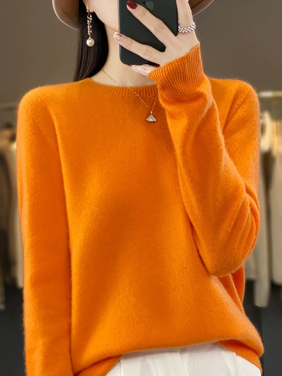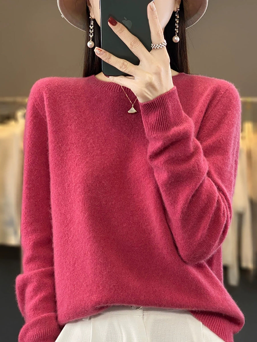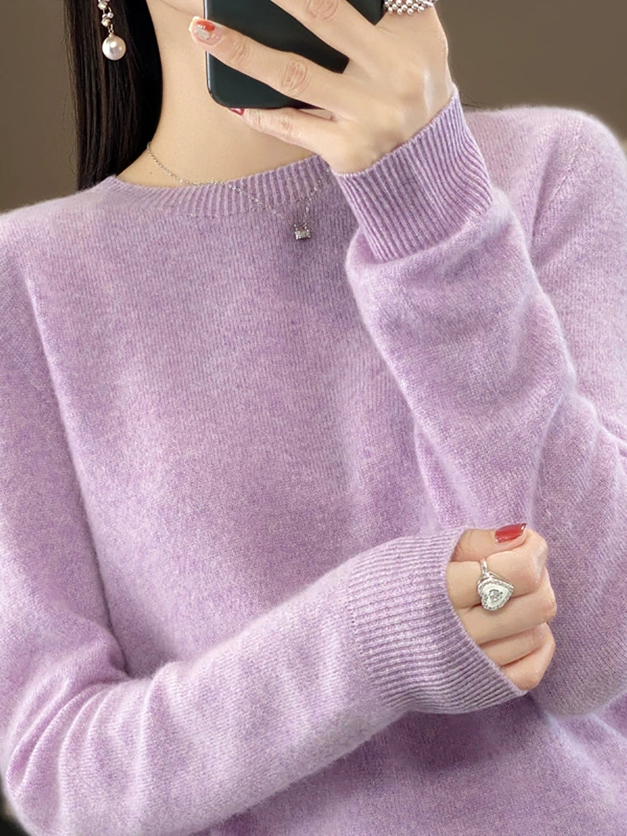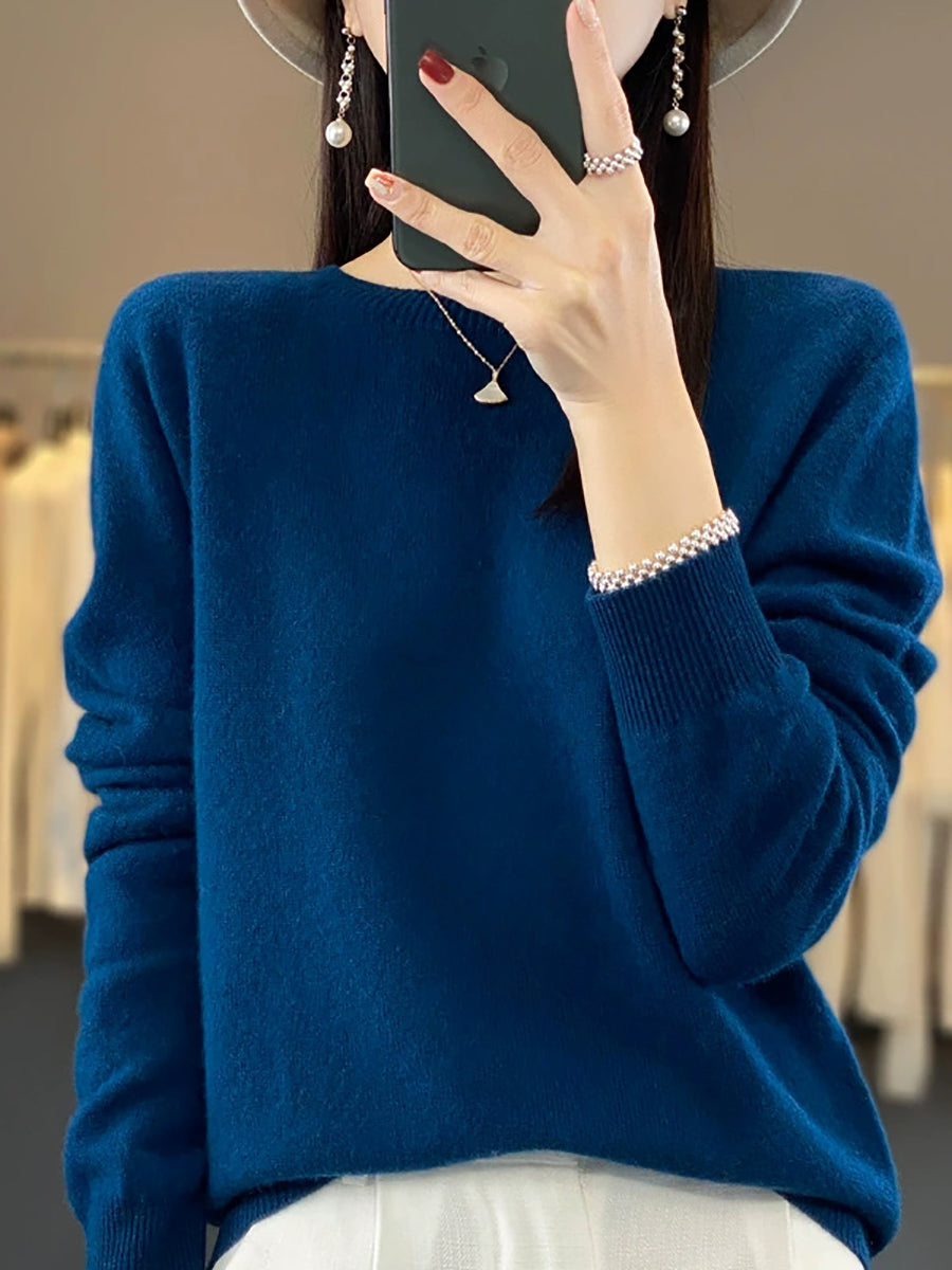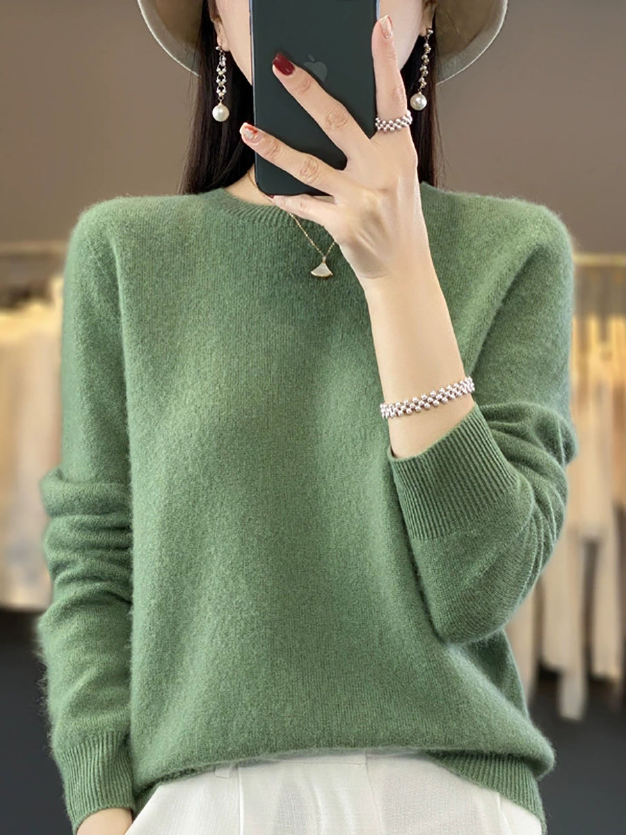Women Winter Casual Pure Color O-Neck Knitted Sweater