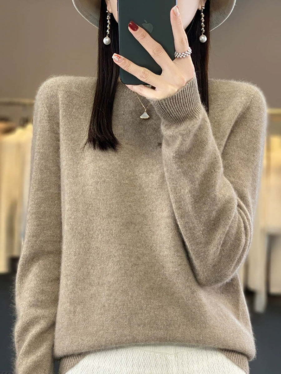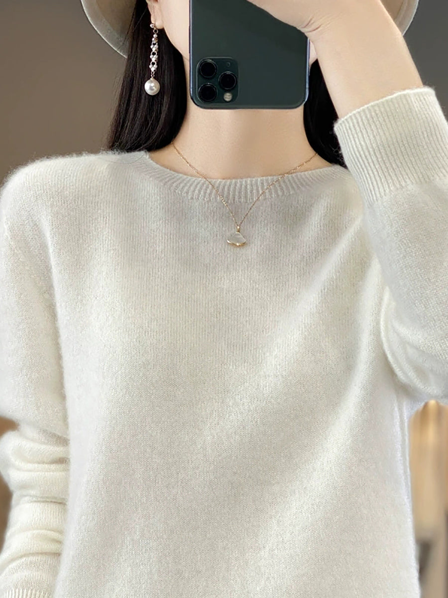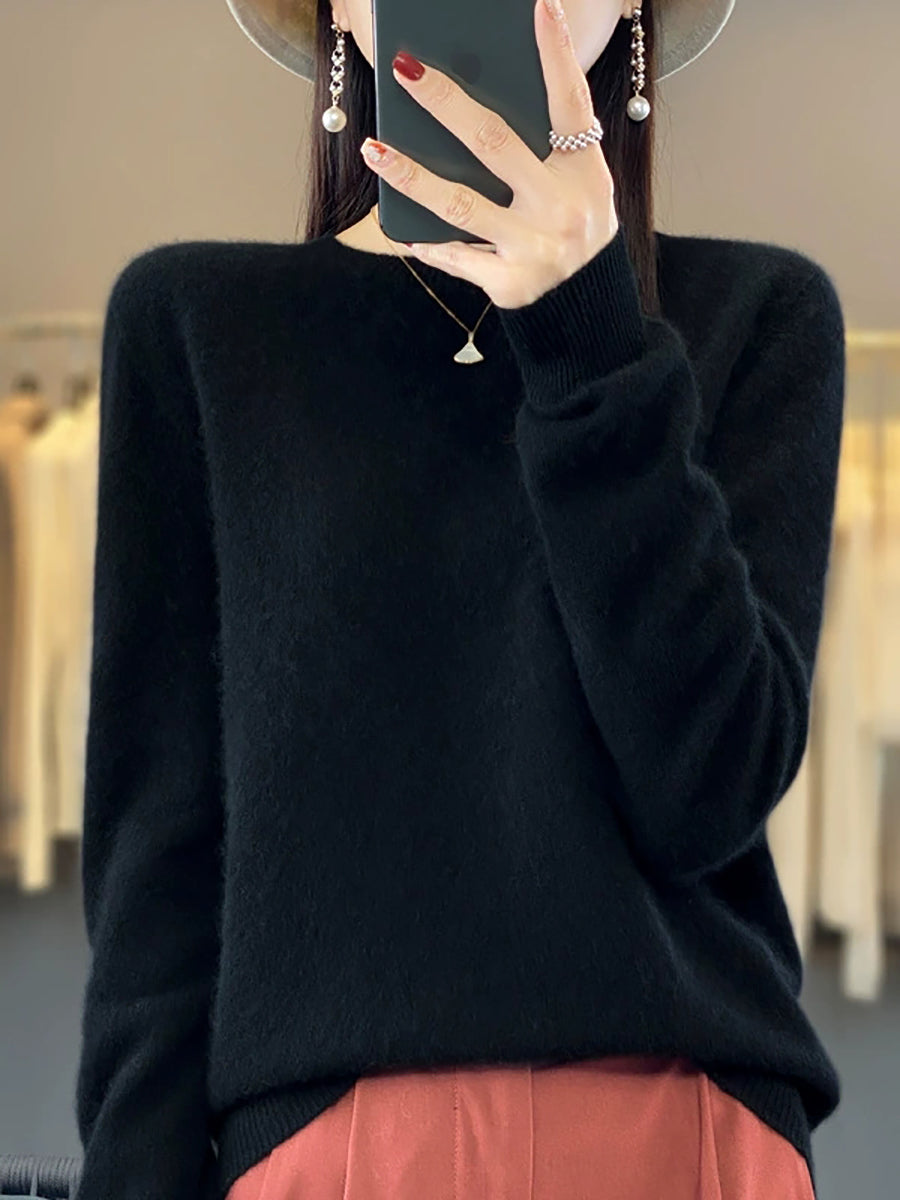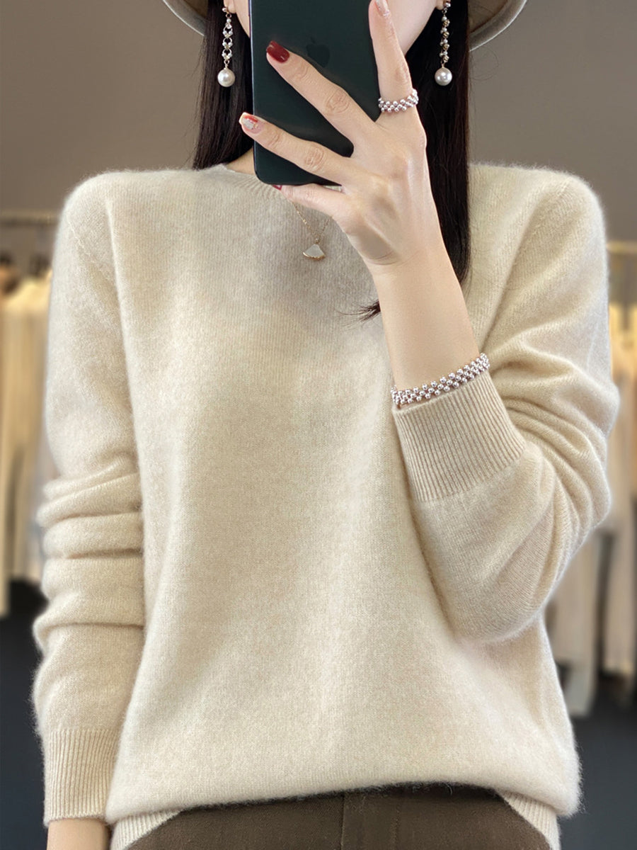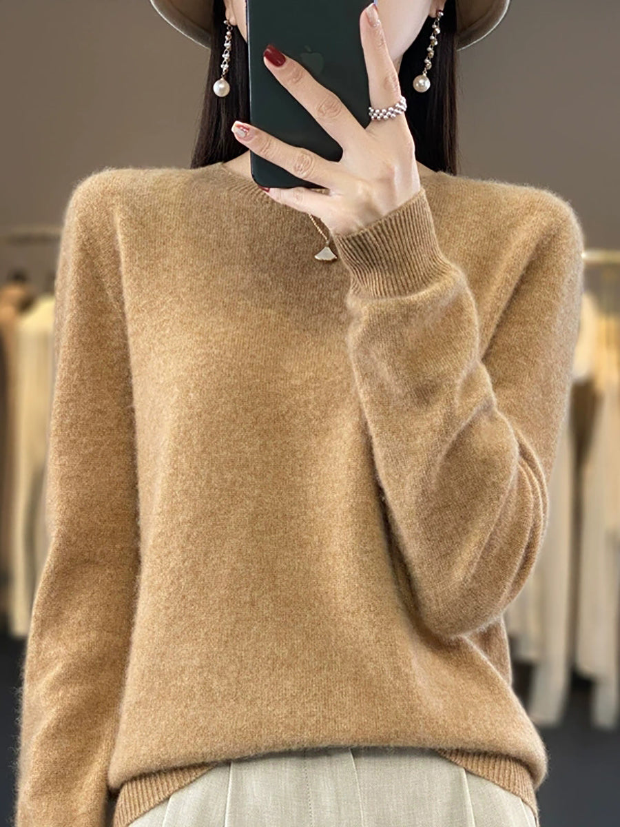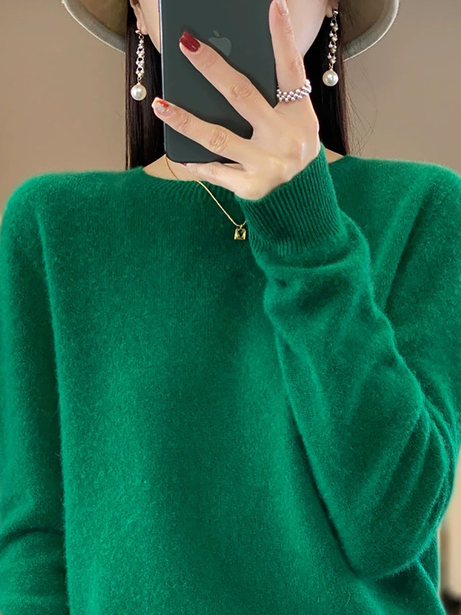 Women Winter Casual Pure Color O-Neck Knitted Sweater