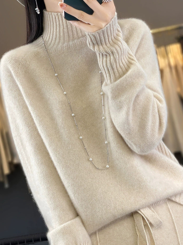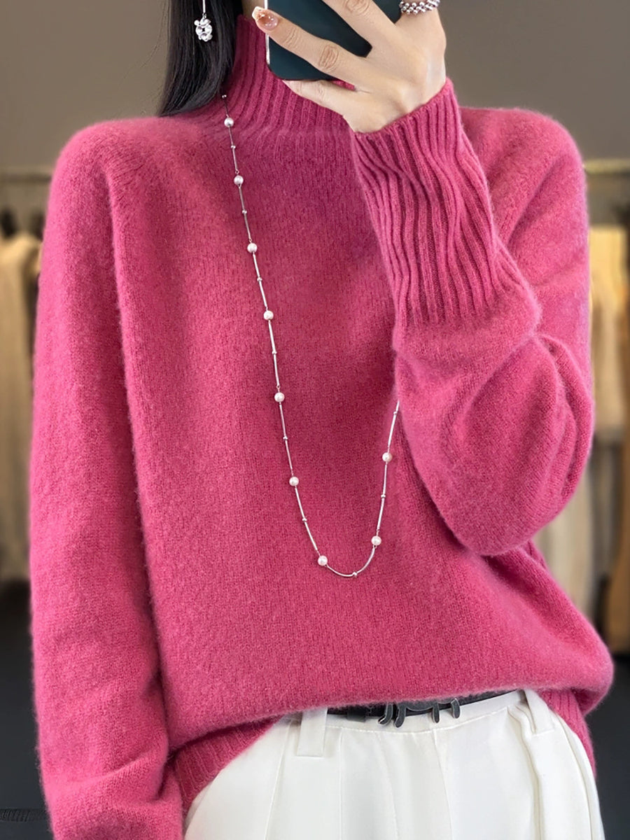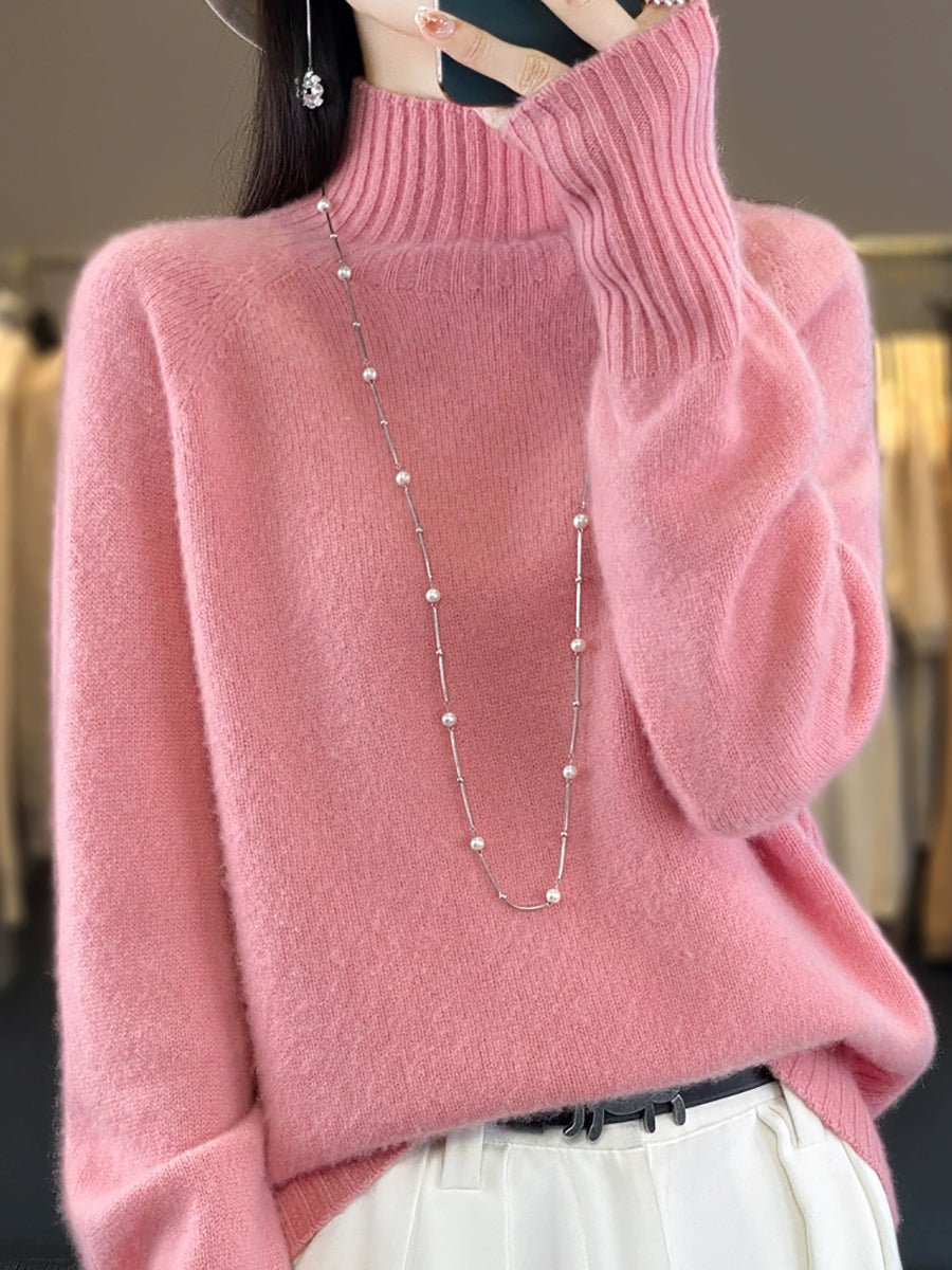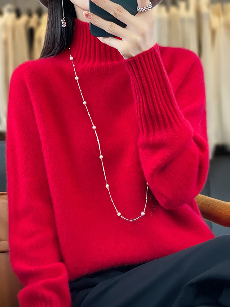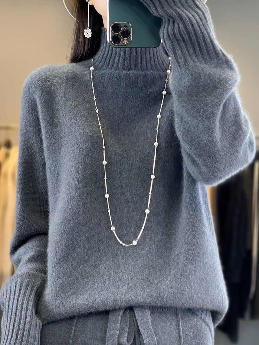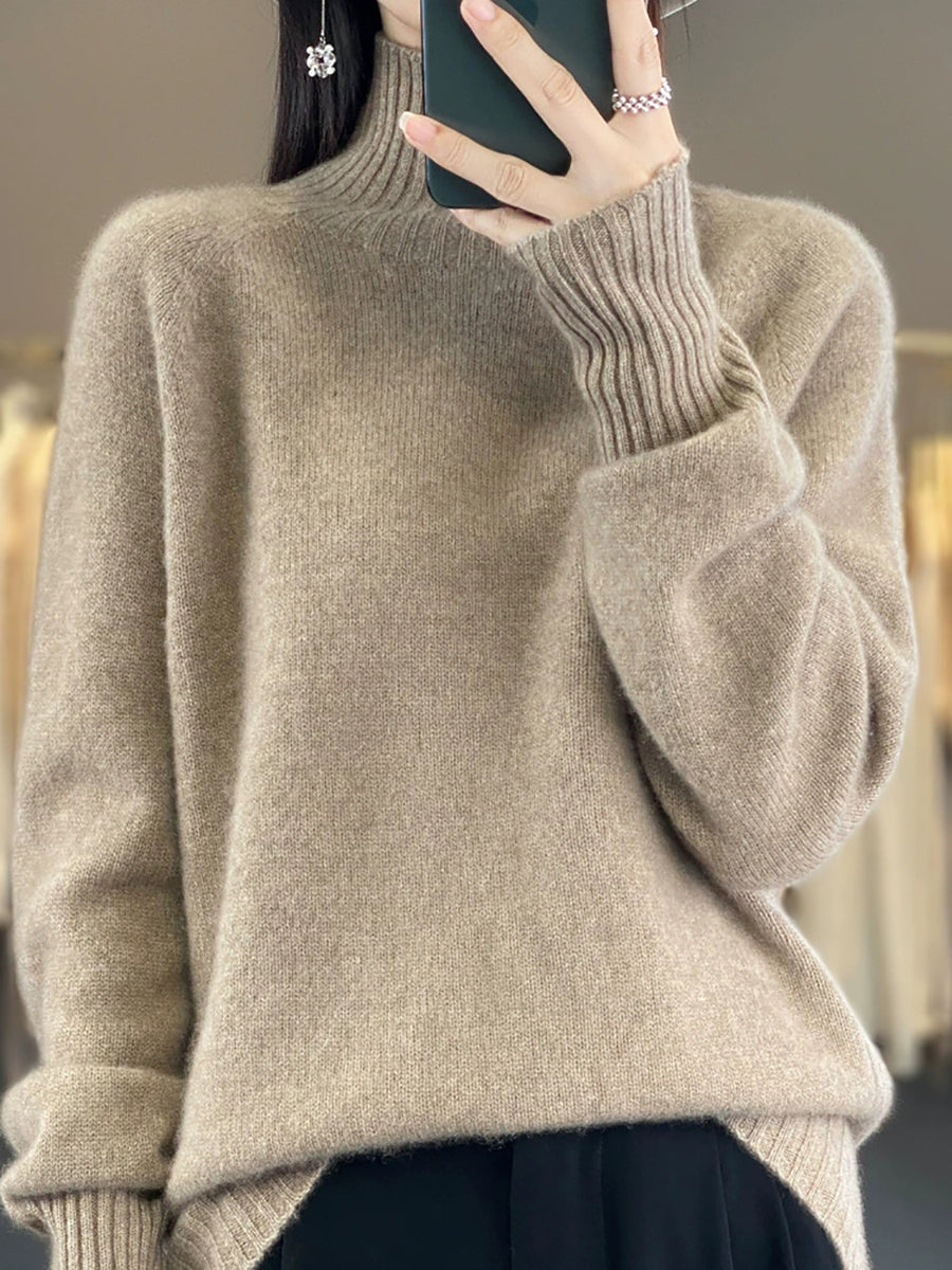 Women Winter Casual Pure Color Turtleneck Sweater