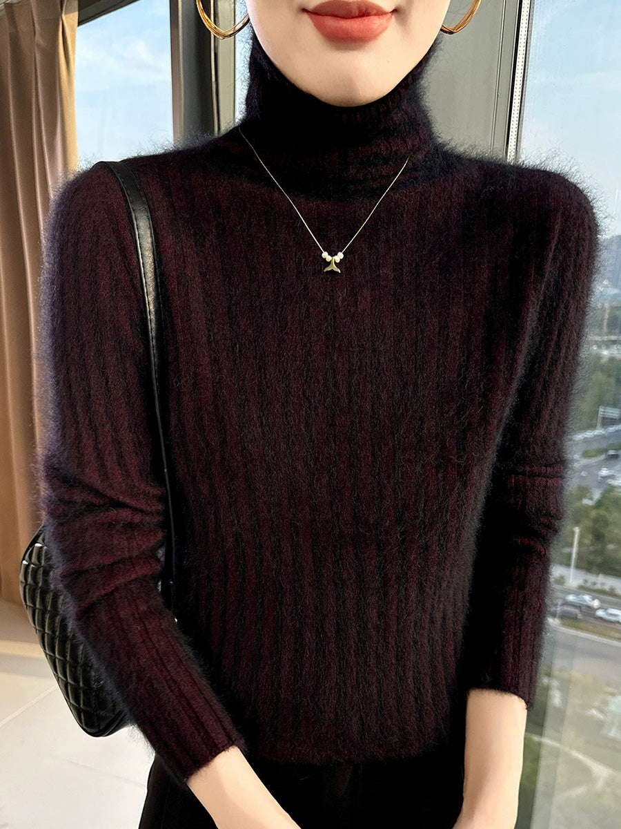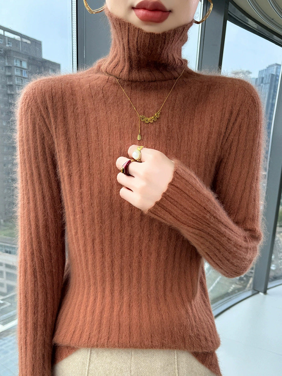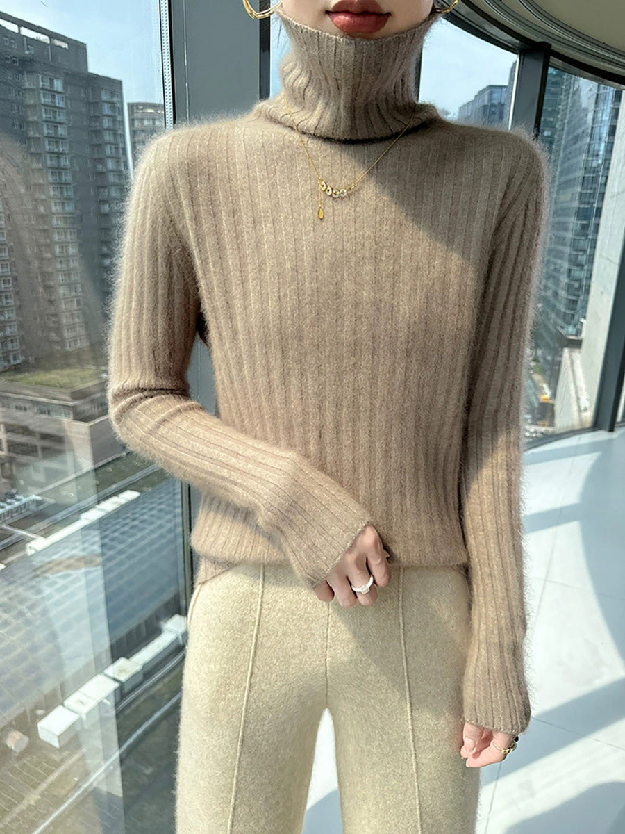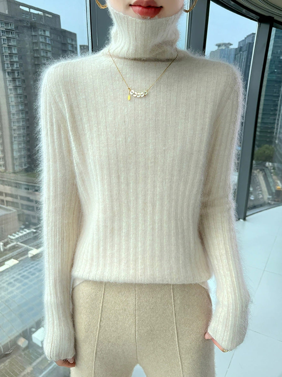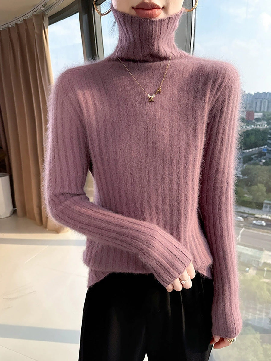 Women Winter Casual Turtleneck Pure Color Knitted Sweater