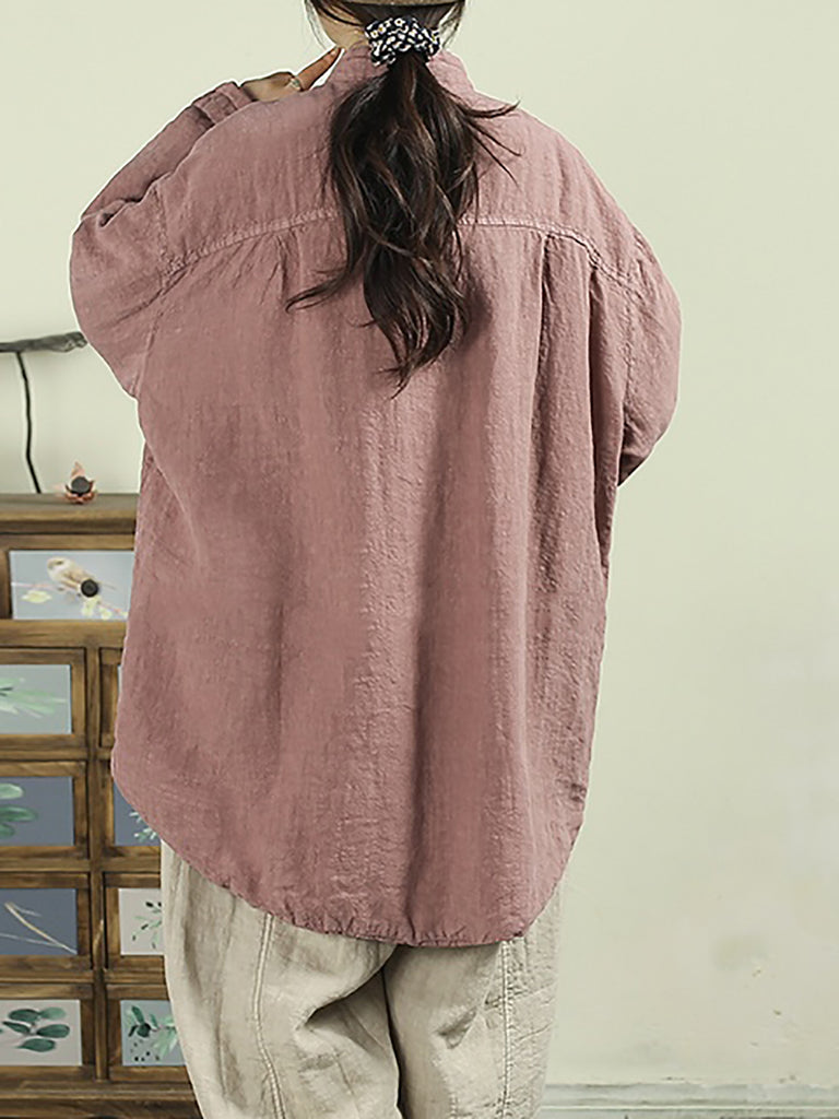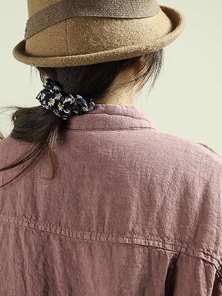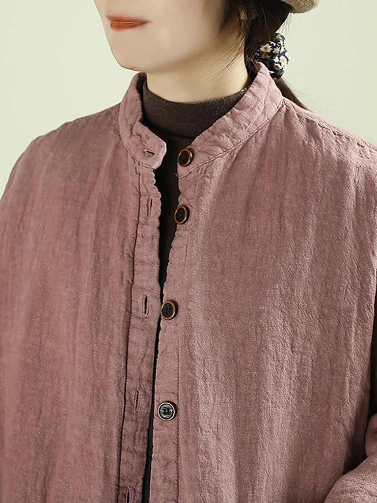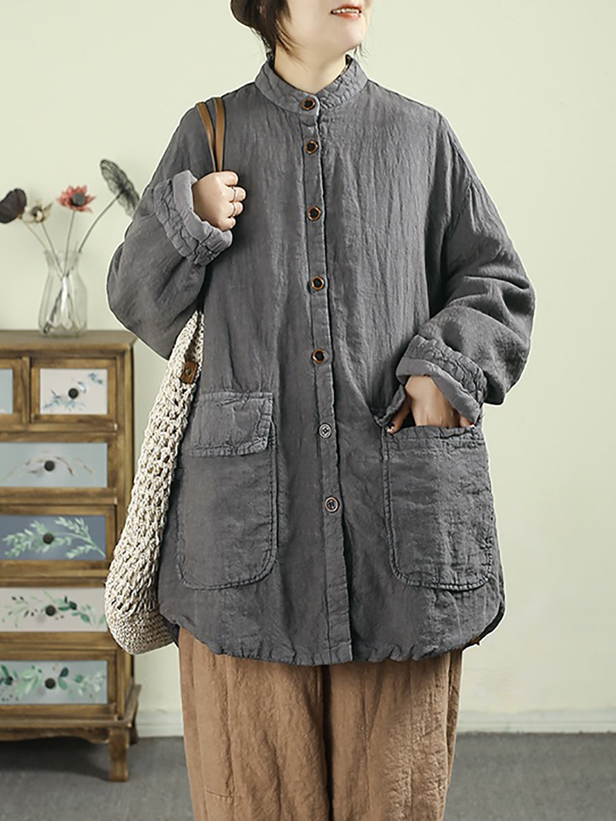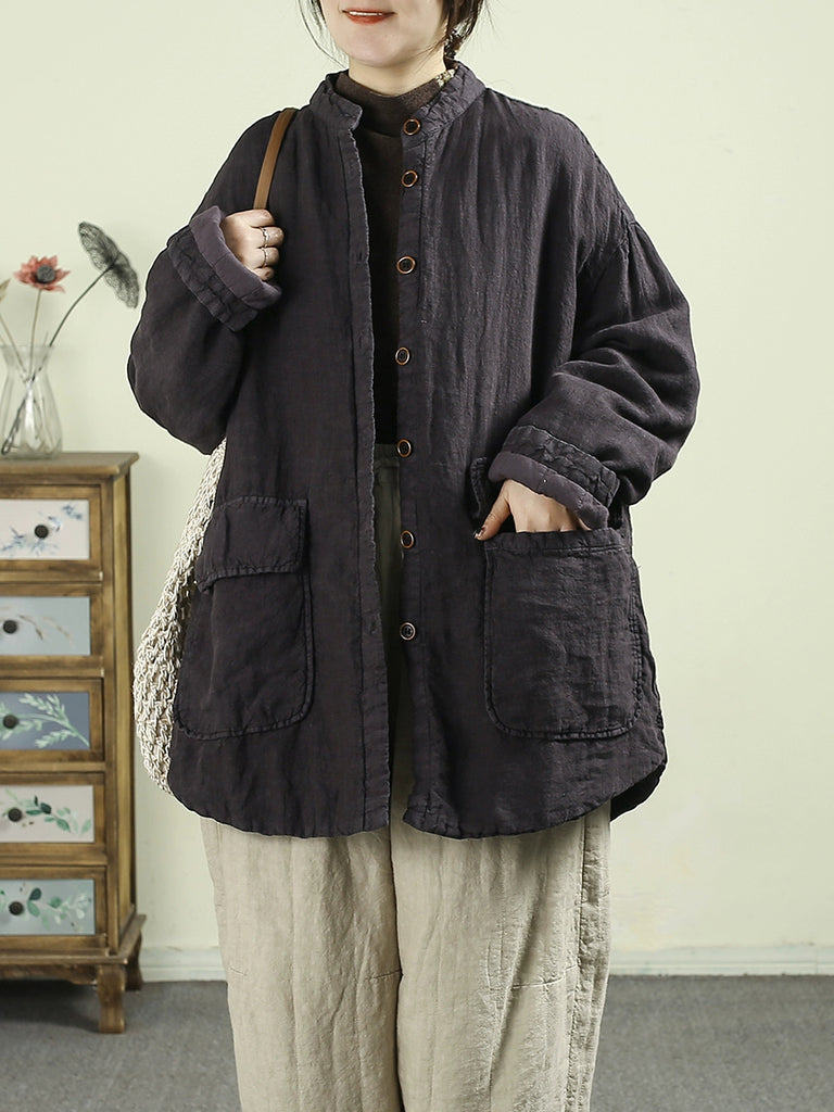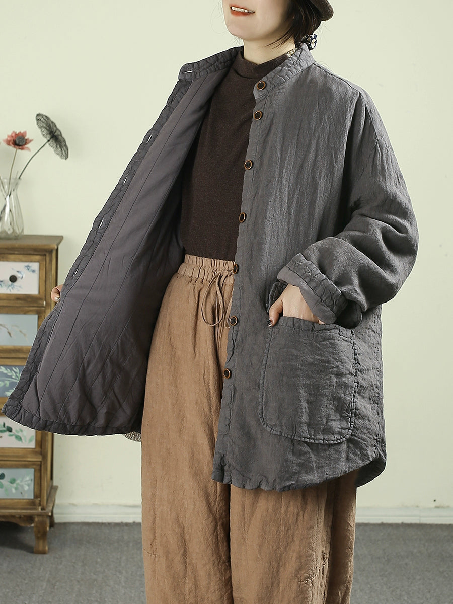 Women Winter Ethnic Pure Color 100%Linen Padded Coat