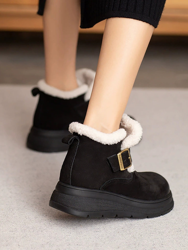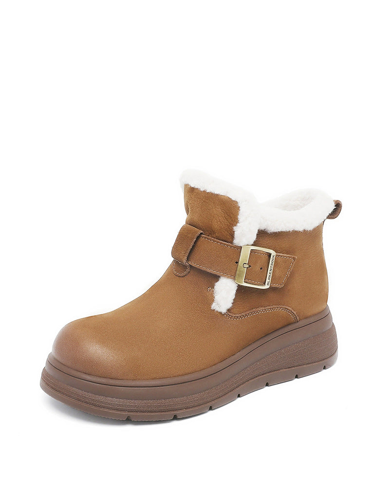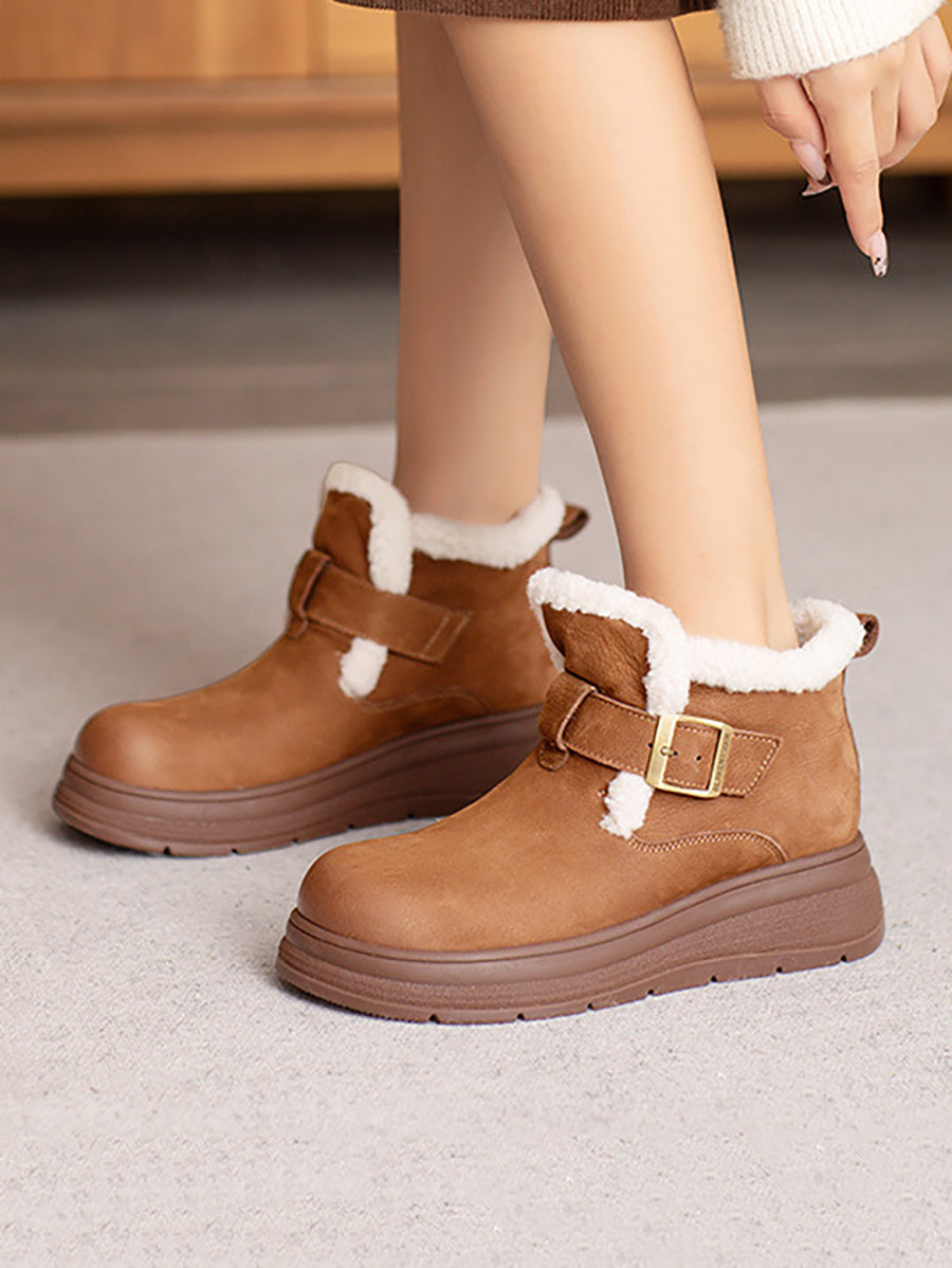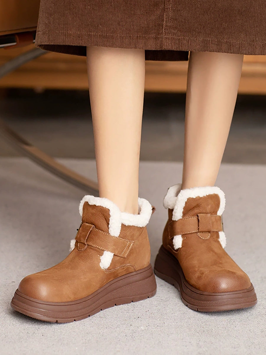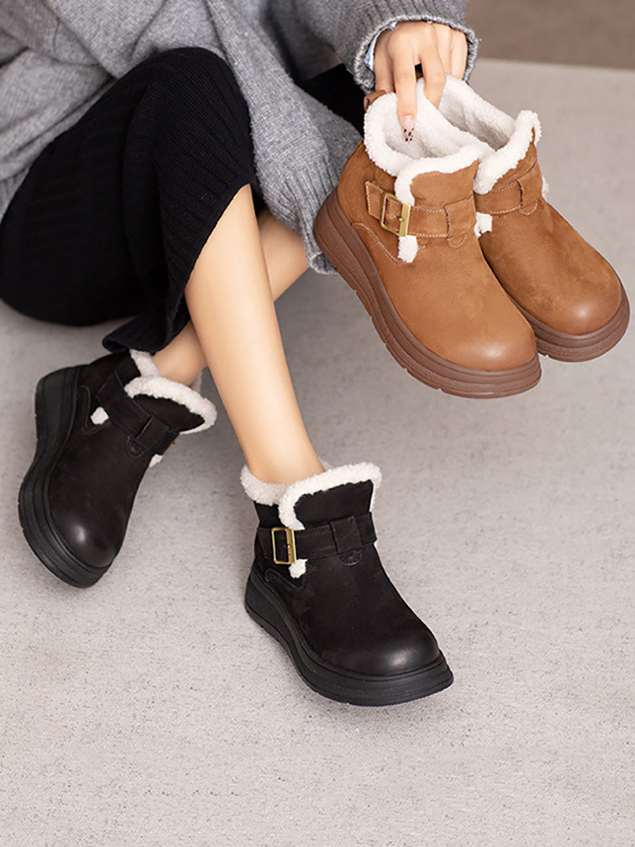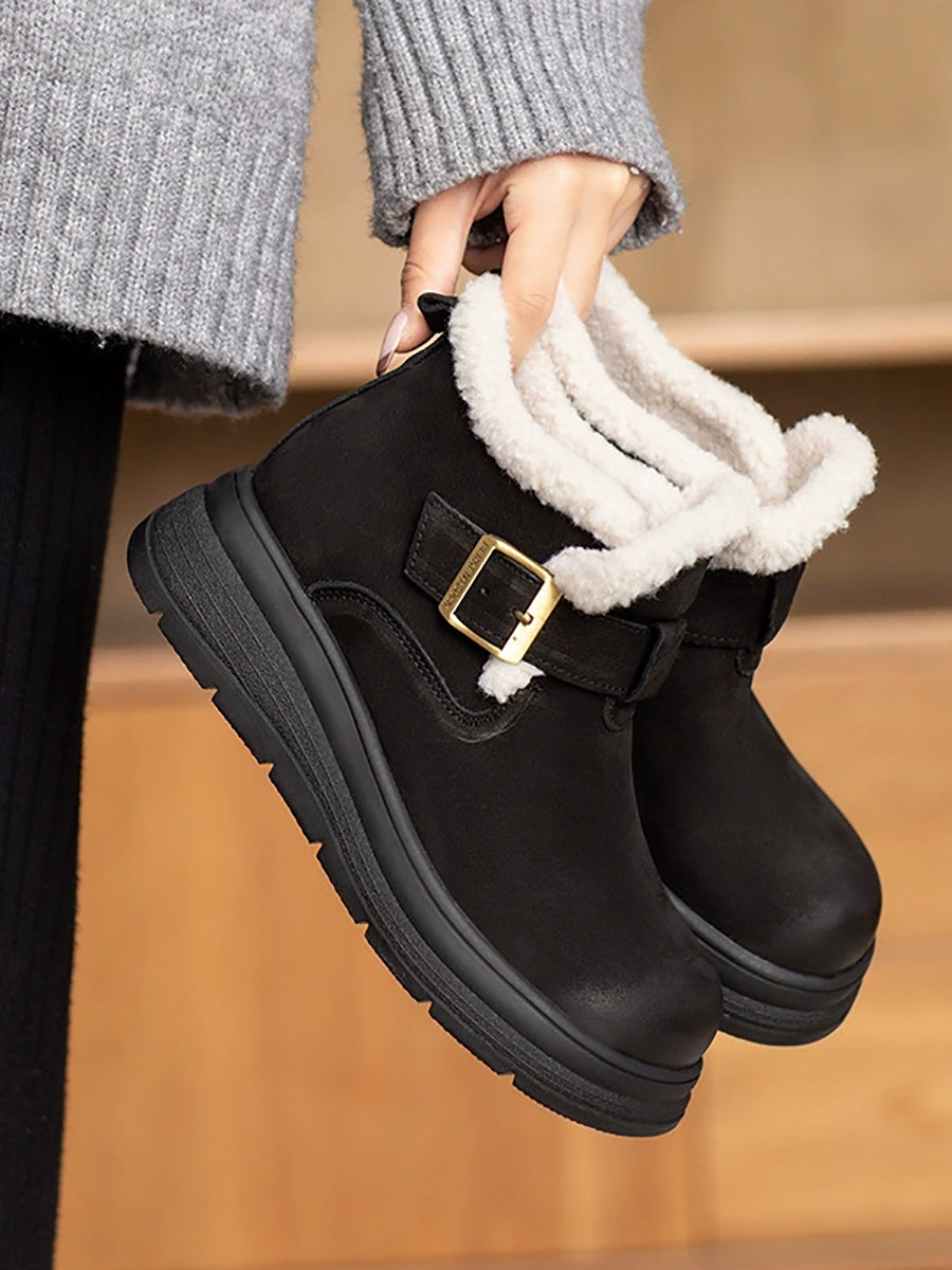 Women Winter Genuine Leather Fleece-lined Boots