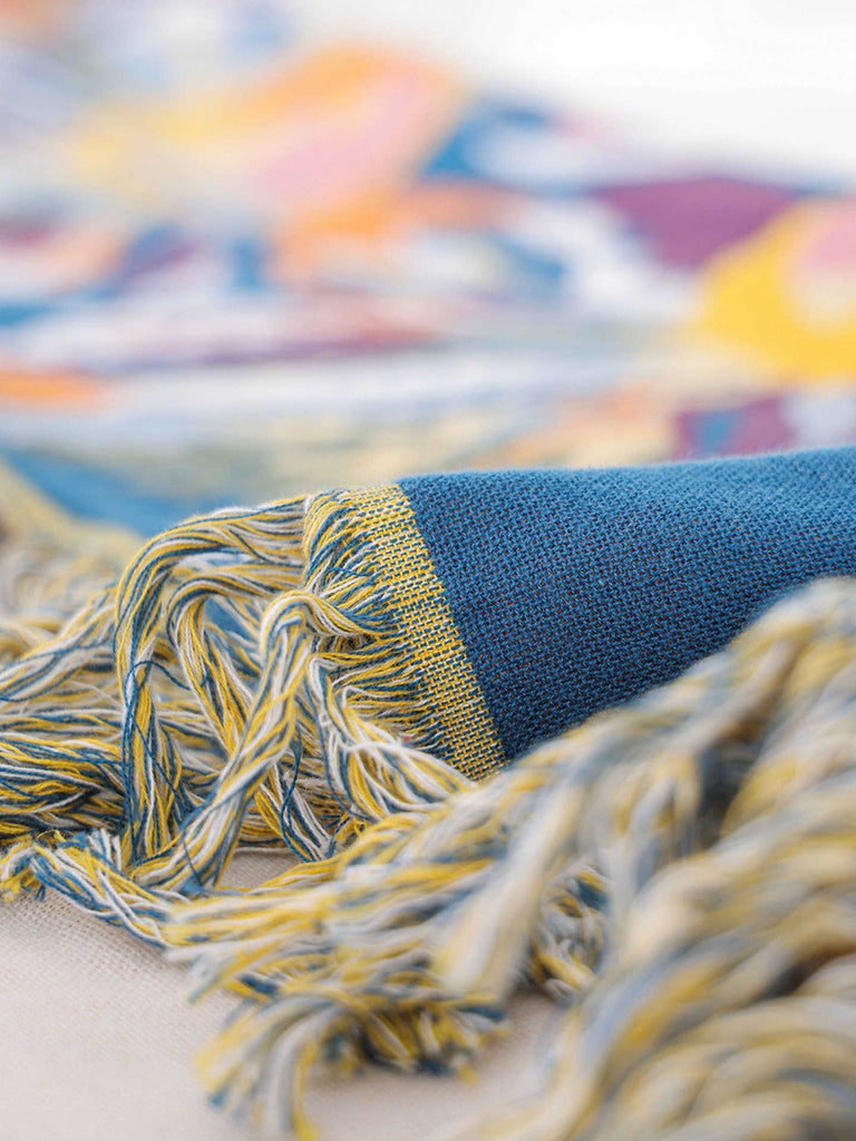 שמיכת ספה עם ציצית פרחונית 100% כותנה