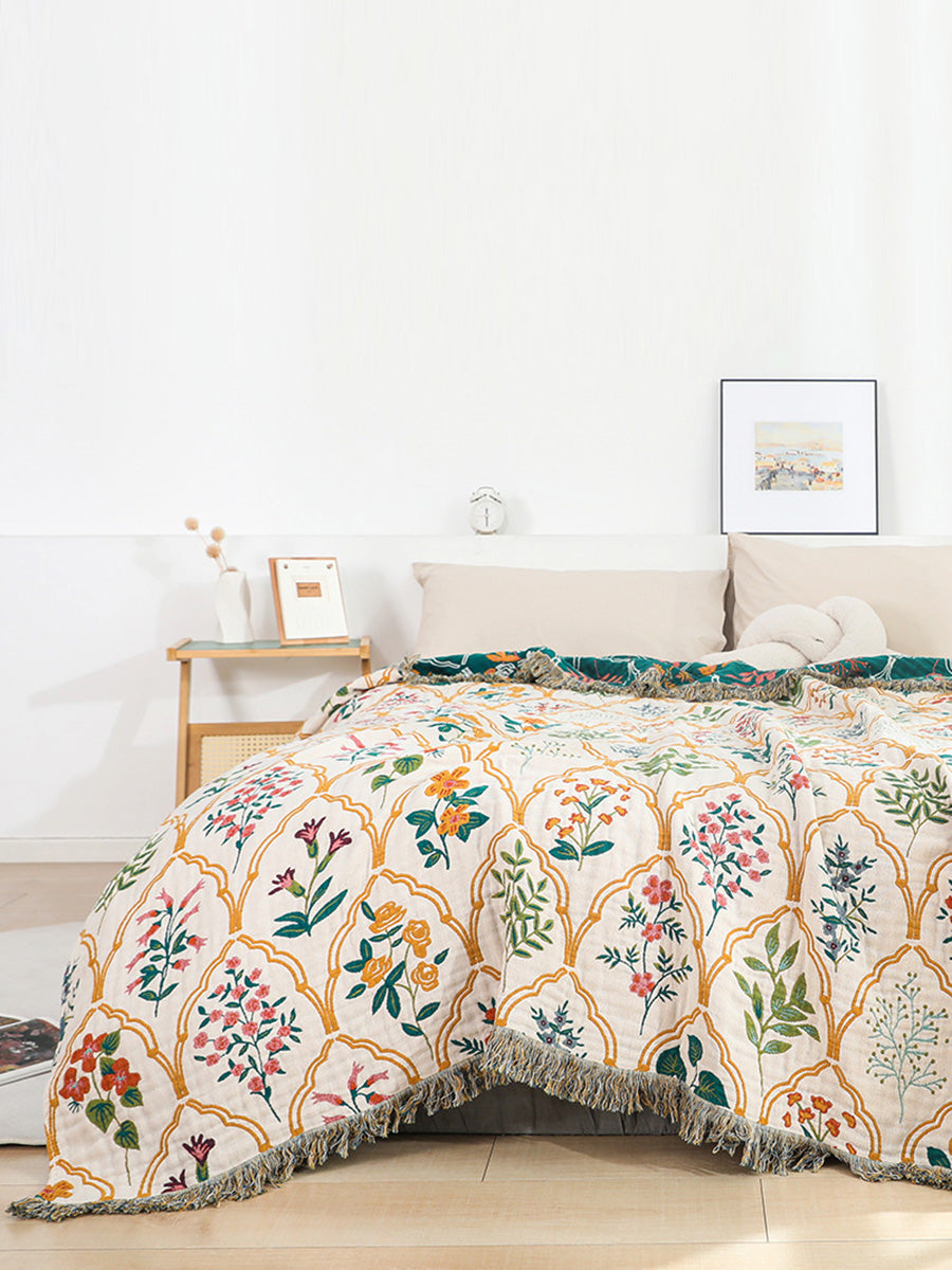 100% כותנה כיסוי מיטה קווין פרח ציצית שמיכת ספה