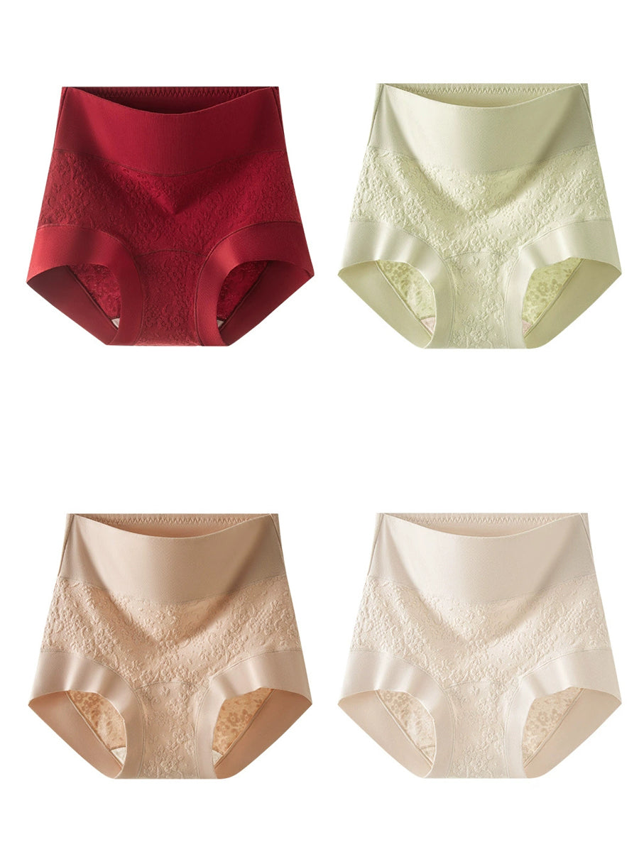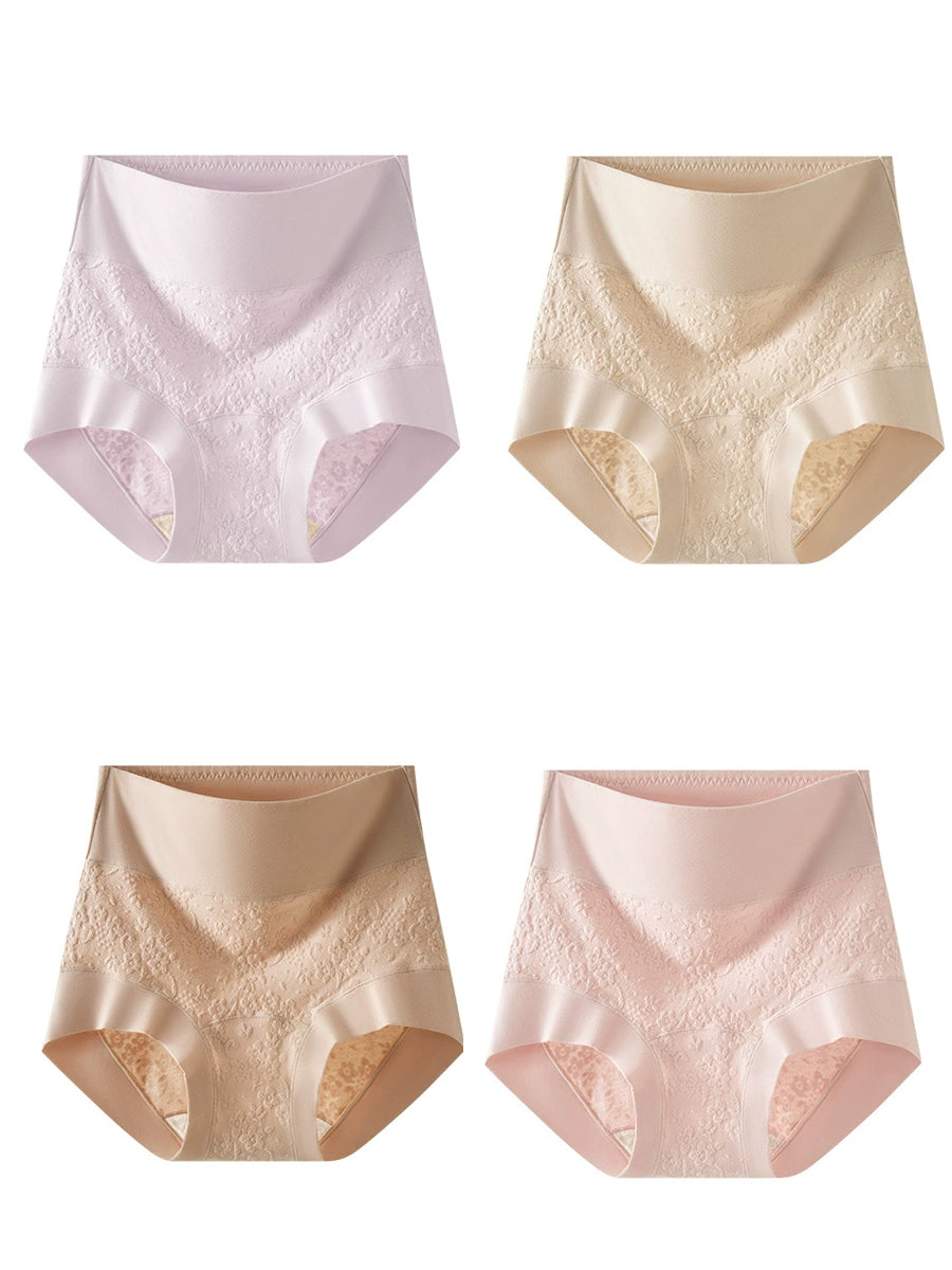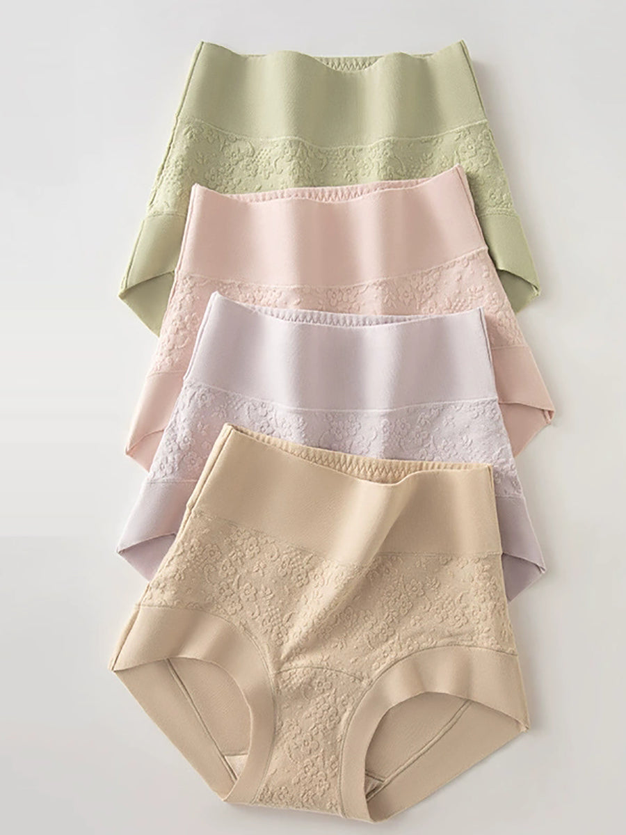 4 חלקים תחתונים גבוהים עם הבלטת פרחים אומנותית לנשים