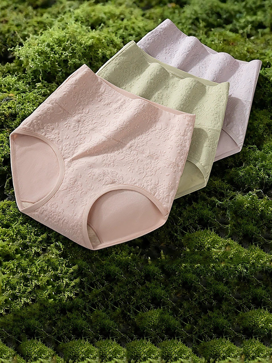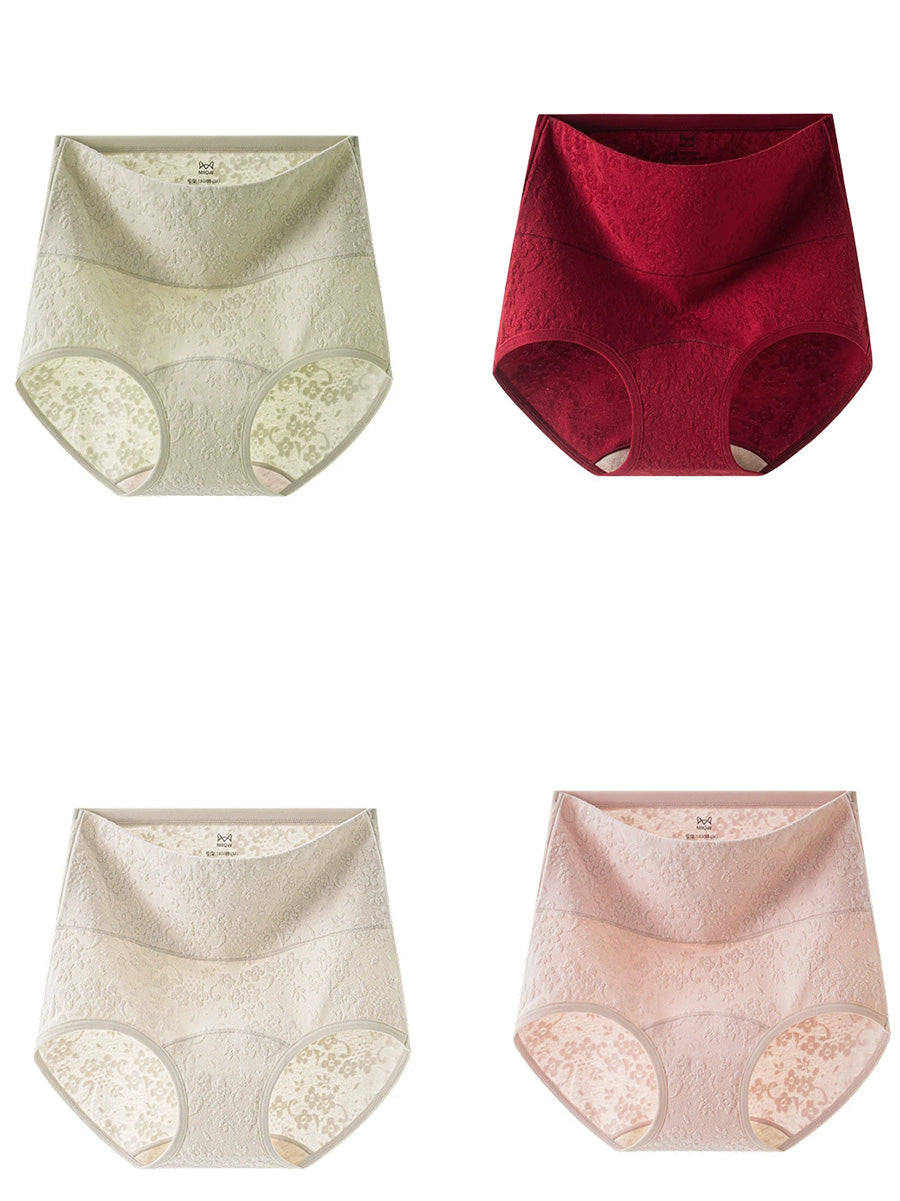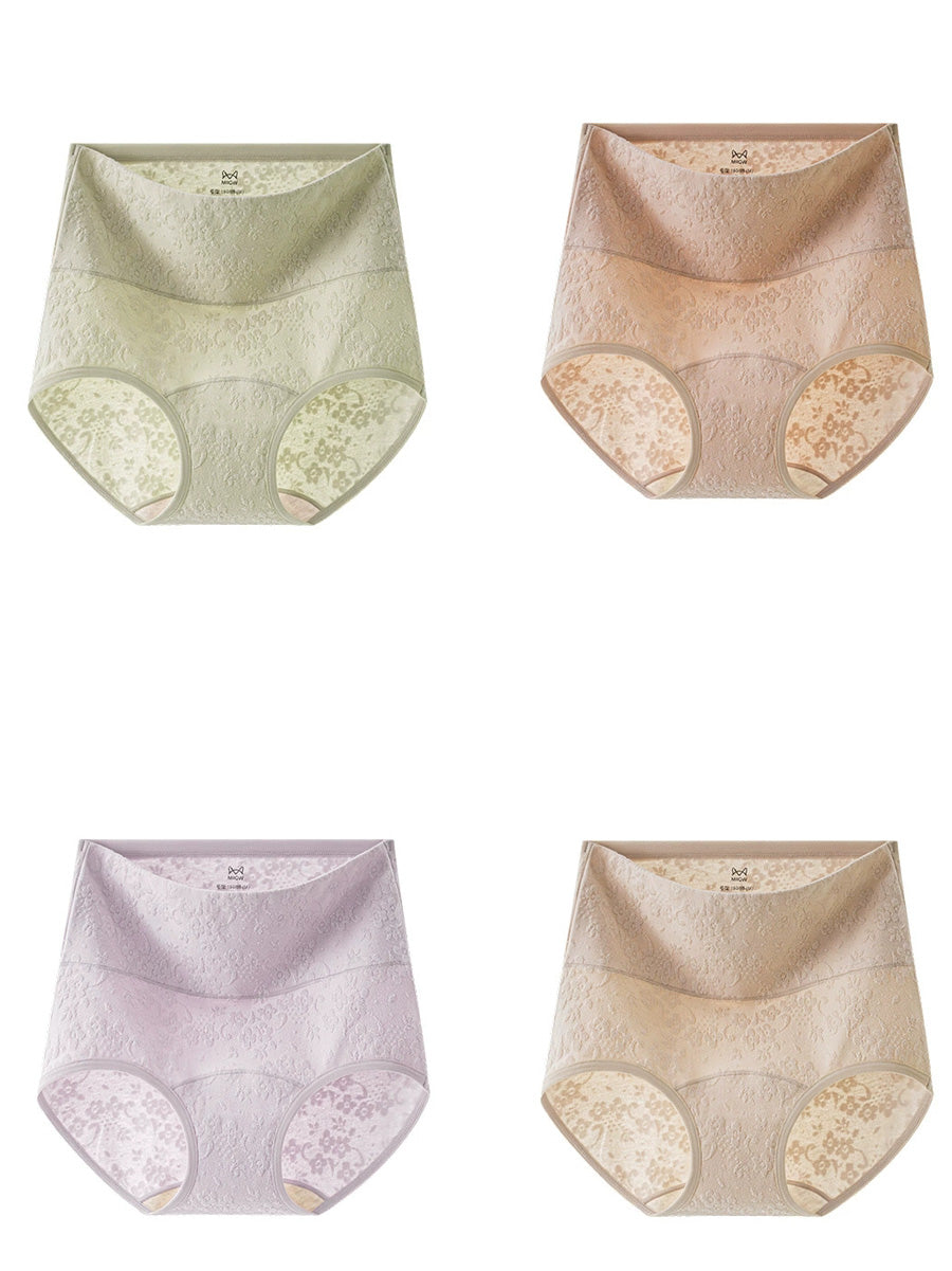 4 חלקים תחתונים גבוהים עם הבלטת פרחים אומנותית לנשים