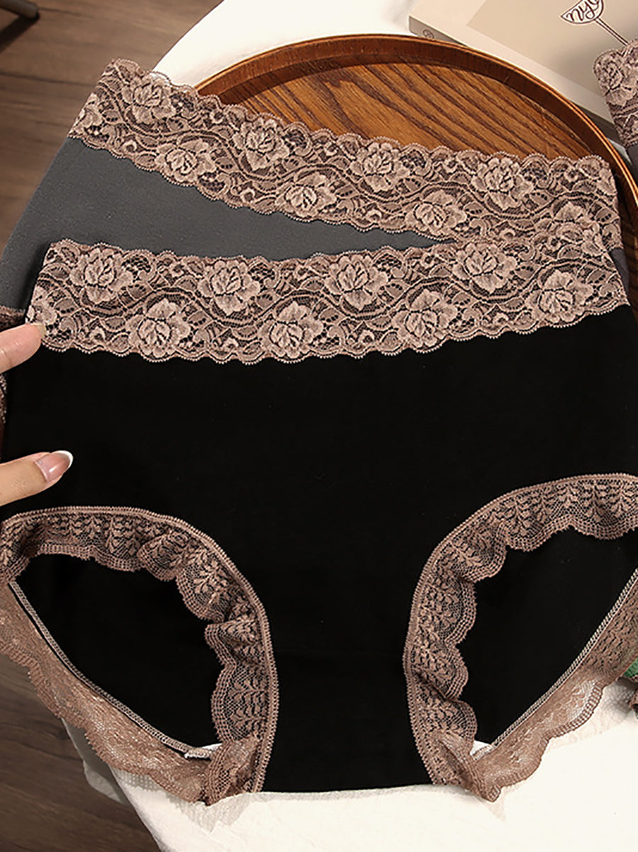 4 חלקים תחתונים גבוהים עם תחרה אמנותית לנשים