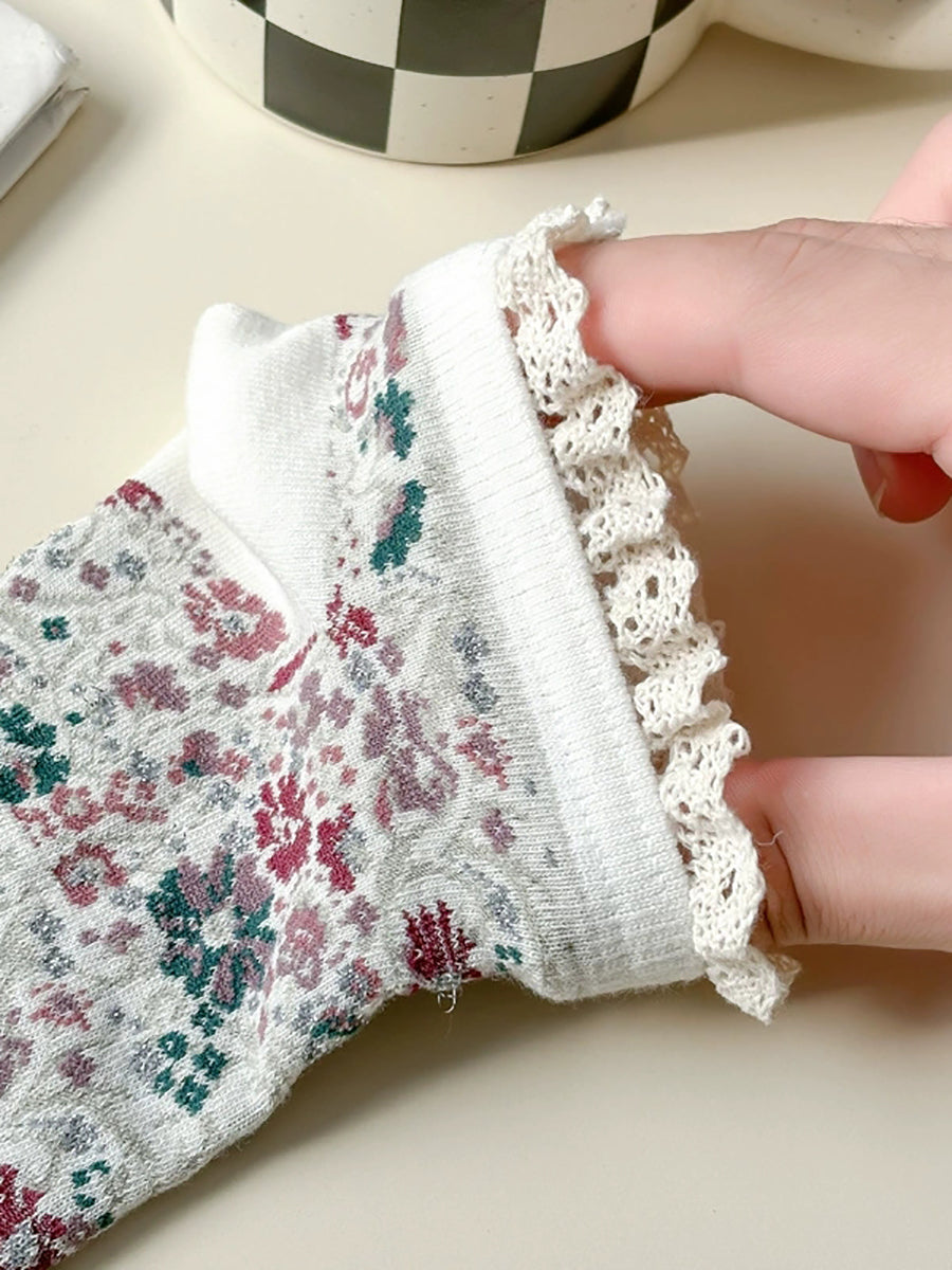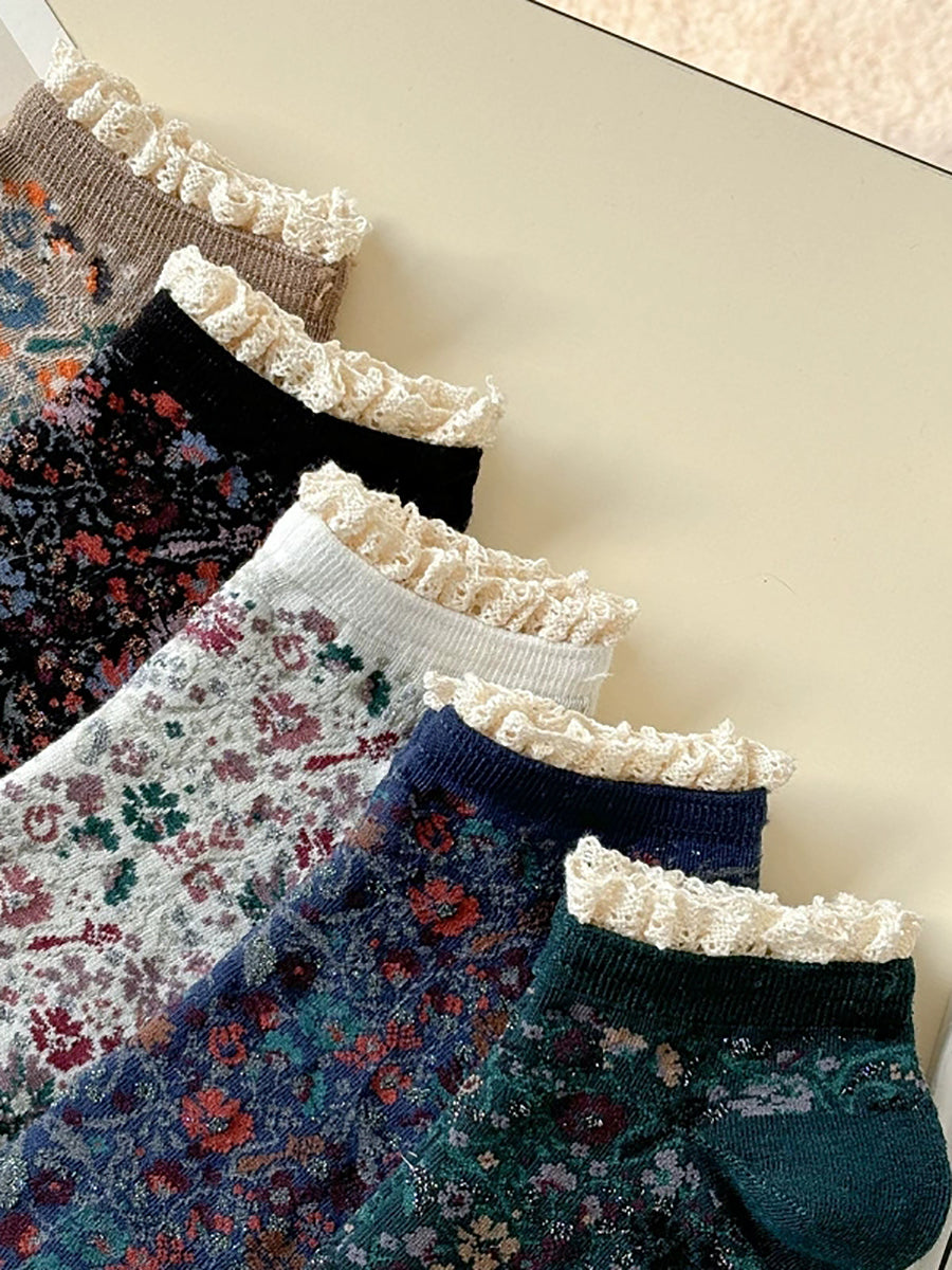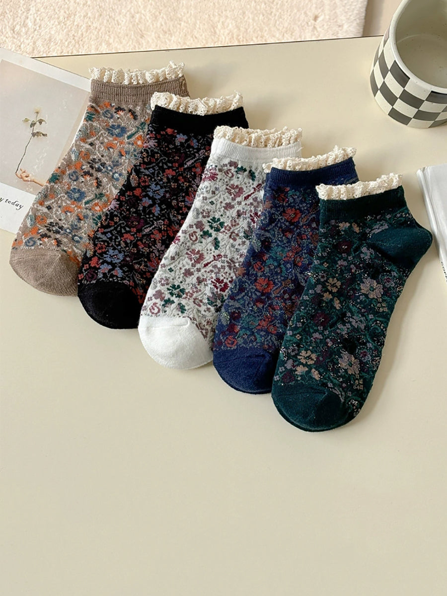 5 זוגות גרביים אומנותיות עם תחרה פרחונית ושילוב תחרה לנשים