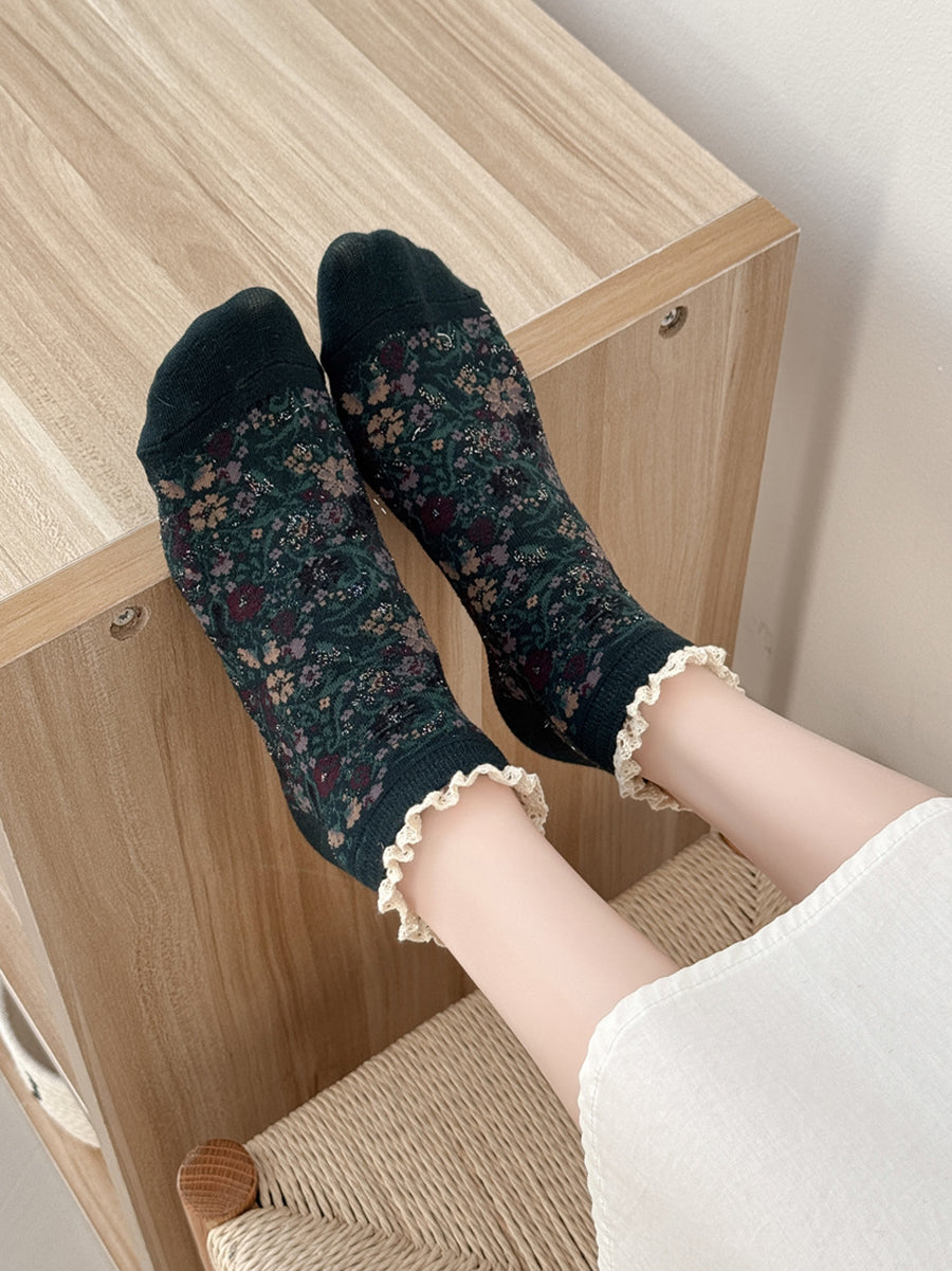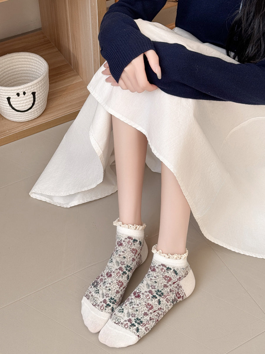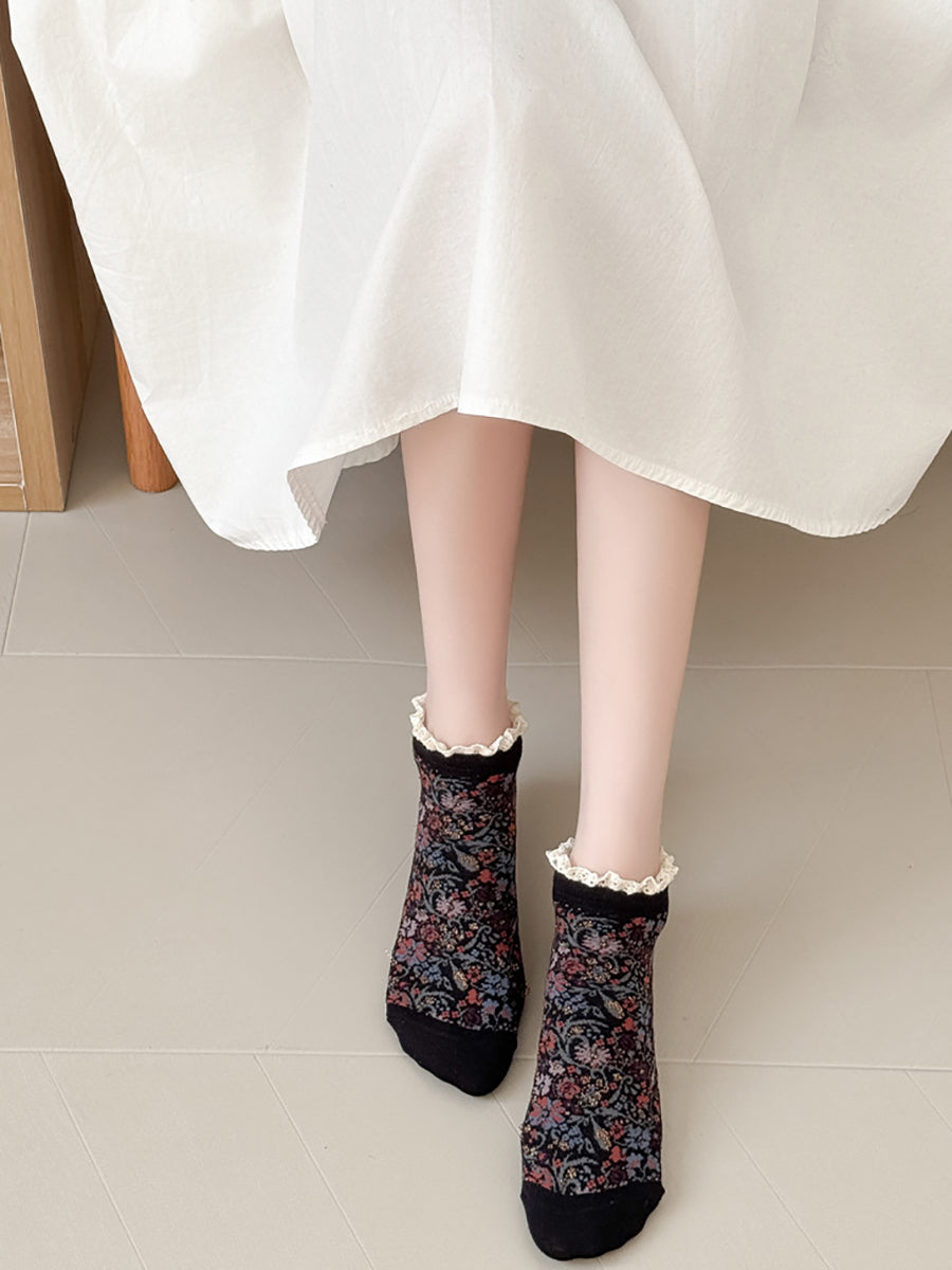 5 זוגות גרביים אומנותיות עם תחרה פרחונית ושילוב תחרה לנשים