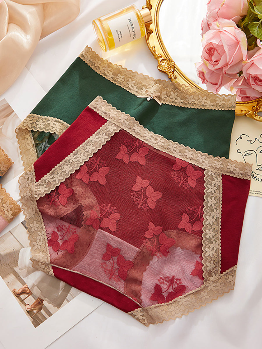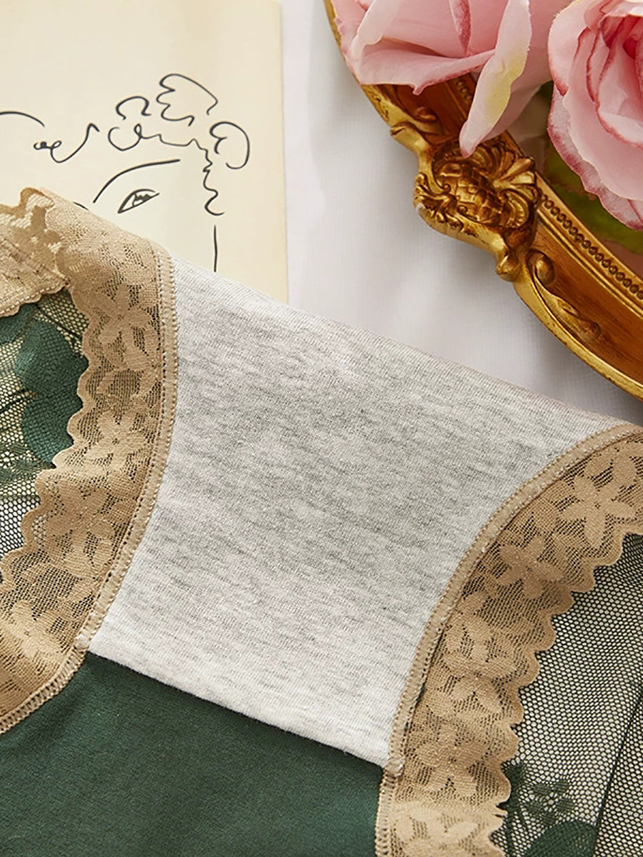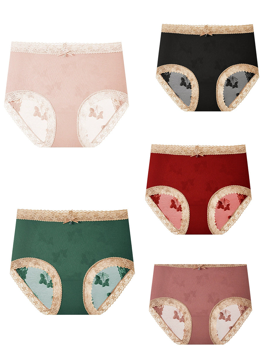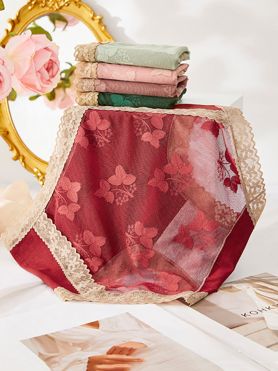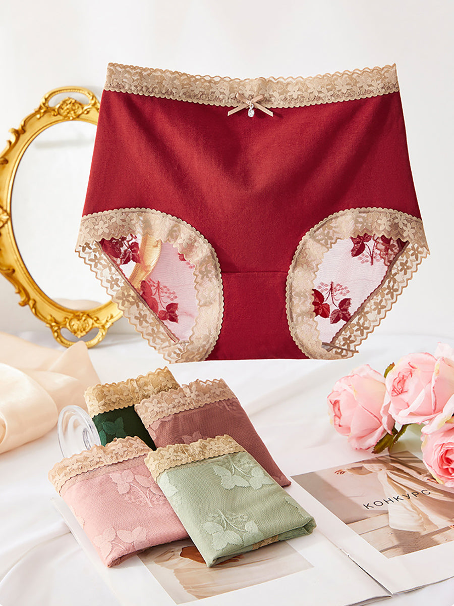 5 חתיכות נשים תחתונים גבוהים עם תחרה פרחונית