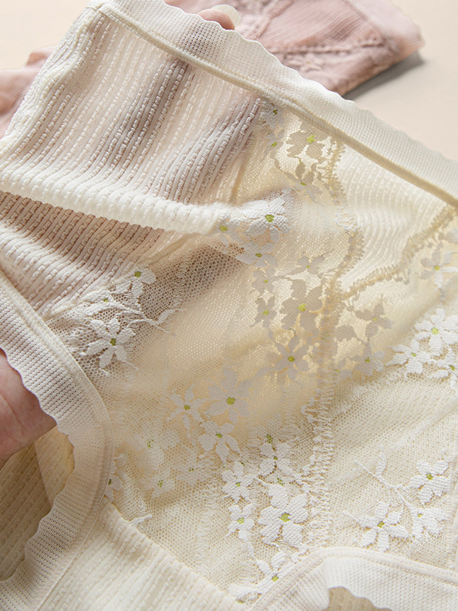 5 חלקים תחתוני תחרה בצבע טהור לנשים במותן גבוה