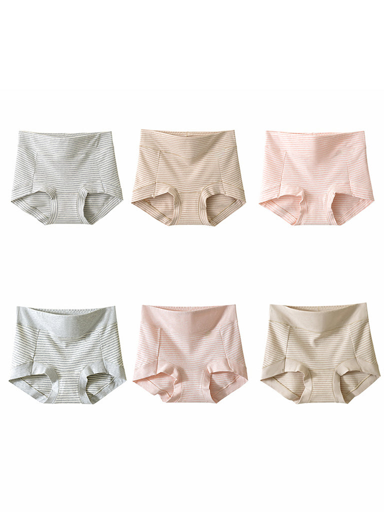 6 חלקים תחתוני כותנה לנשים בגזרה גבוהה עם פסים מזדמנים