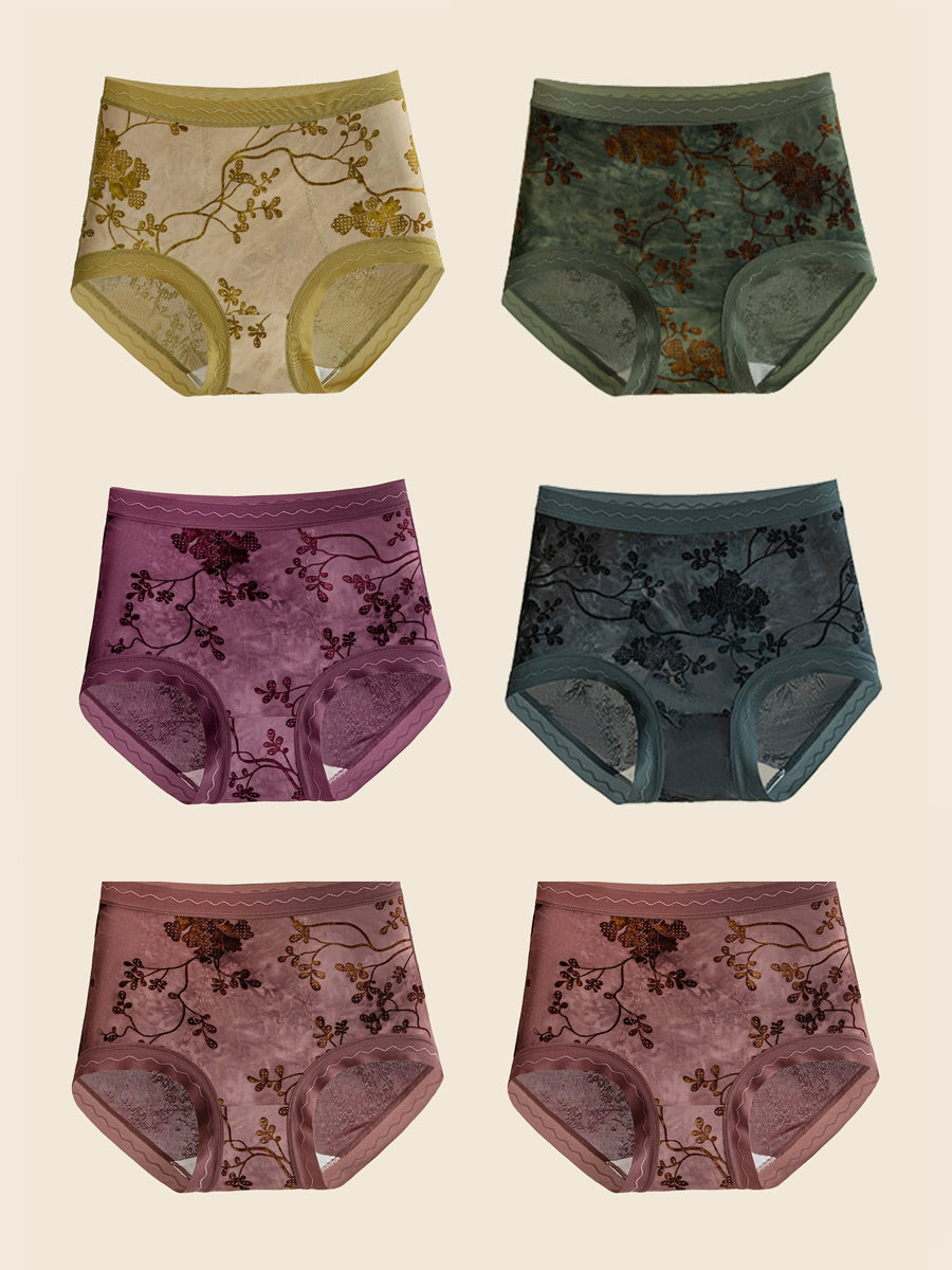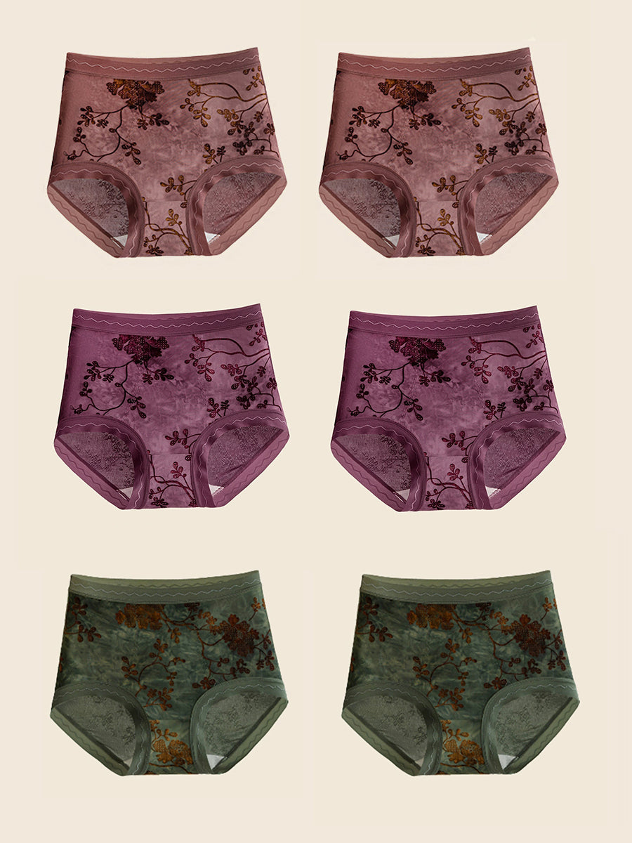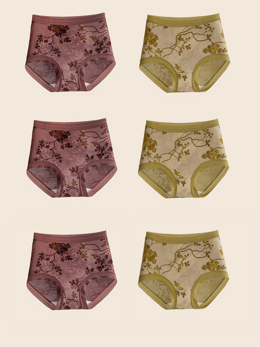 6 חלקים תחתונים גבוהים בגזרת אקארד פרחונית לנשים