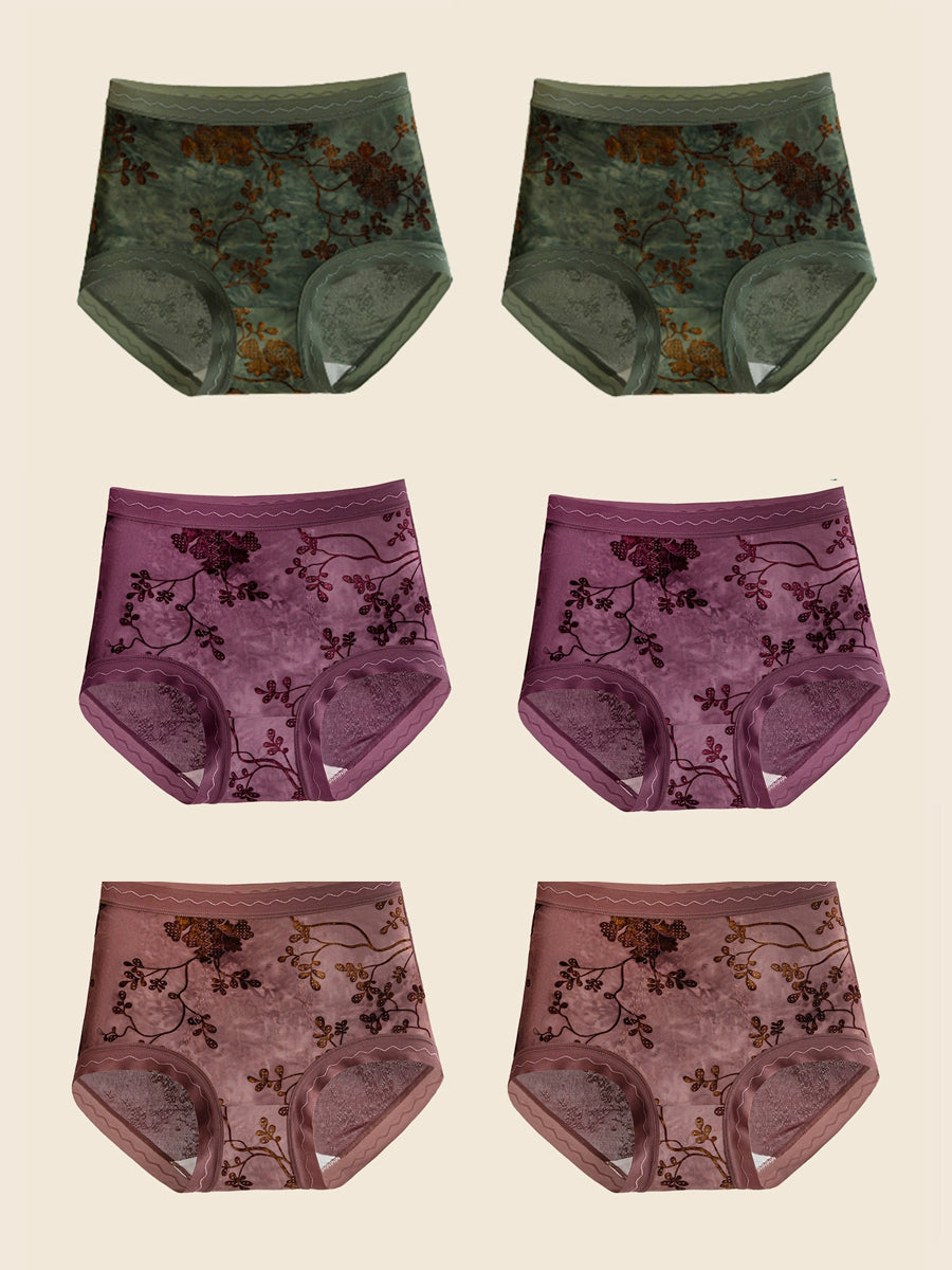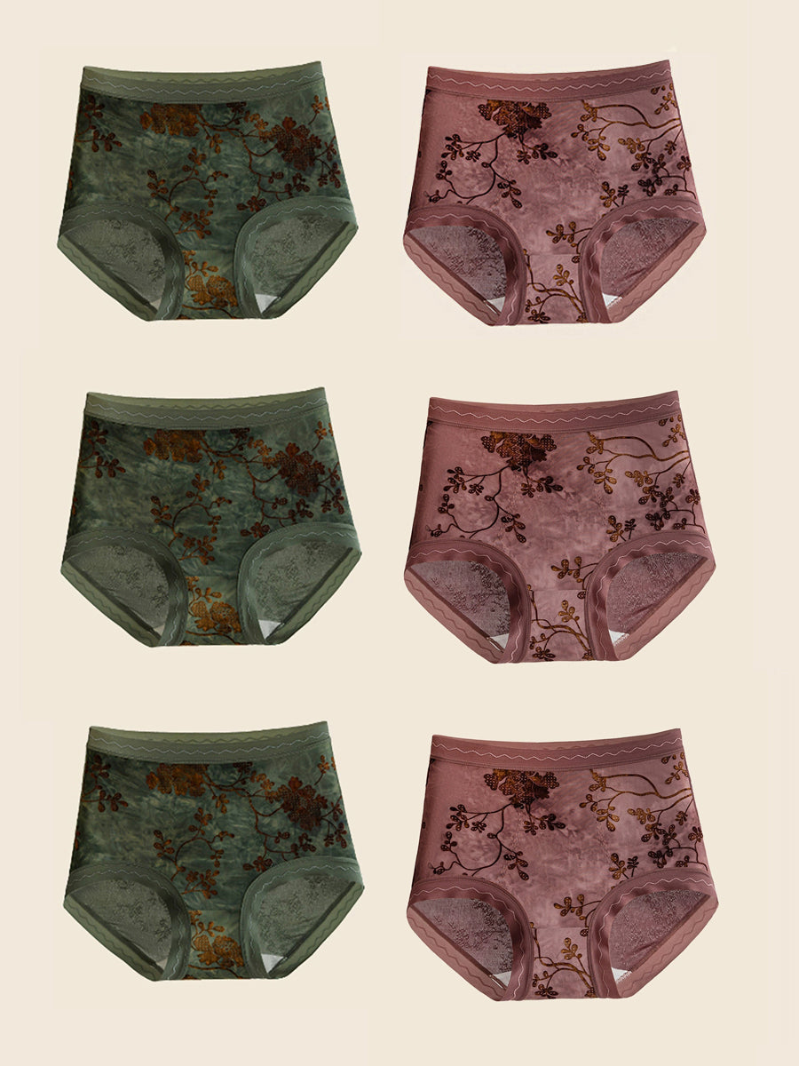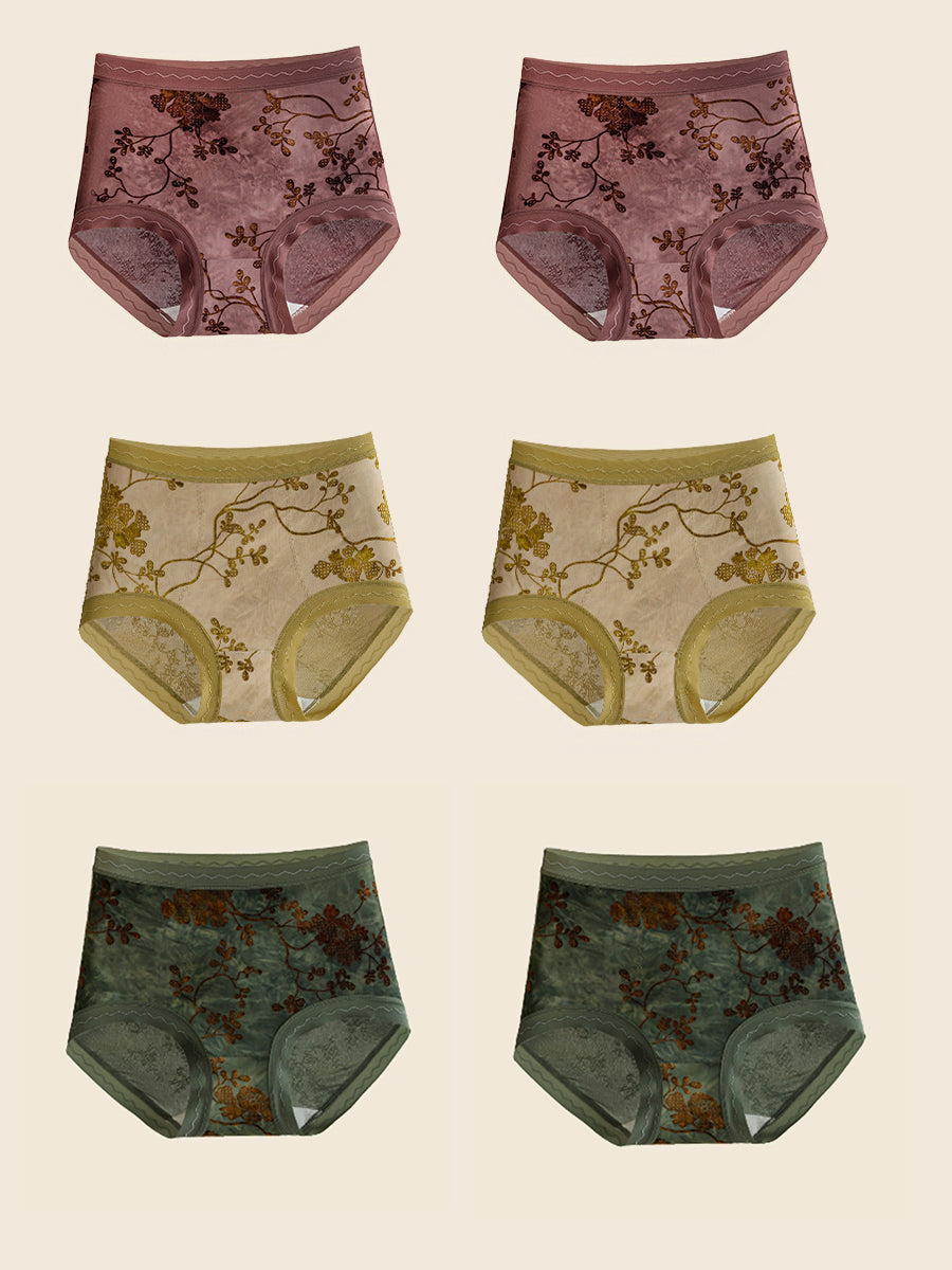 6 חלקים תחתונים גבוהים בגזרת אקארד פרחונית לנשים