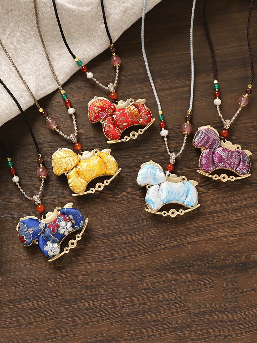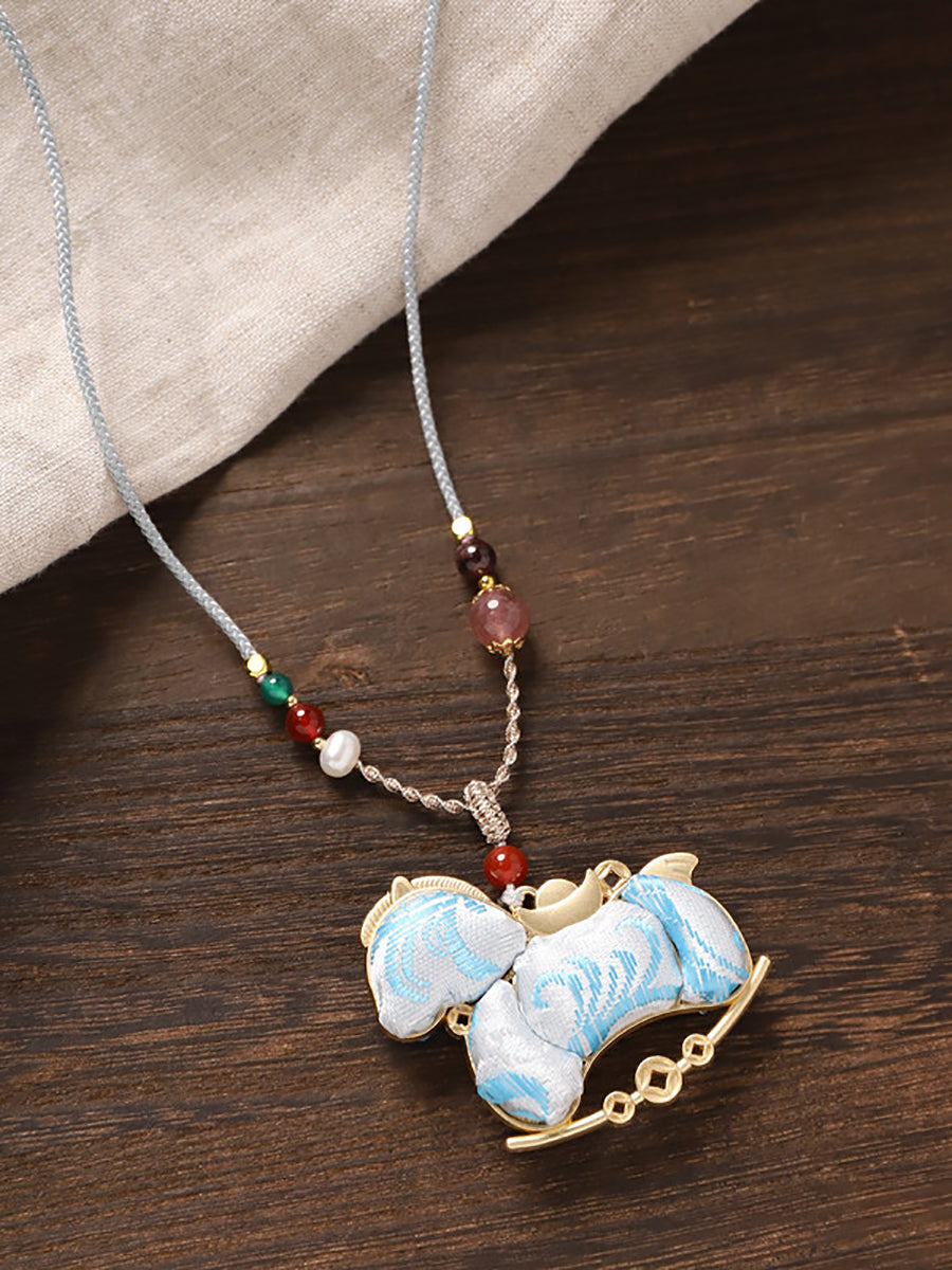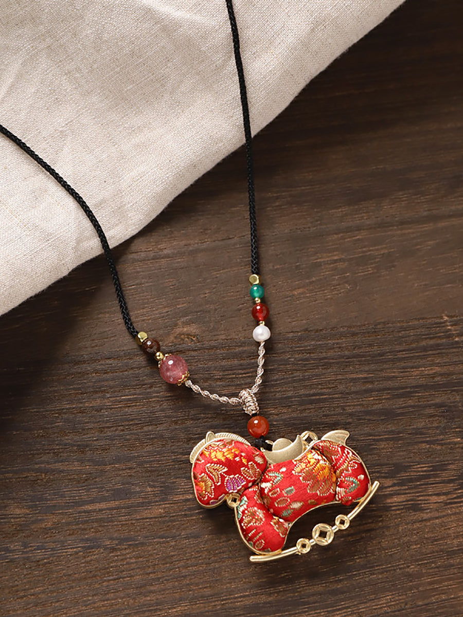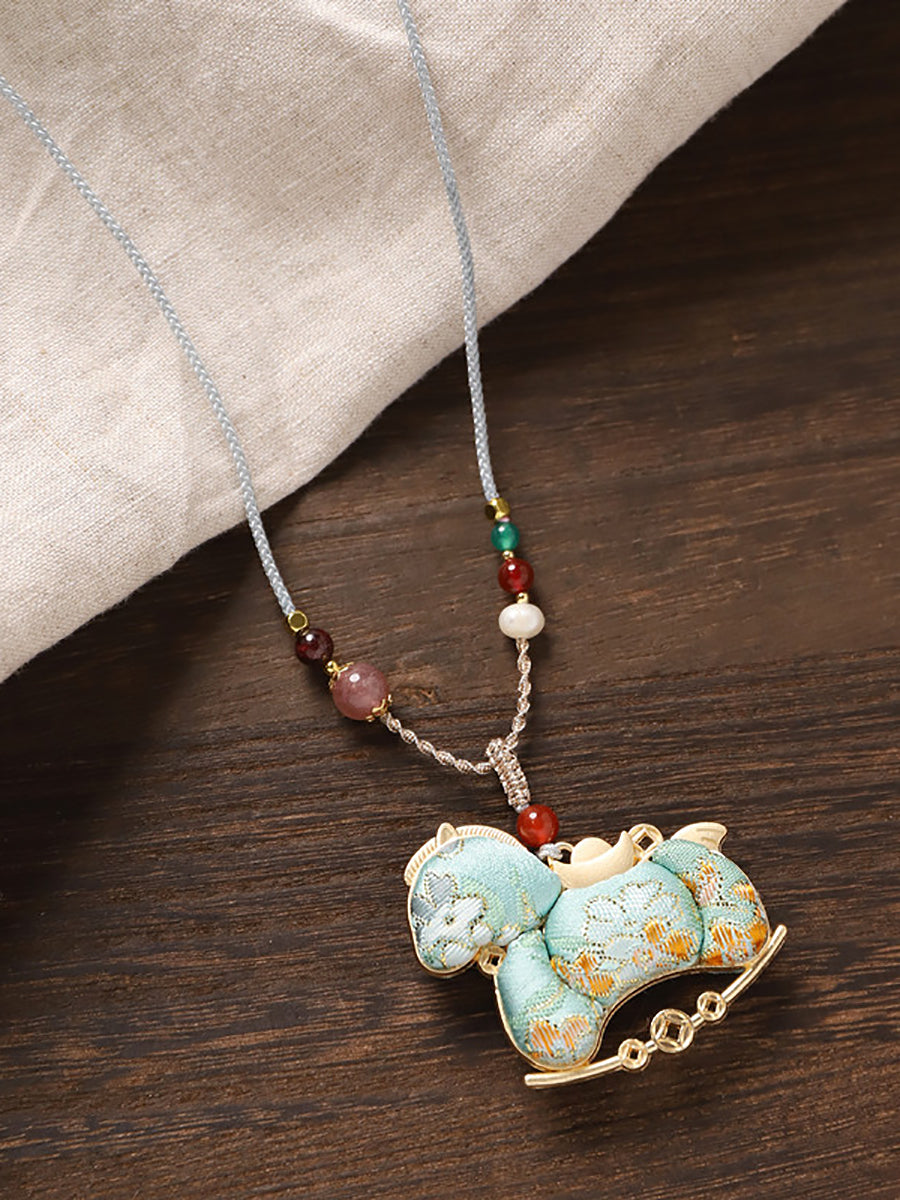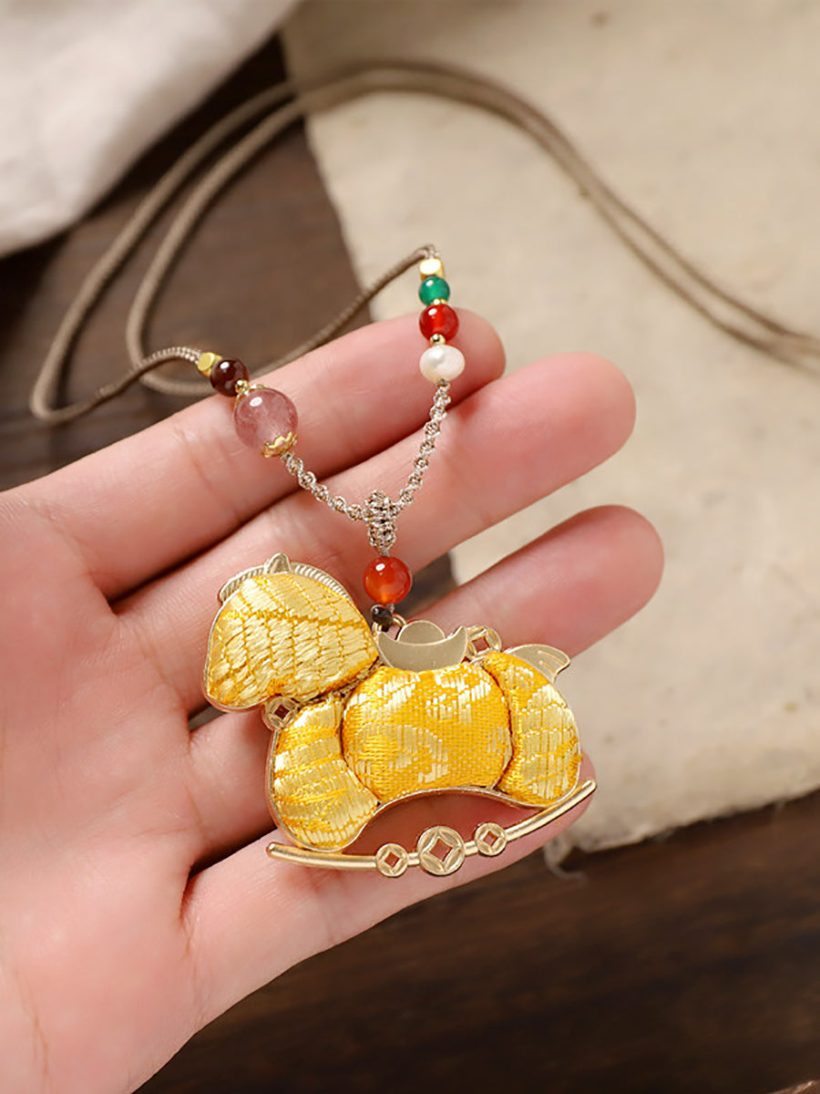שרשרת ארוכה עם תליון סוסים דו-צדדי מברוקאד אתני