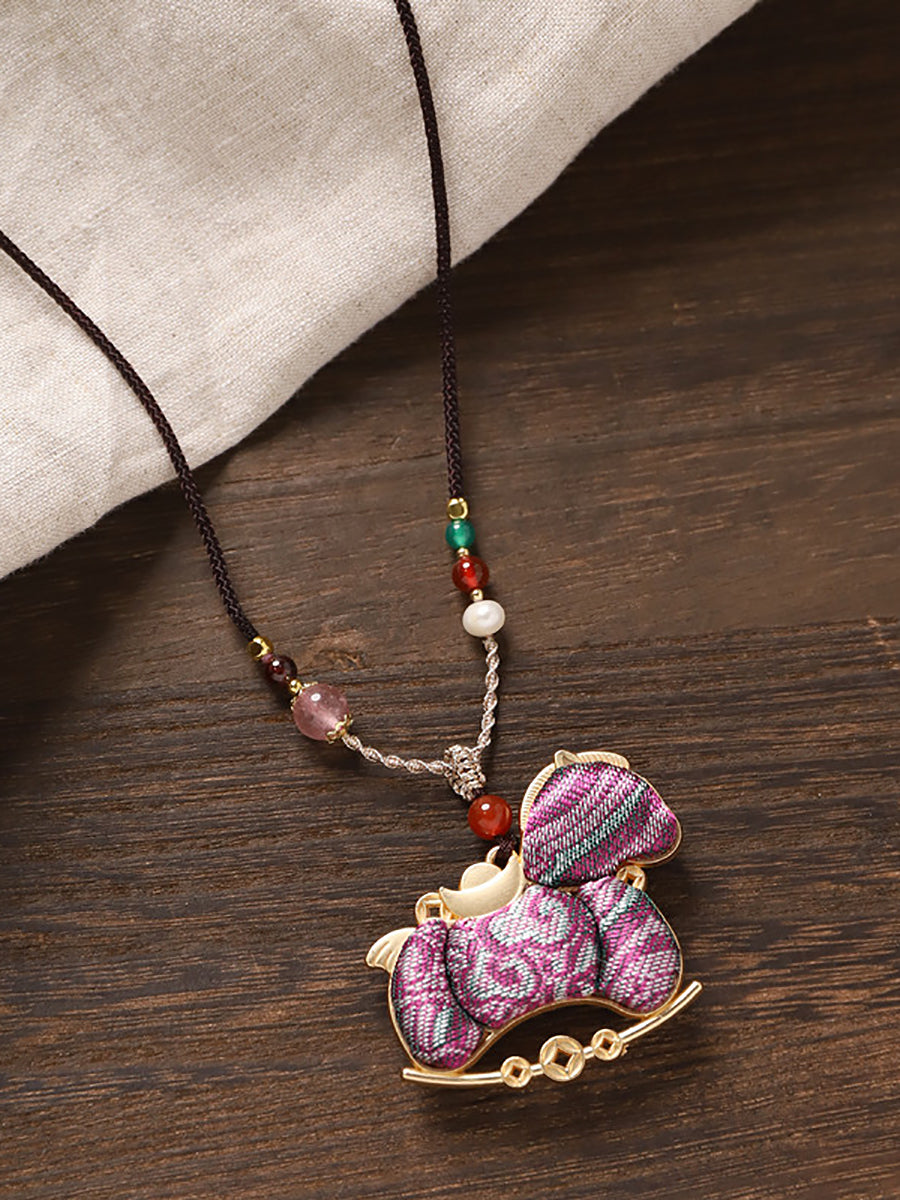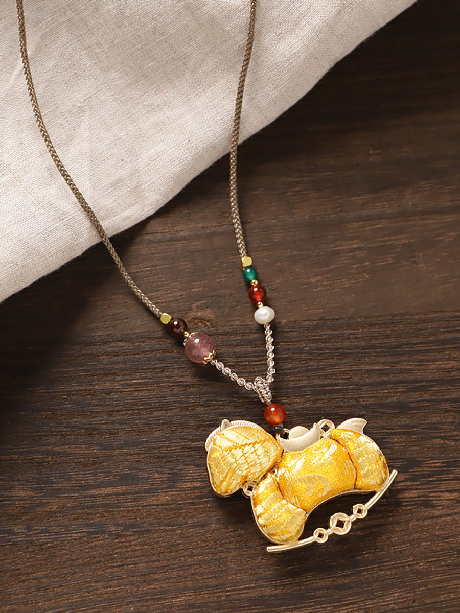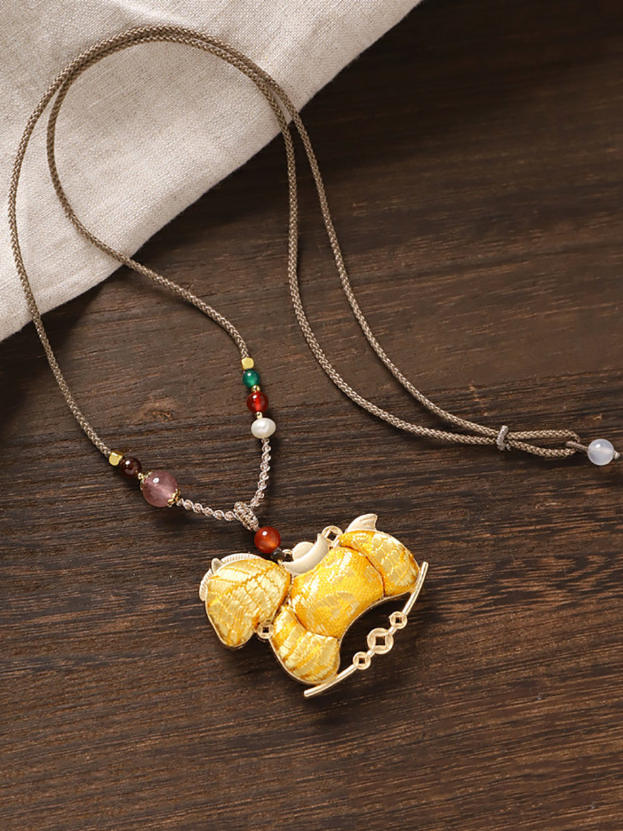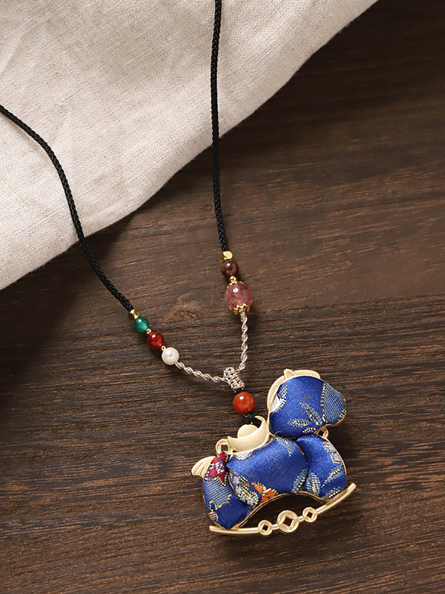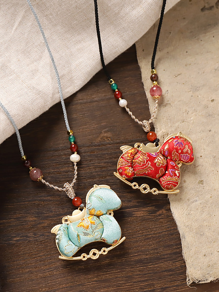 שרשרת ארוכה עם תליון סוסים דו-צדדי מברוקאד אתני