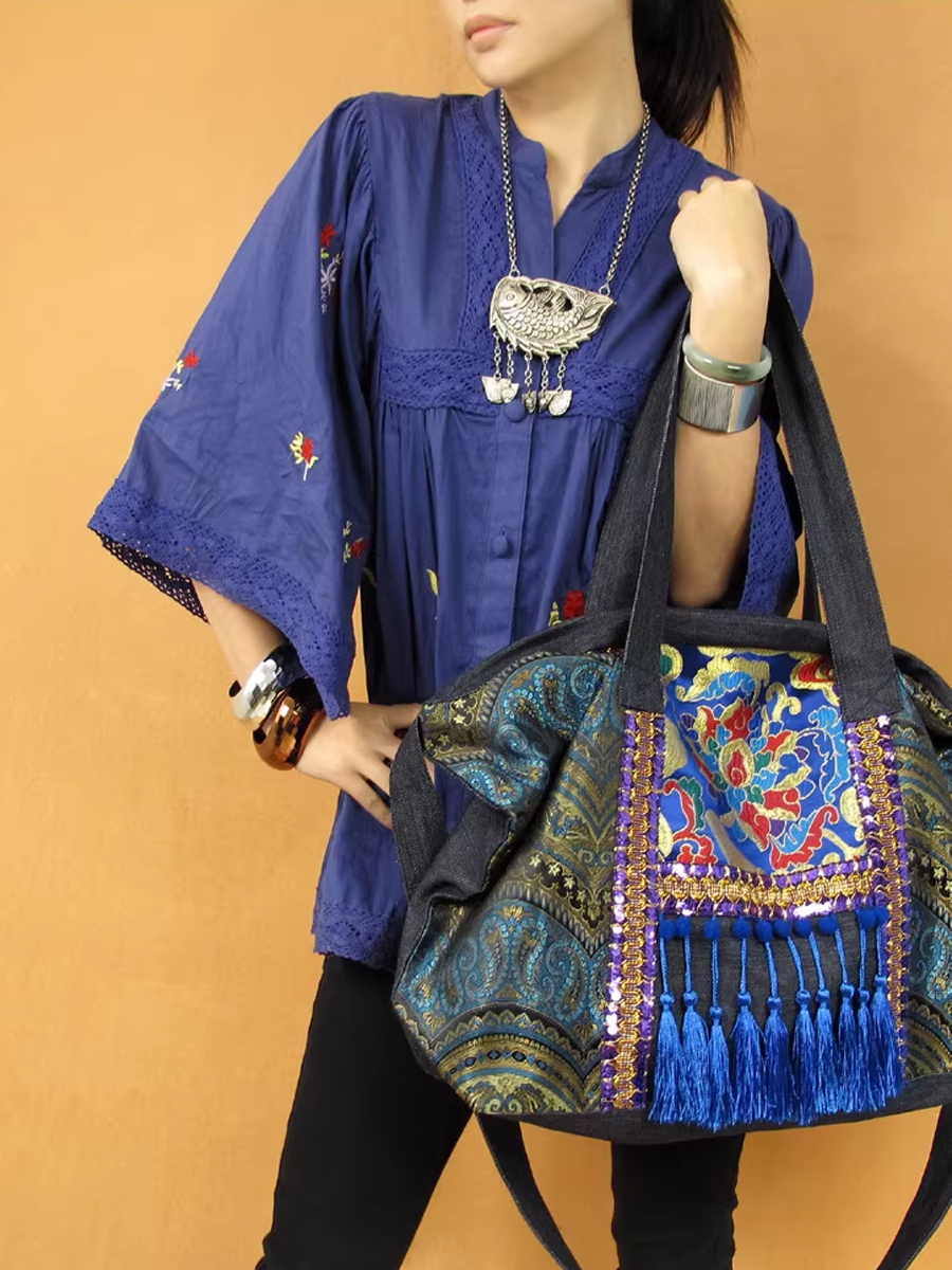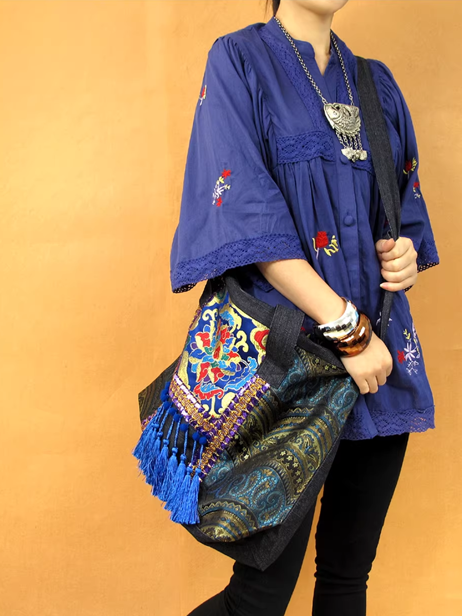 תיק כתף עם גדילים רקומים אתניים