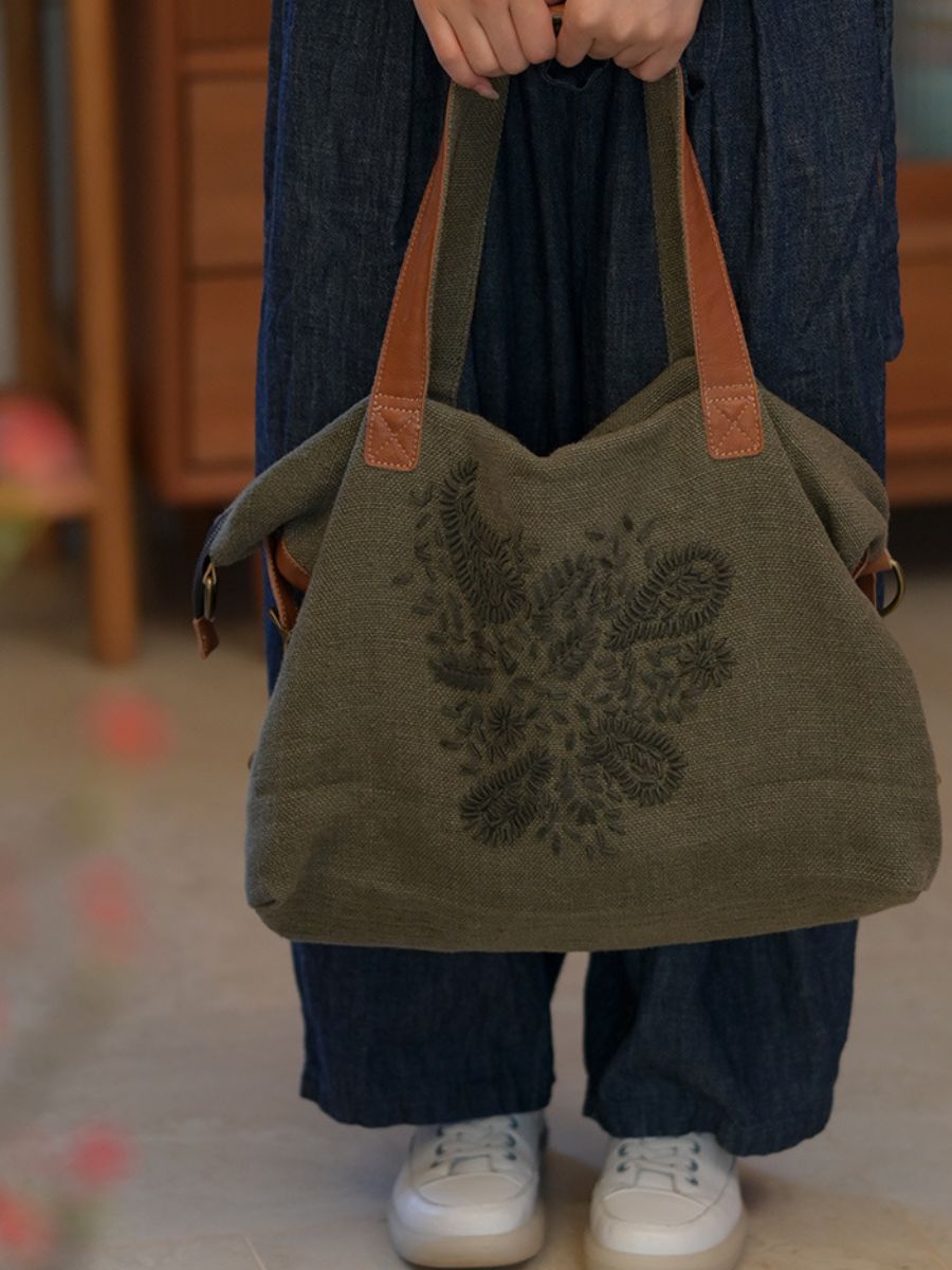03022 תיק כתף רקום וינטג' מכותנה-פשתן