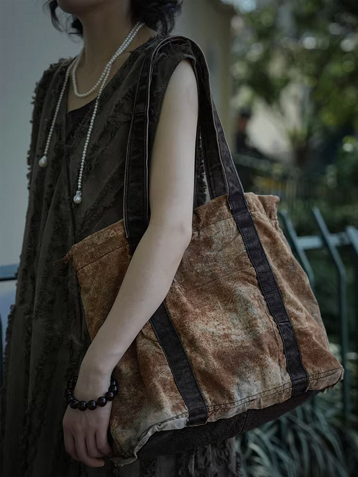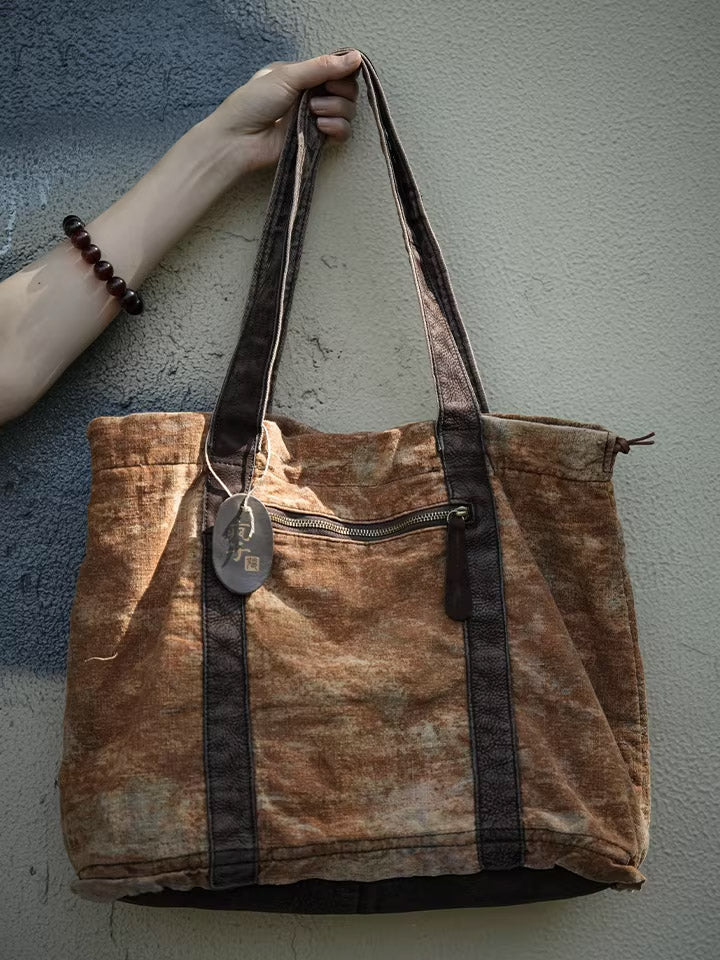 030411 תיק כתף וינטג' צבוע בעבודת יד בצבעי צמחים