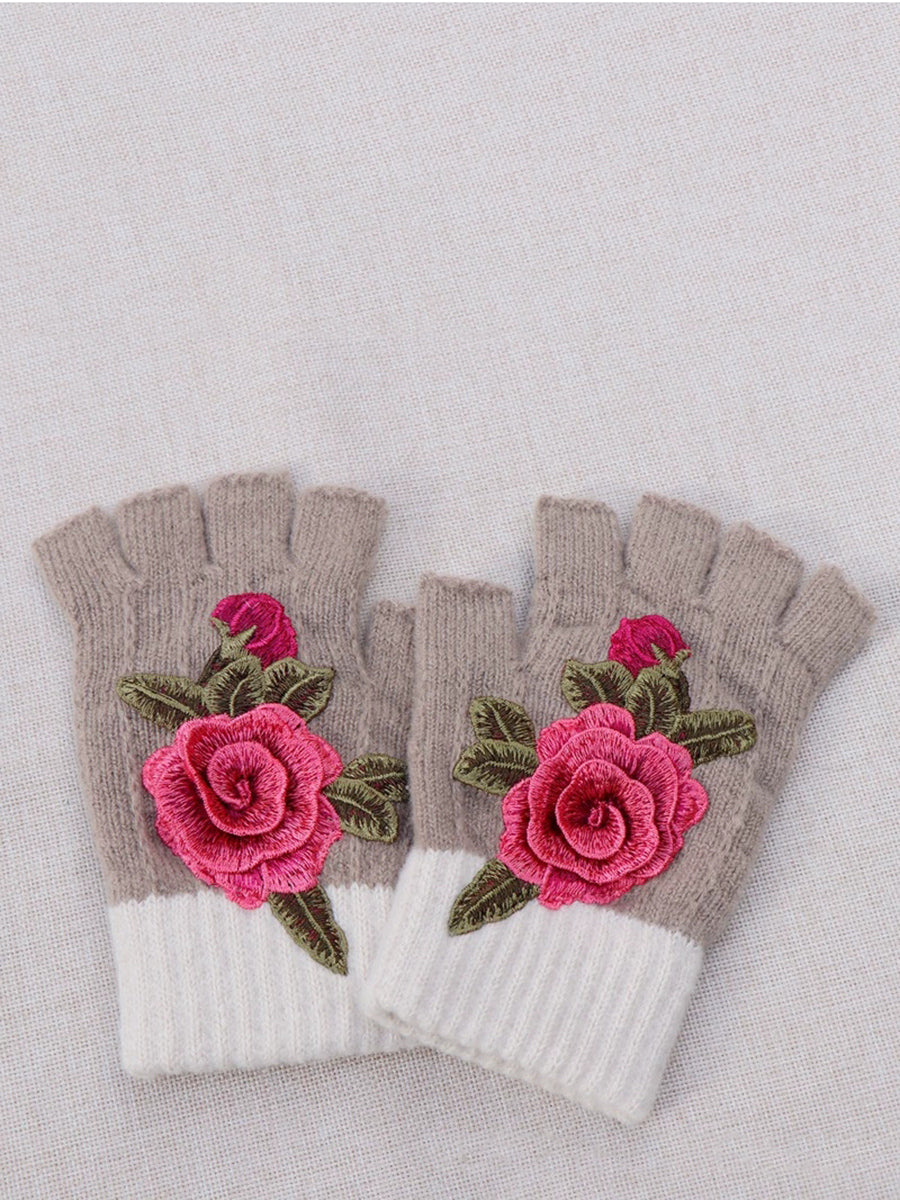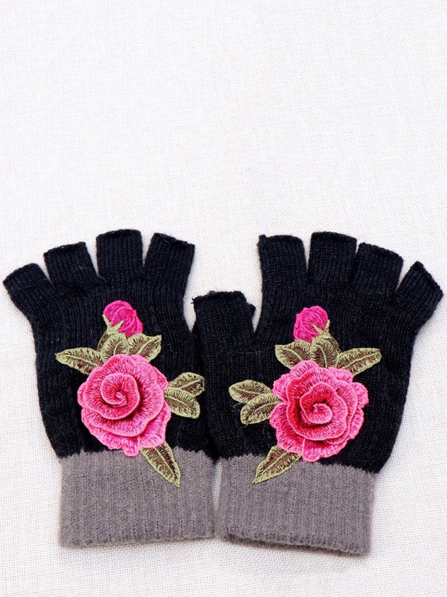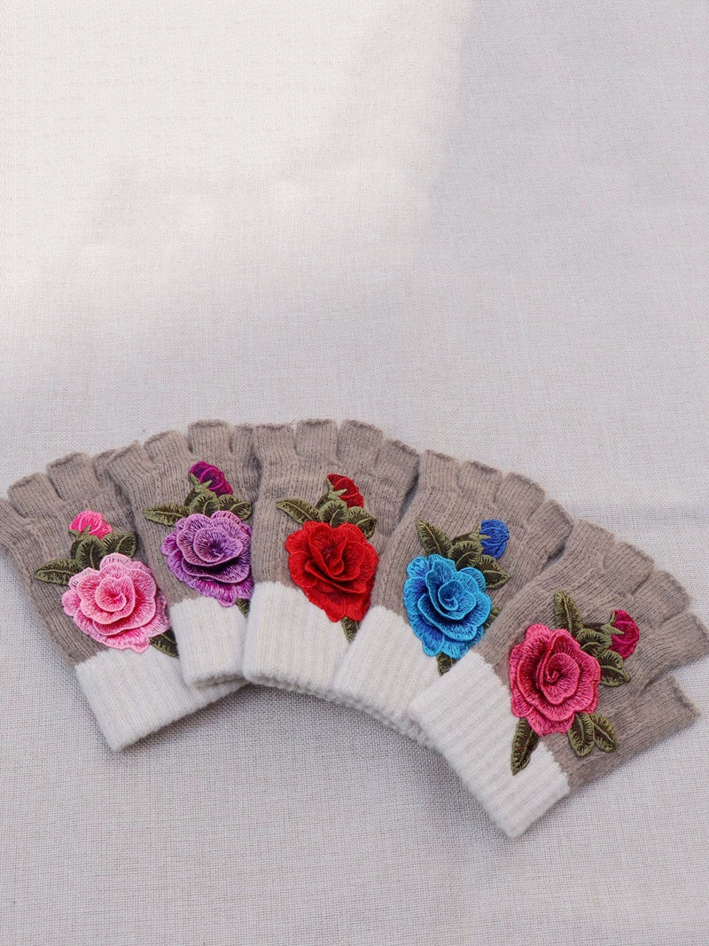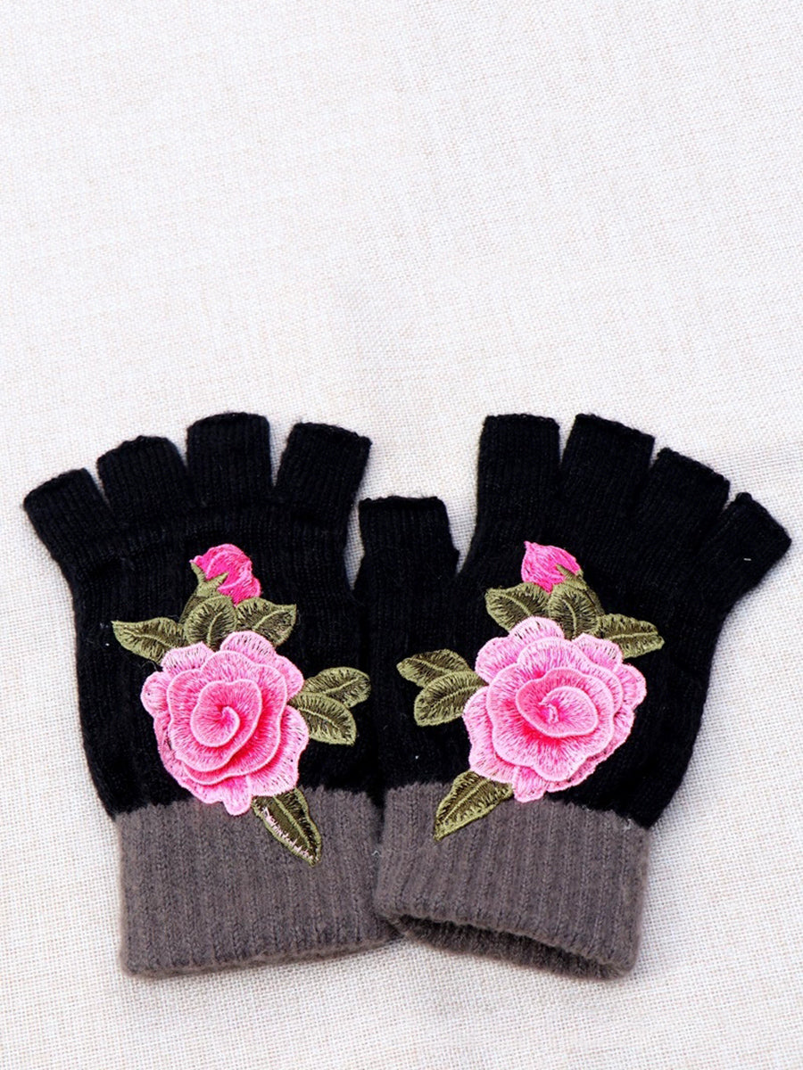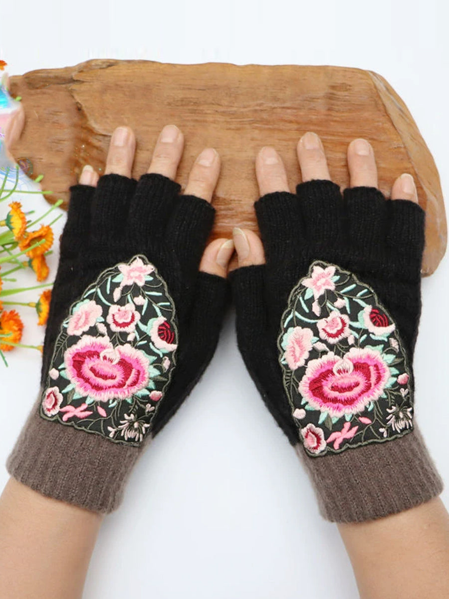 כפפות רקמה פרחונית חורפיות עם שזירה