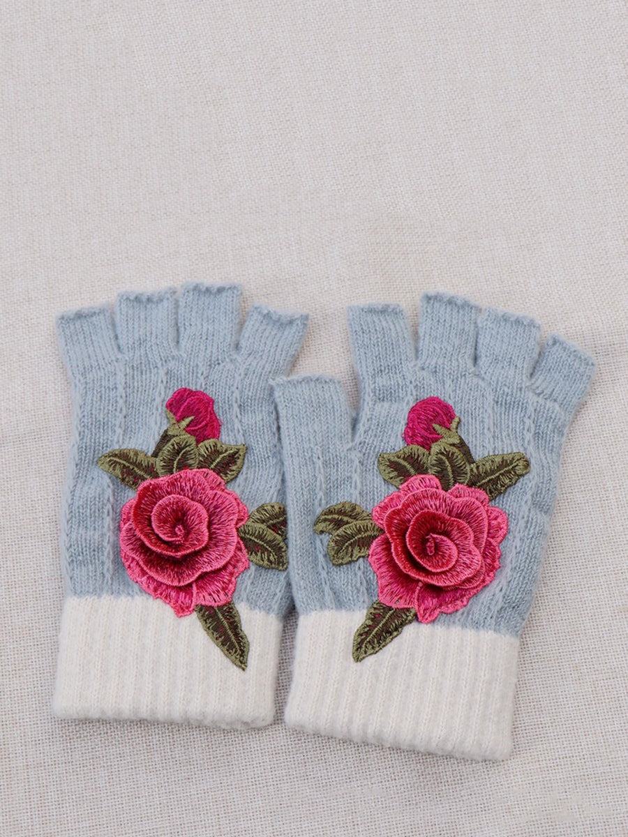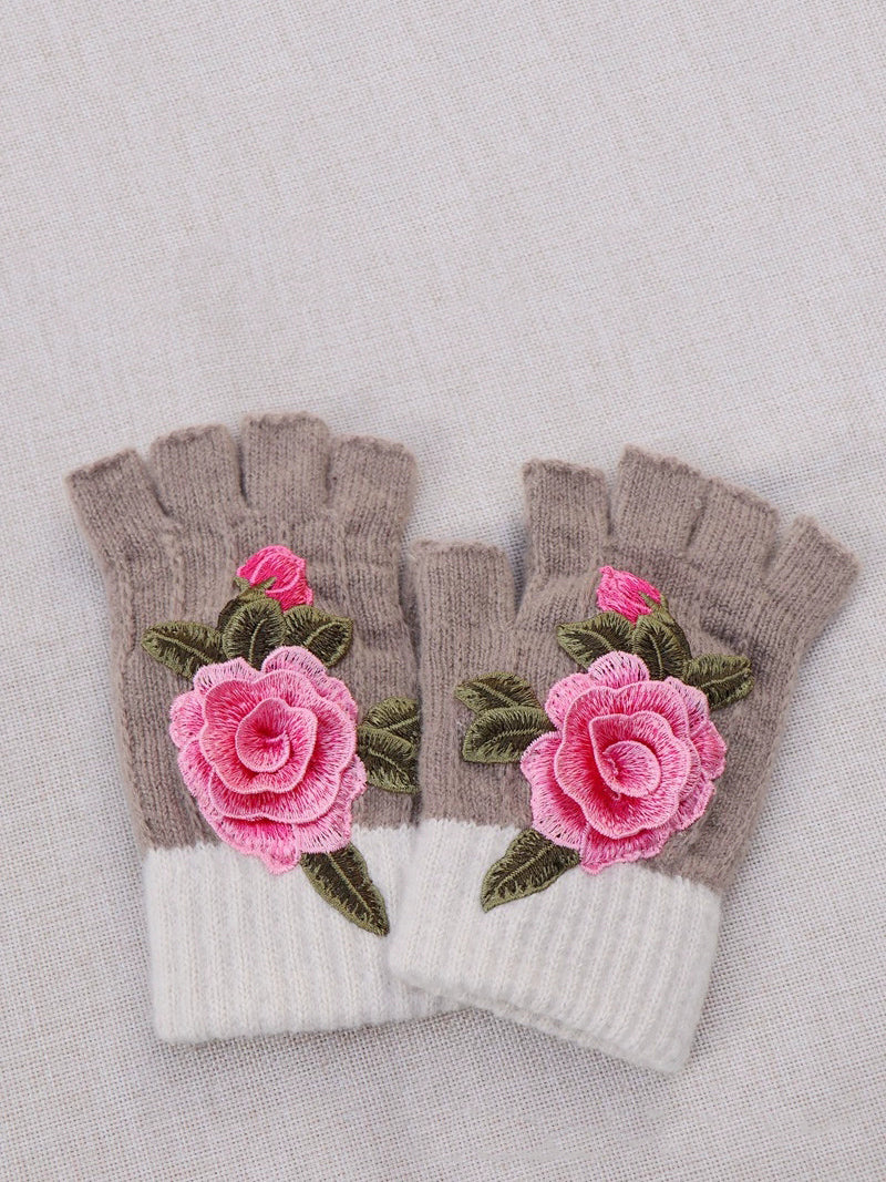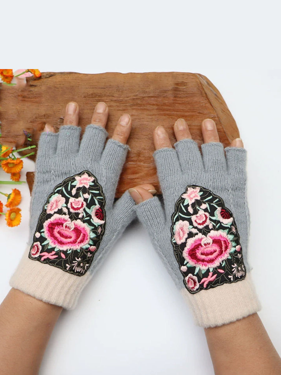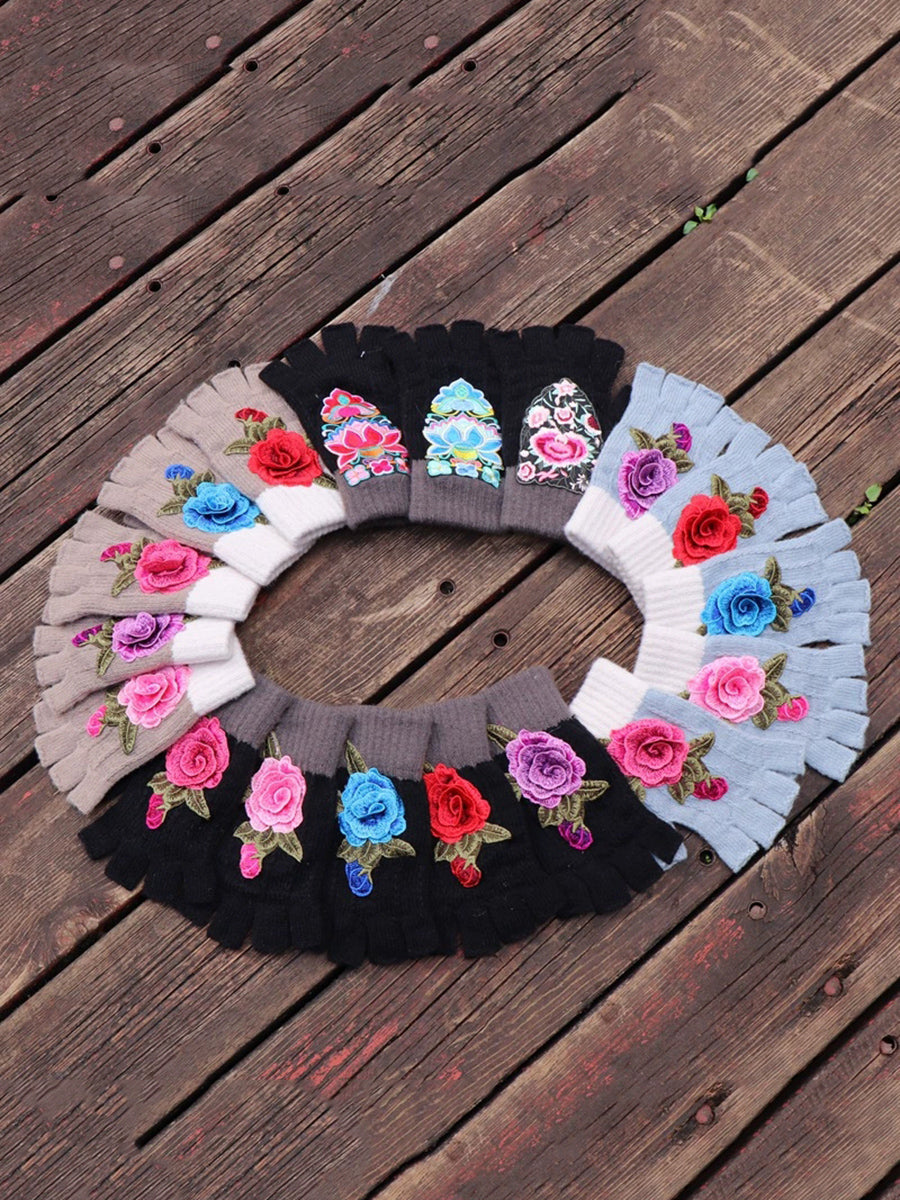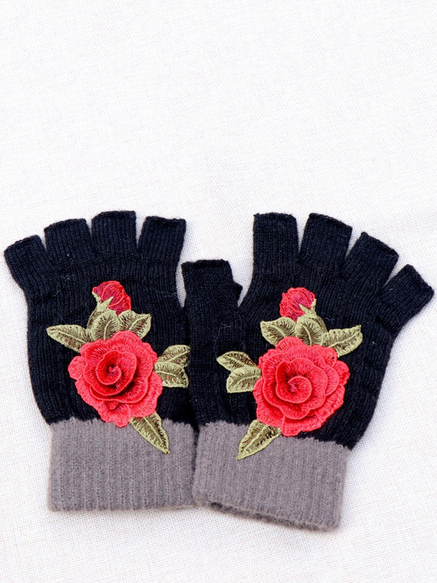 כפפות רקמה פרחונית חורפיות עם שזירה