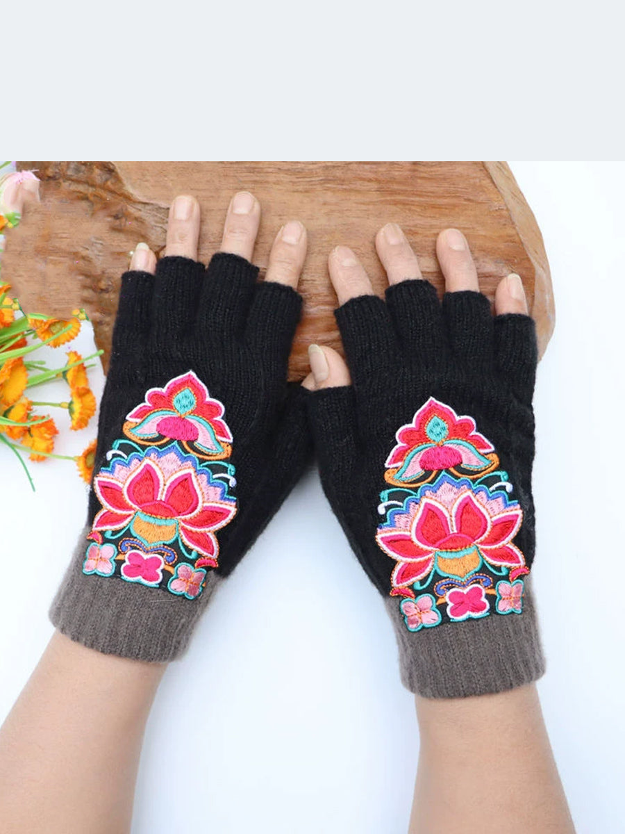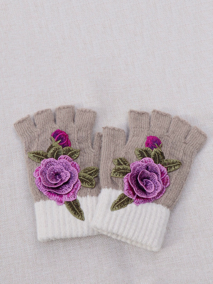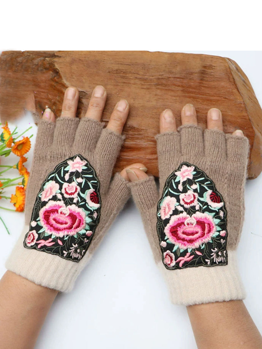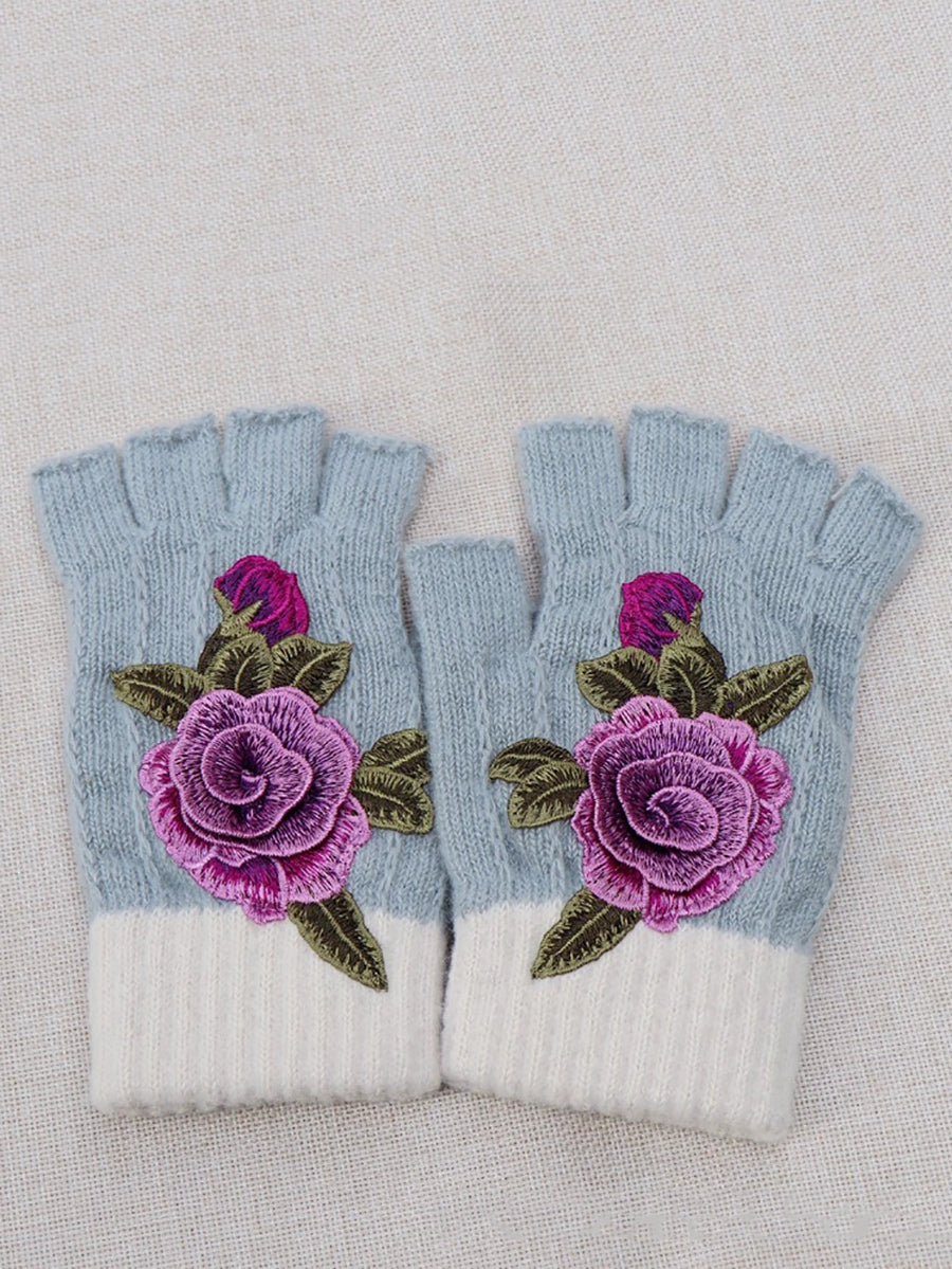 כפפות רקמה פרחונית חורפיות עם שזירה
