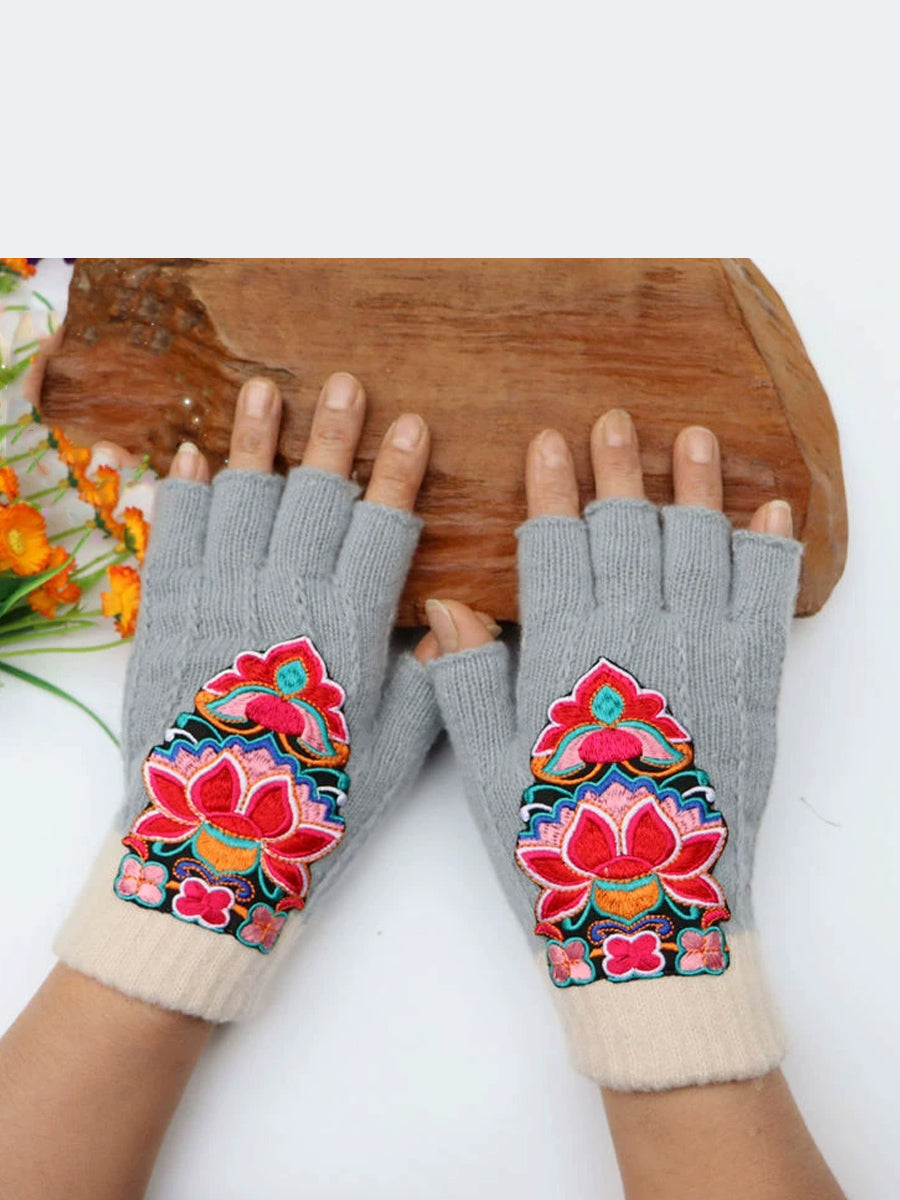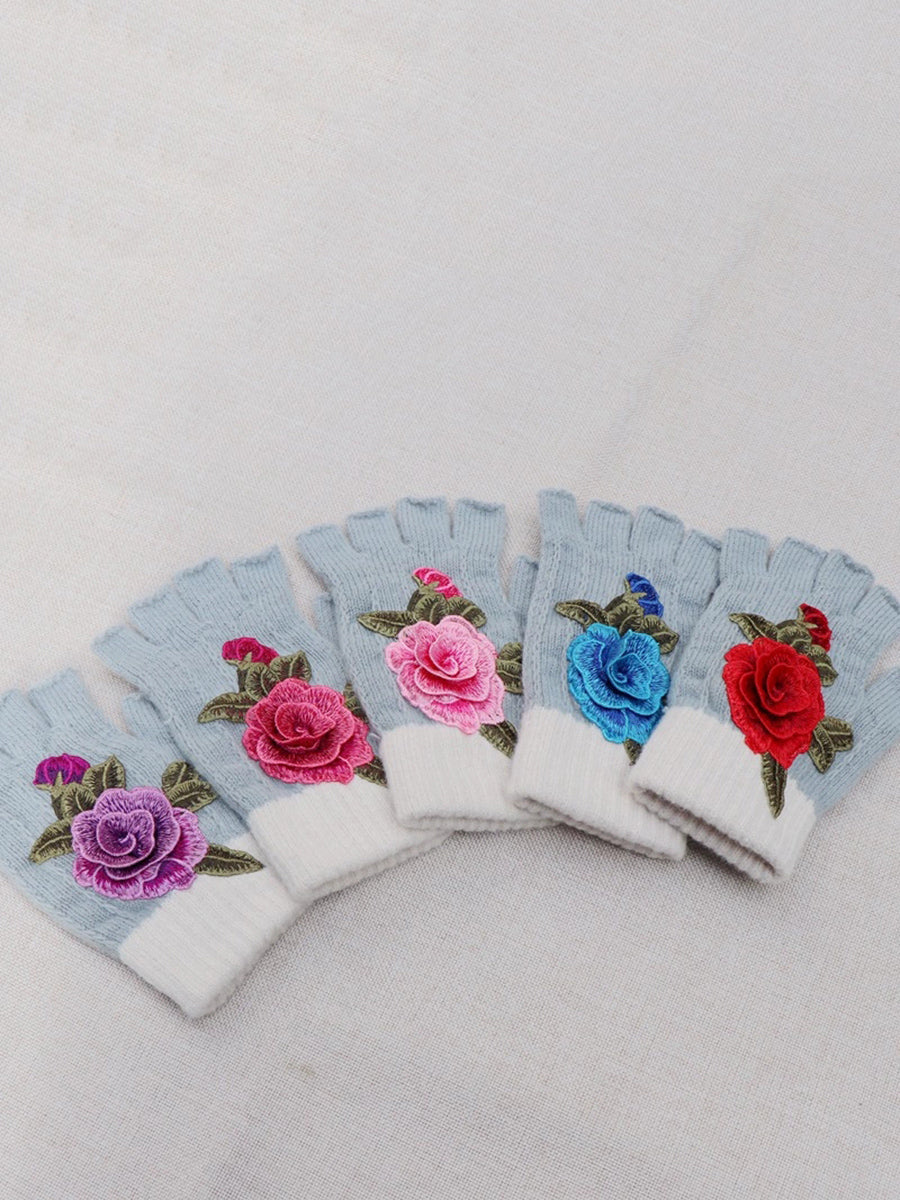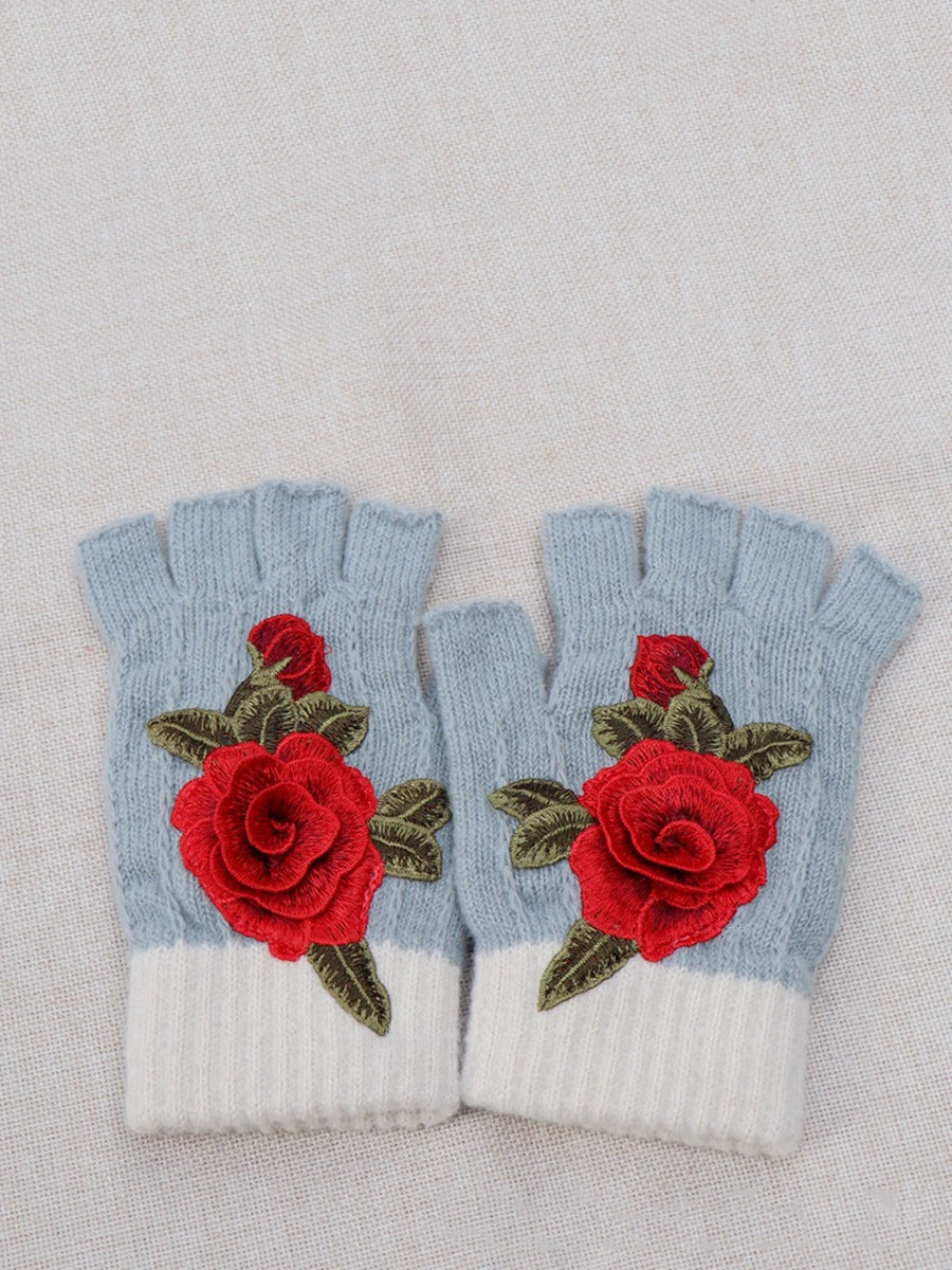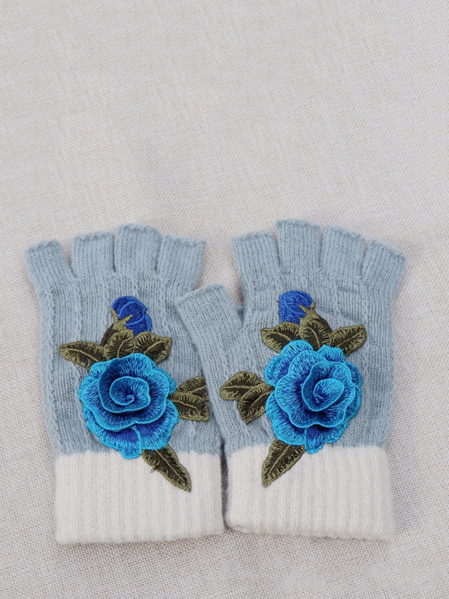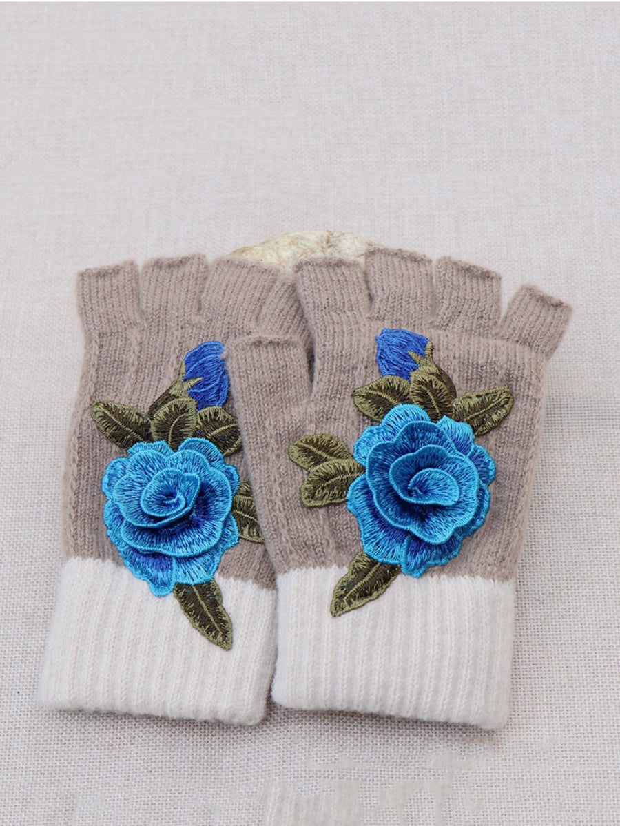 כפפות רקמה פרחונית חורפיות עם שזירה
