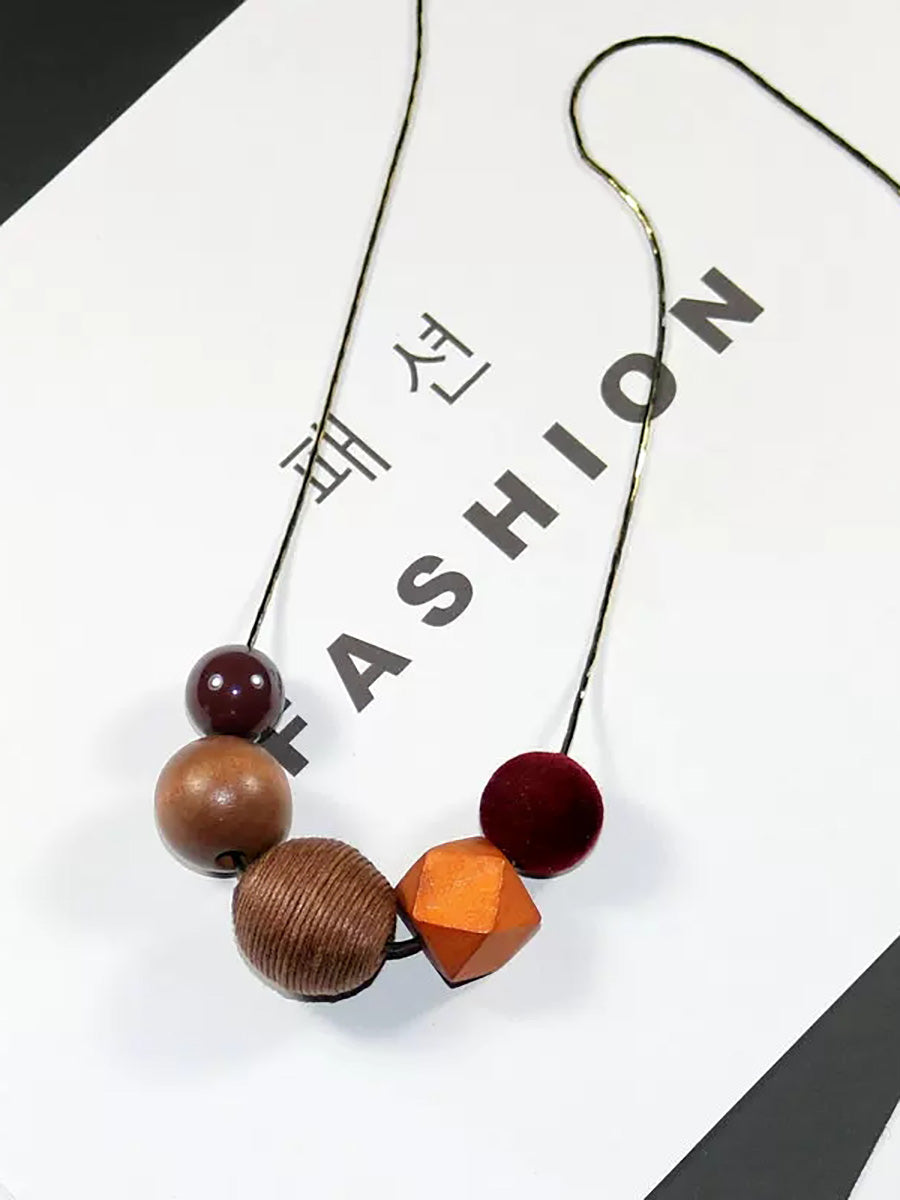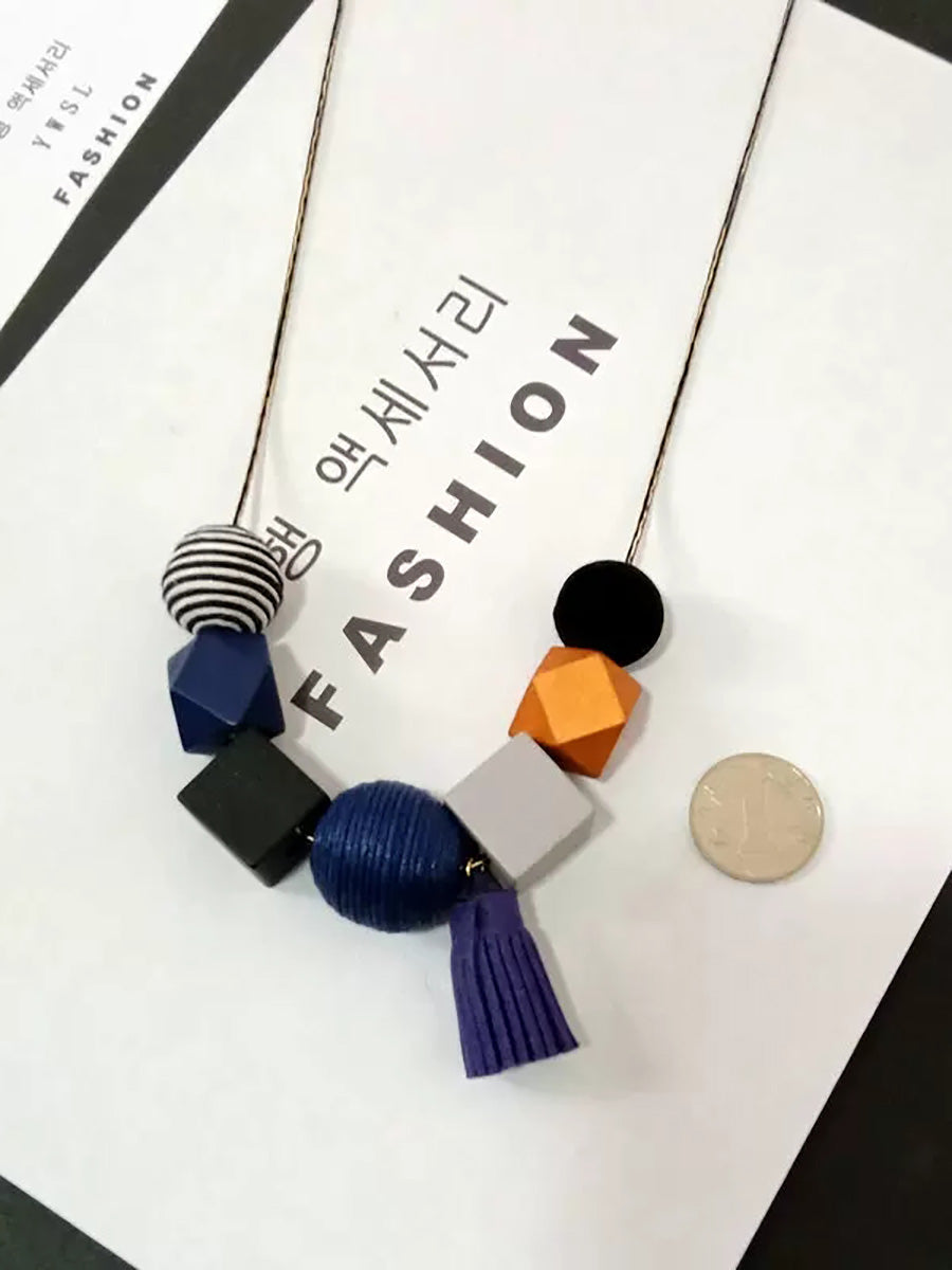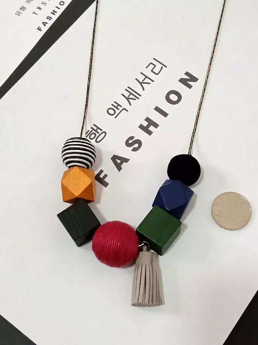 שרשרת עץ גיאומטרית צבעונית ואמנותית לנשים